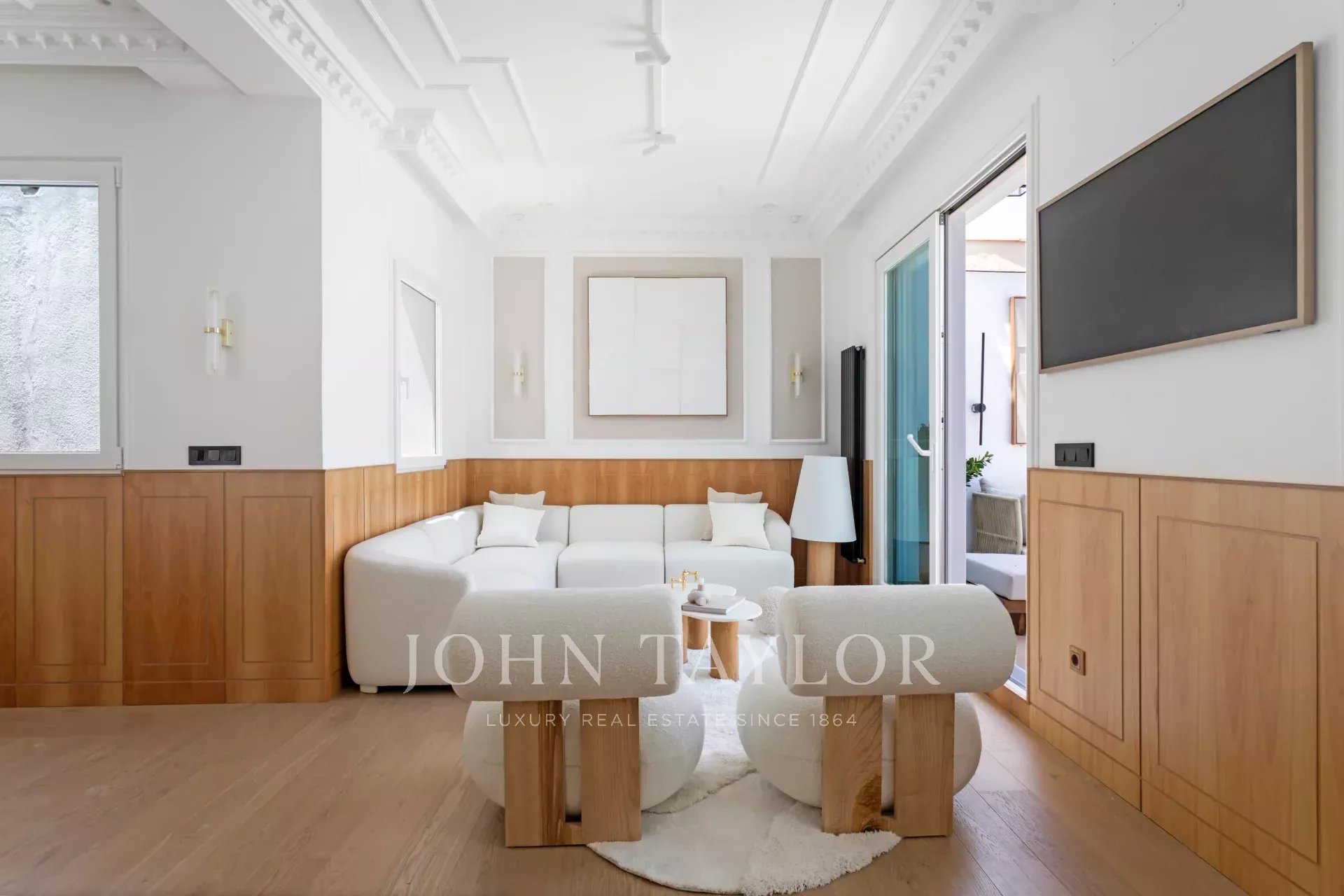 The outdoor area consists of the living room with access to the terrace, the dining room and the beautiful and luminous kitchen which also has direct access to the terrace.