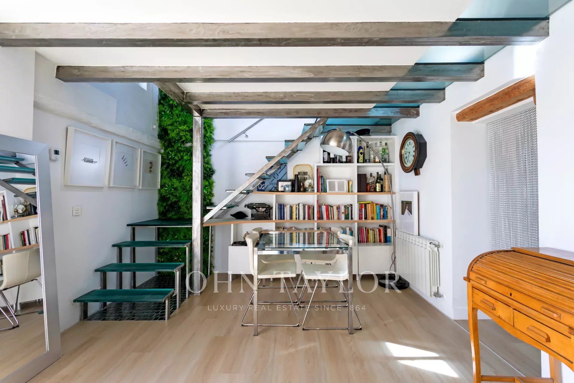 The interior features an open and functional concept with lots of character.