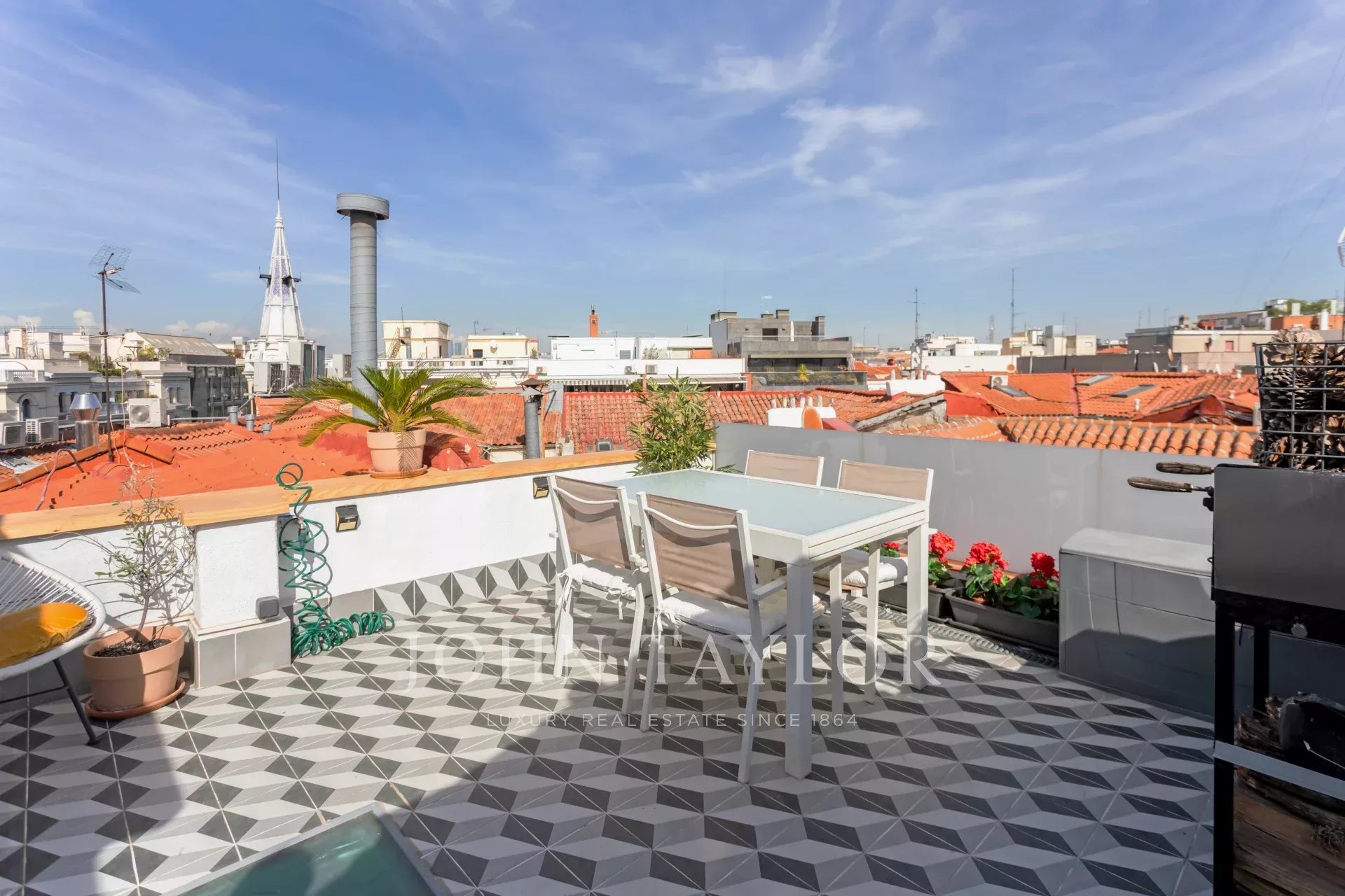This duplex stands out for its spectacular terrace, which rises imposingly over the neighboring buildings, offering views of the Madrid sky with total privacy and no noise, thanks to its strategic location.