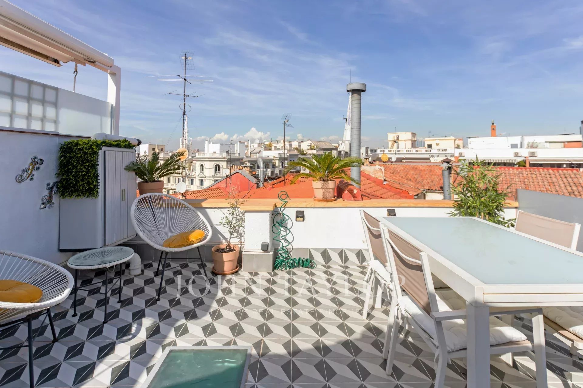 This duplex stands out for its spectacular terrace, which rises imposingly over the neighboring buildings, offering views of the Madrid sky with total privacy and no noise, thanks to its strategic location.