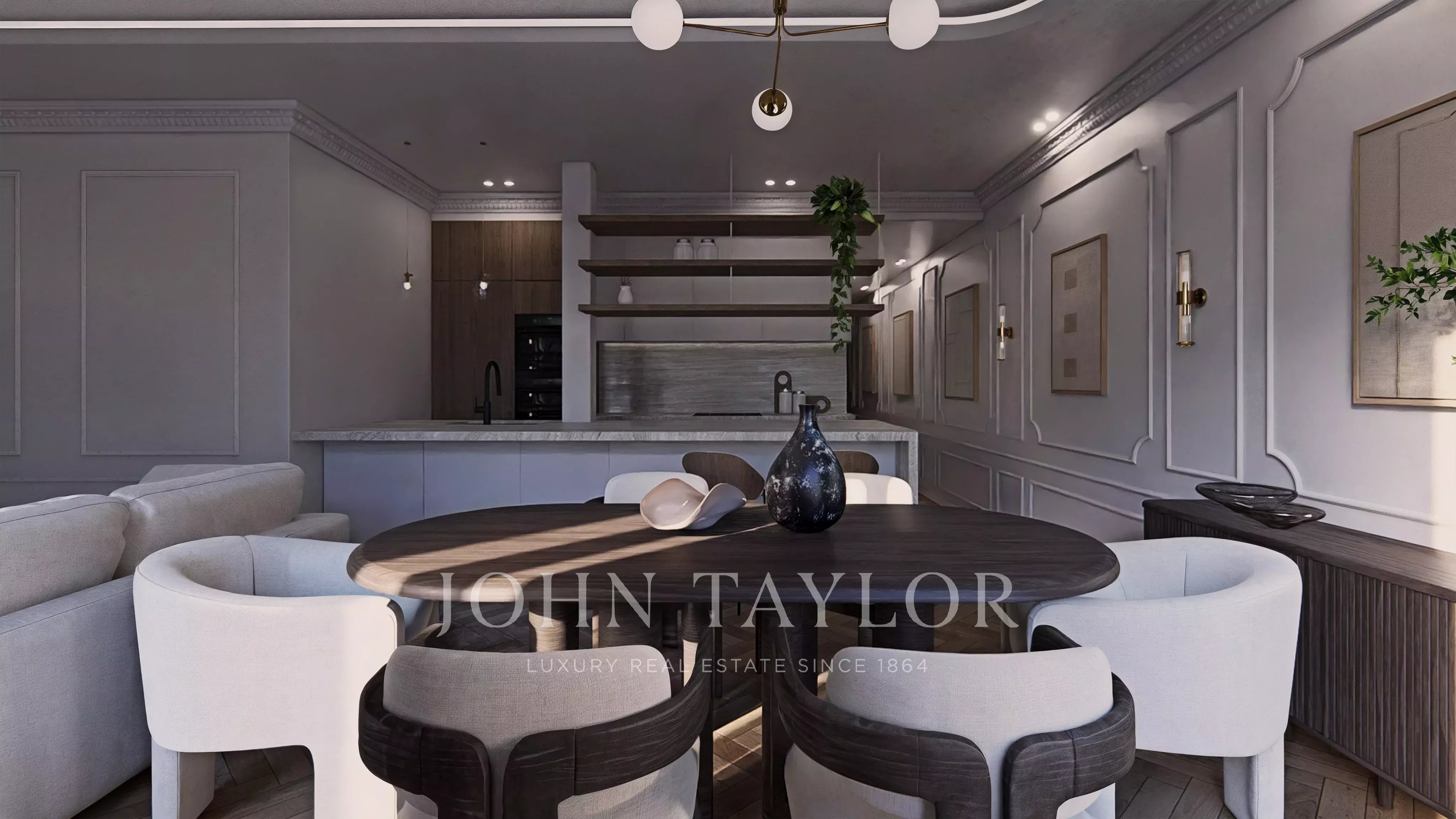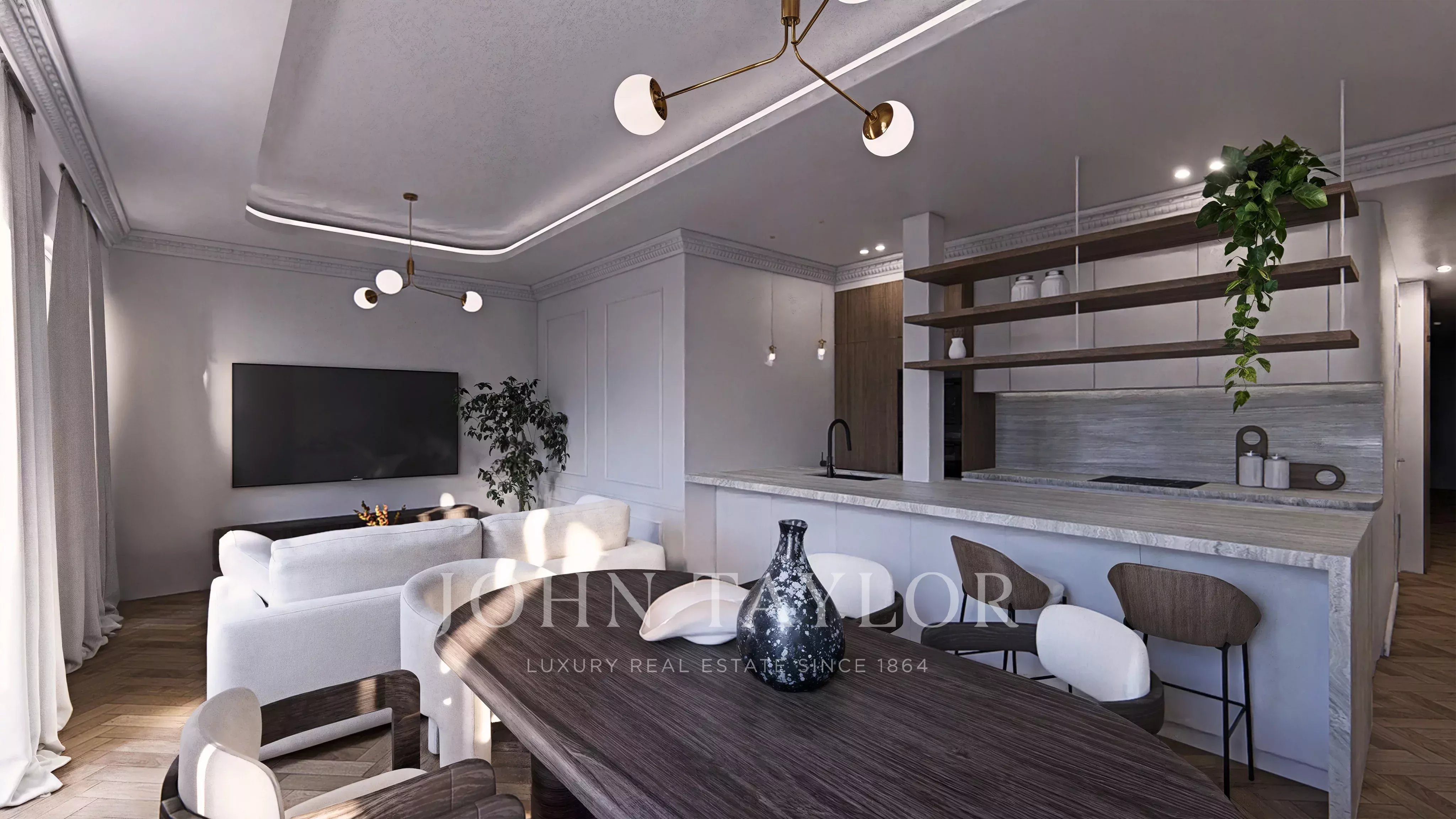 The day areas are articulated in a generous living-dining room with integrated semi-open kitchen, a space designed to maximize the entry of natural light and the feeling of spaciousness, ideal for both everyday life and for receiving guests.