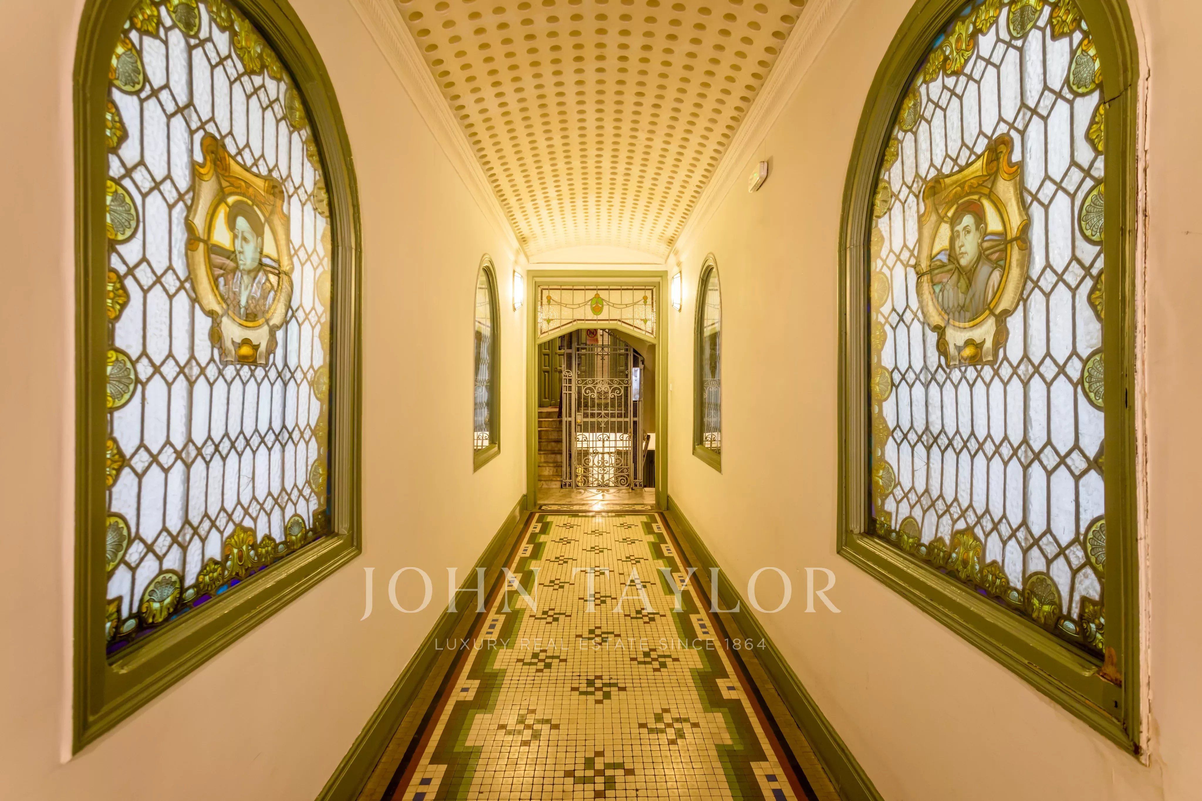 The building, with its classical architecture, is a real jewel of heritage. Its original elements have been carefully preserved, highlighting its impressive stained glass windows and the emblematic cage elevator, characteristic of the most representative estates in the area.