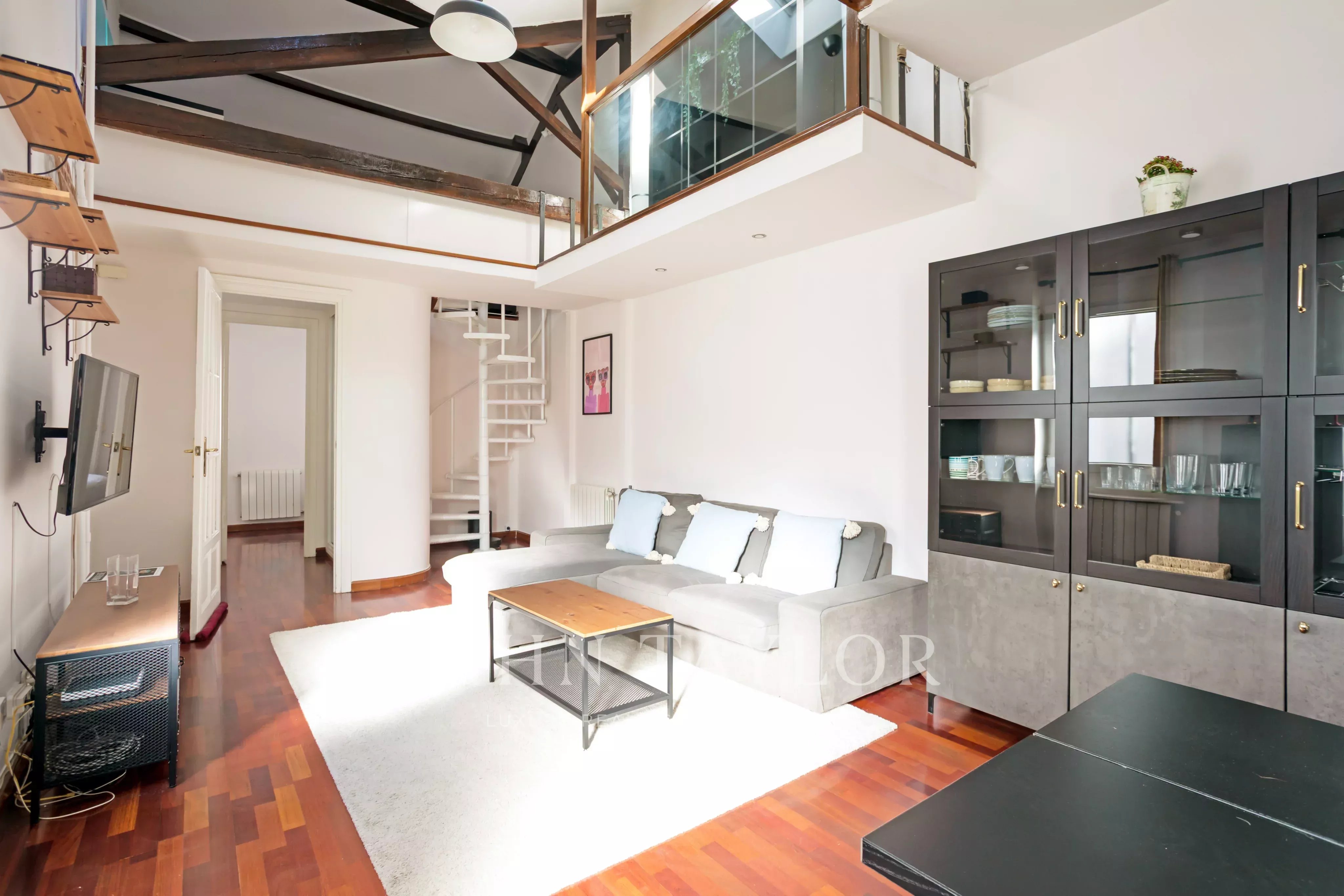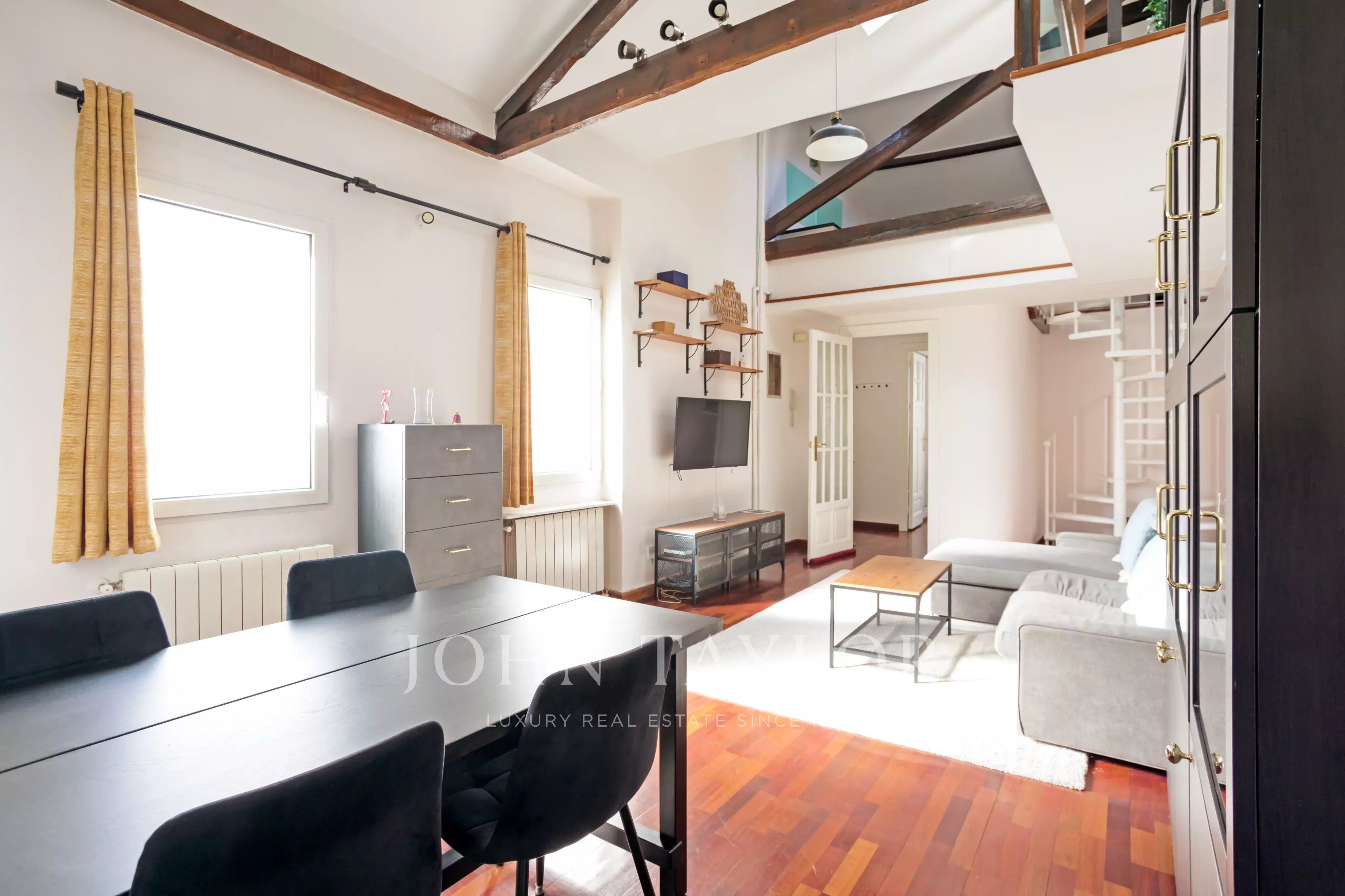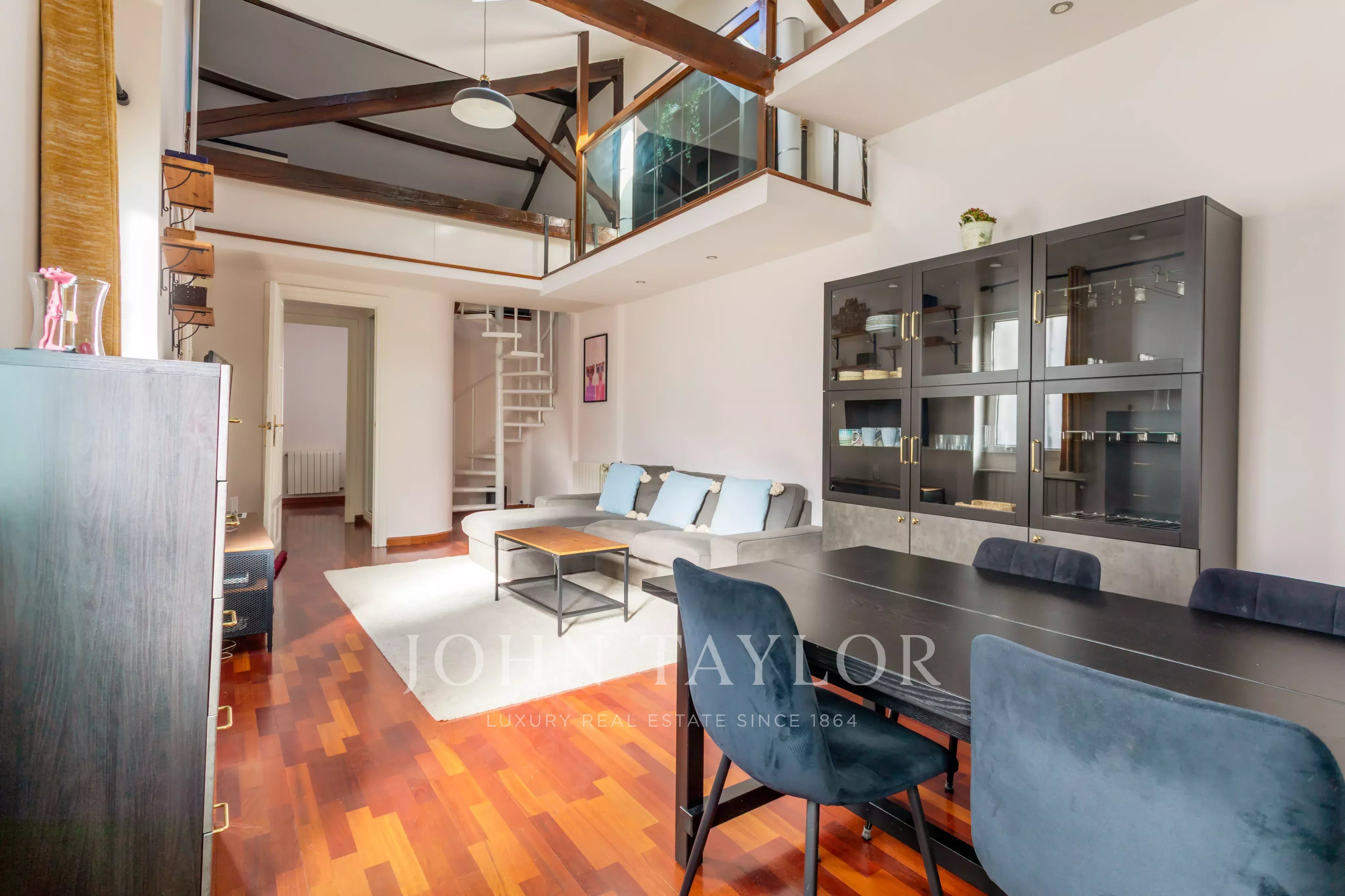 This unique property stands out for its double height, brightness and careful architectural design details that give it a unique personality. It is located in an elegant classic building, with an imposing stately entrance.