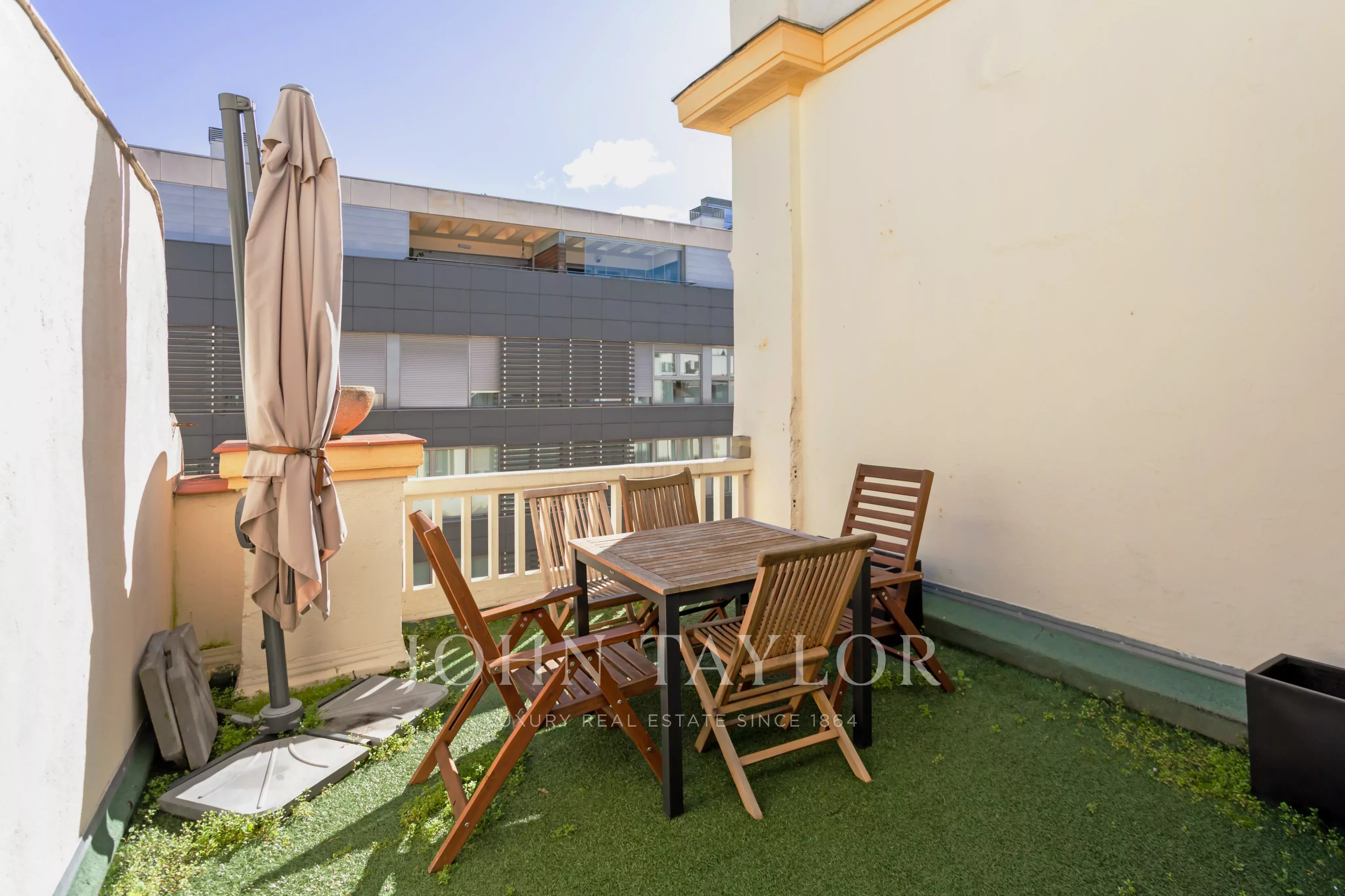 The duplex penthouse has Velux windows integrated into the roof, which flood the rooms with natural light. It has three bedrooms, the master bedroom with en suite bathroom and dressing room. The property is completed with an additional second bathroom and a pleasant east-facing terrace, perfect for enjoying the morning sun.