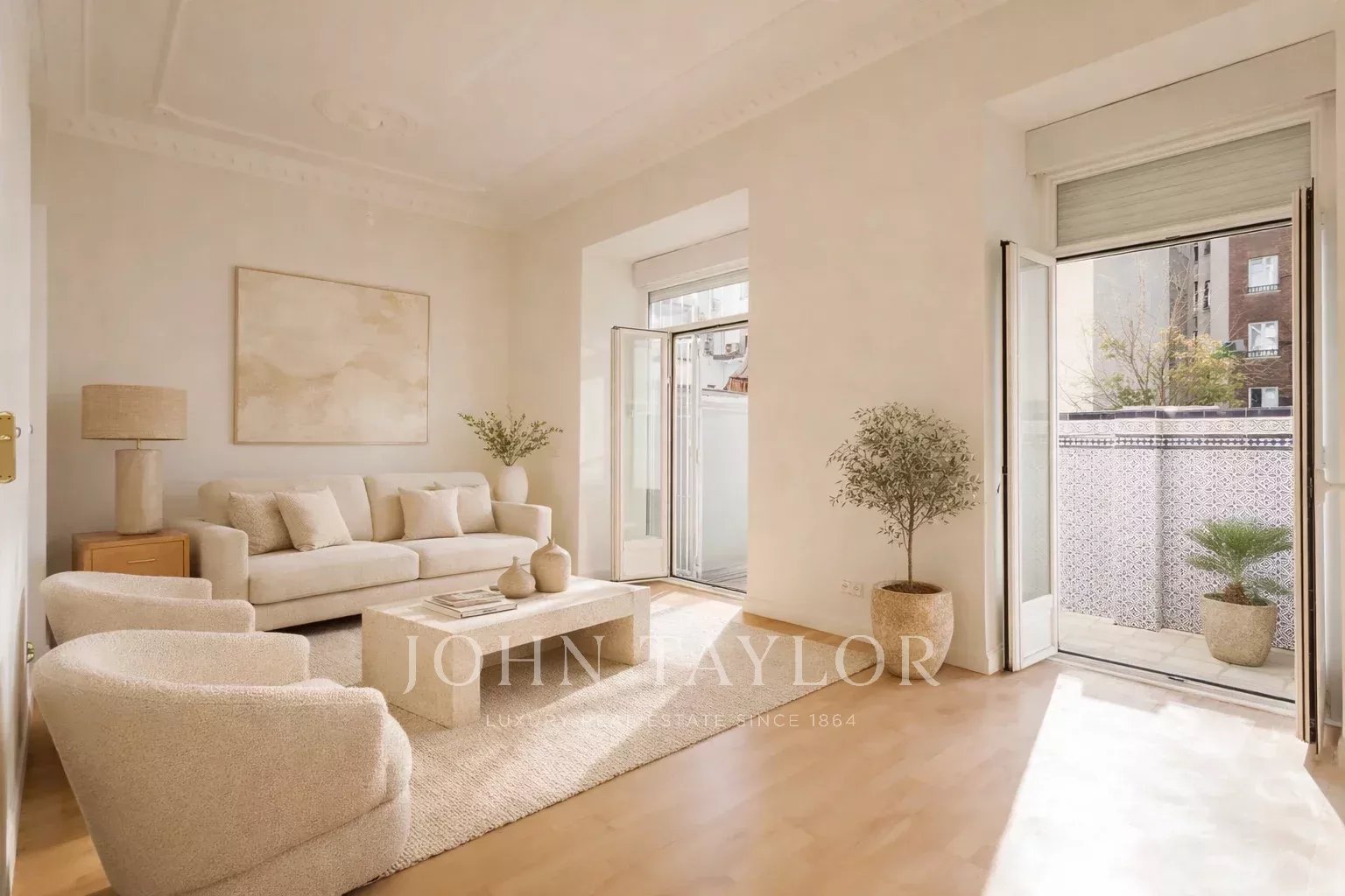 In an elegant building with a classic facade from the early twentieth century is located this exclusive home, which stands out for its bright south-facing patio-garden, a real added value that allows you to enjoy a private outdoor space in the heart of the Barrio de Salamanca. The property includes a storage room.