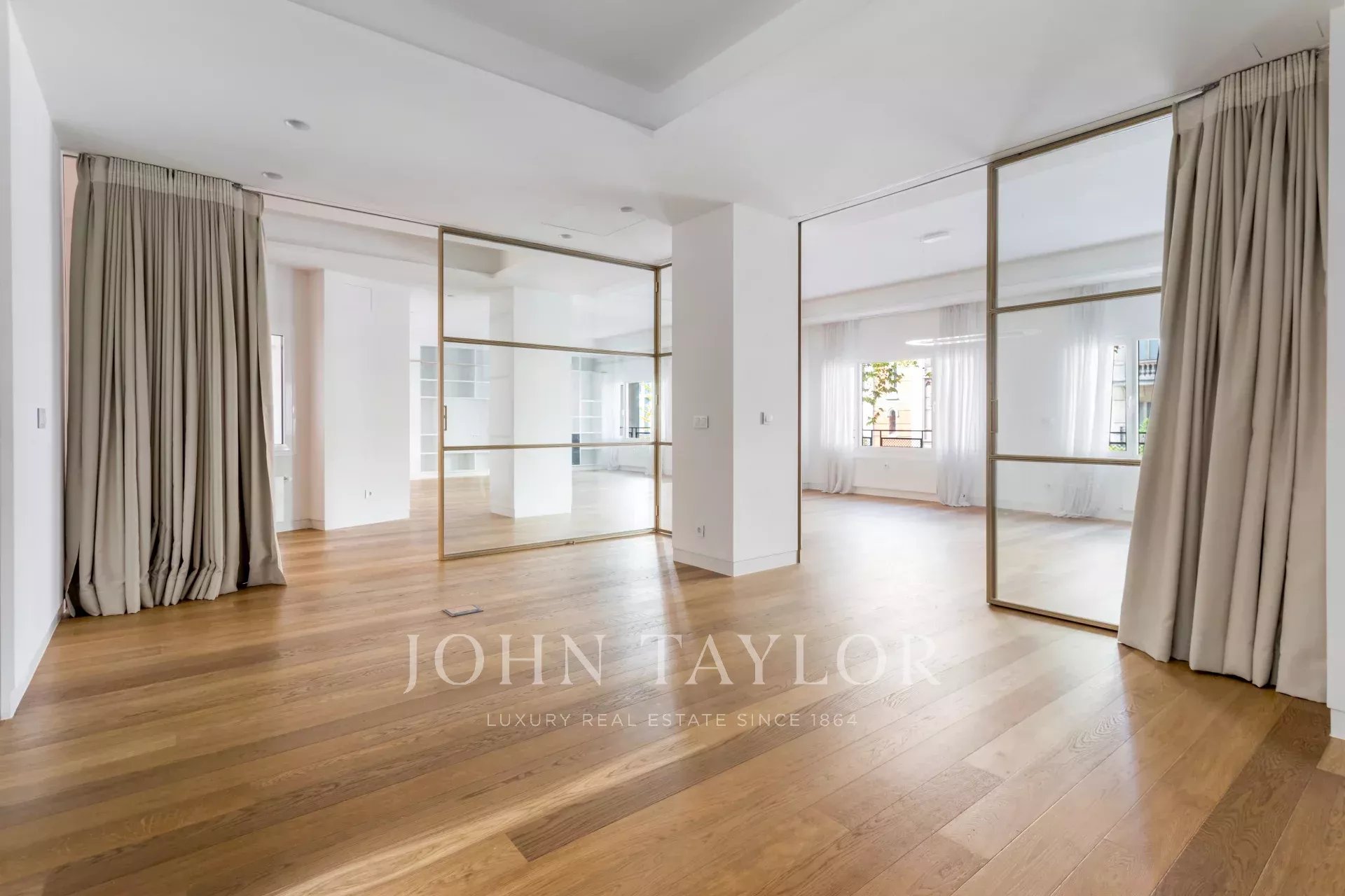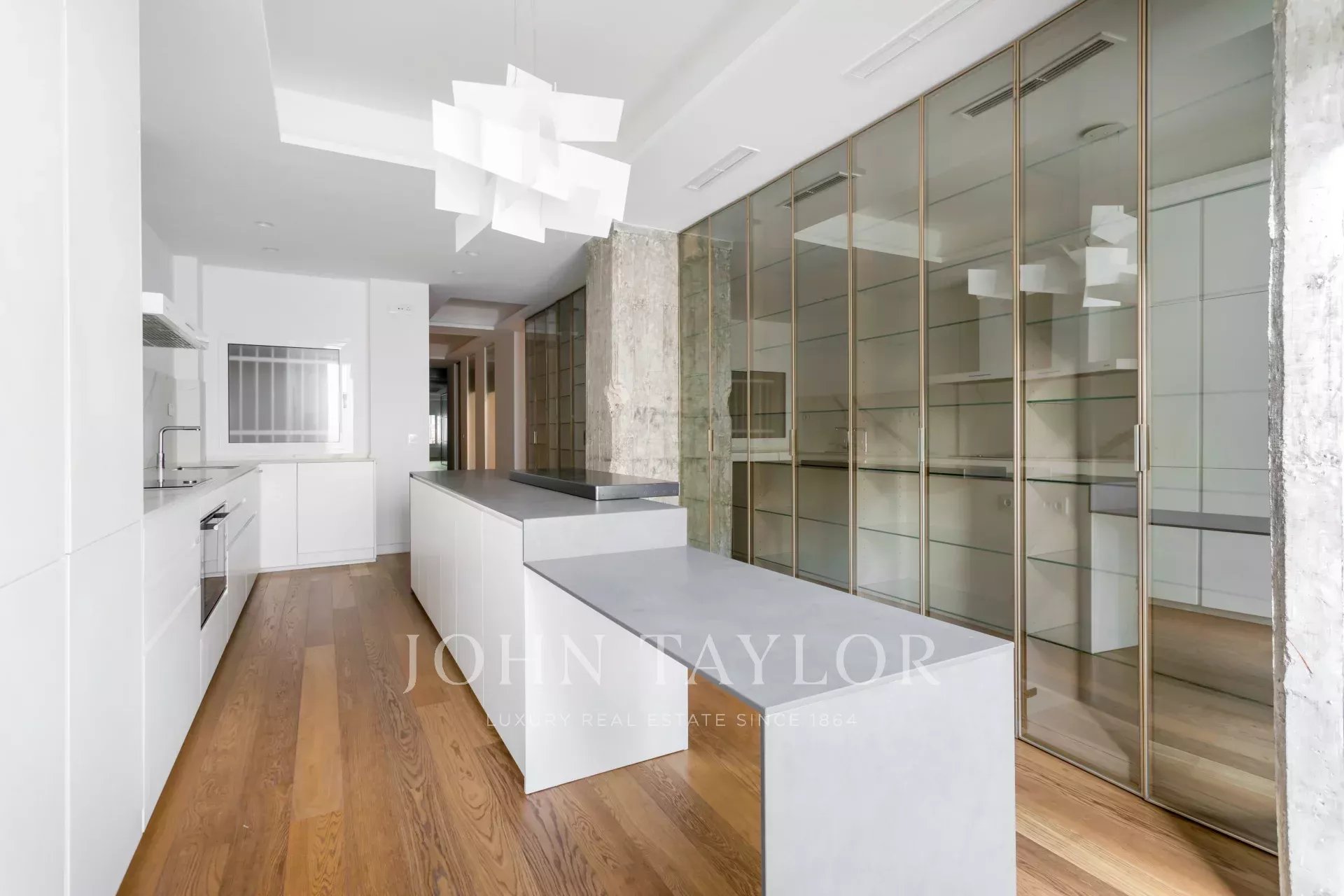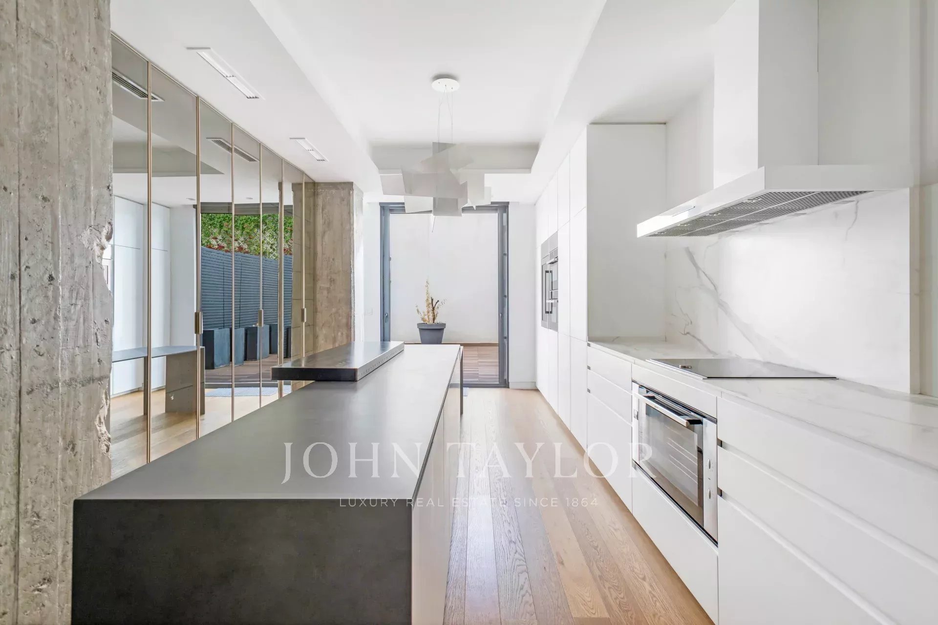 Distributed in a large living room overlooking the street, it has 4 bedrooms, all en-suite, and a guest bathroom. The kitchen is fully equipped with top brand appliances, a large island and a wine cellar.