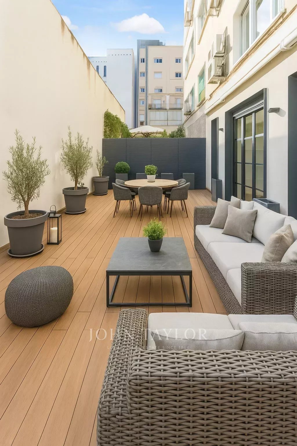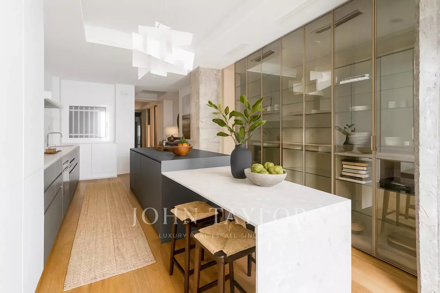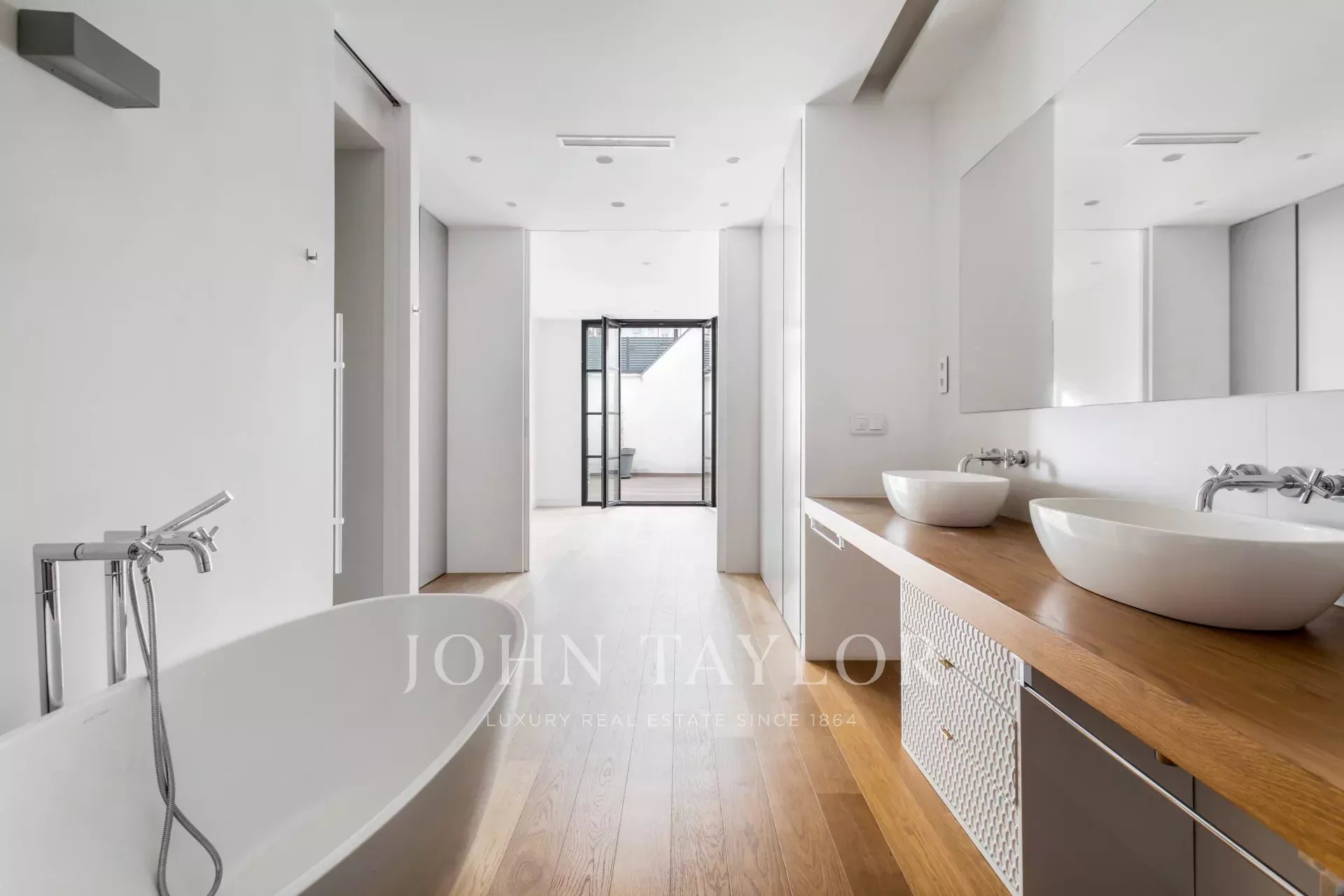 Distributed in a large living room overlooking the street, it has 4 bedrooms, all en-suite, and a guest bathroom. The kitchen is fully equipped with top brand appliances, a large island and a wine cellar.