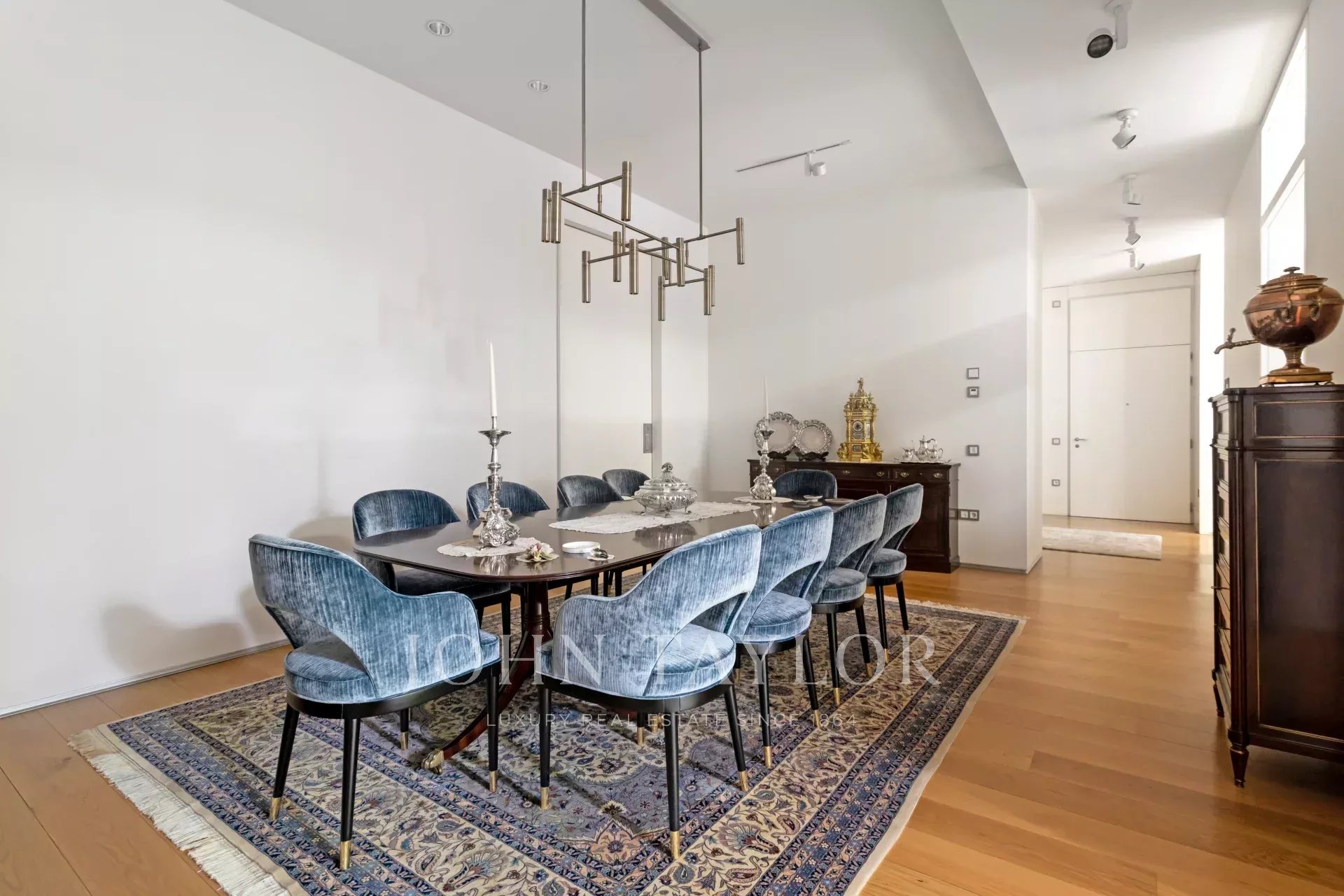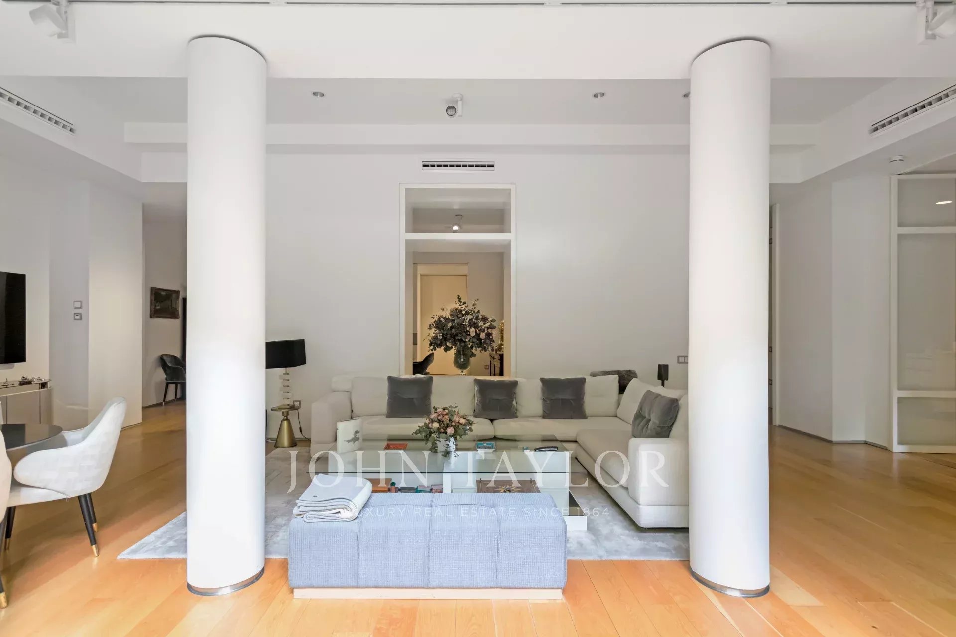 The flat is totally exterior with two facades, which allows all the rooms to have natural light. Thanks to its 8 balconies facing South and West, its large terrace and its ceilings over 3.5 metres high, this flat exudes elegance and exclusivity.