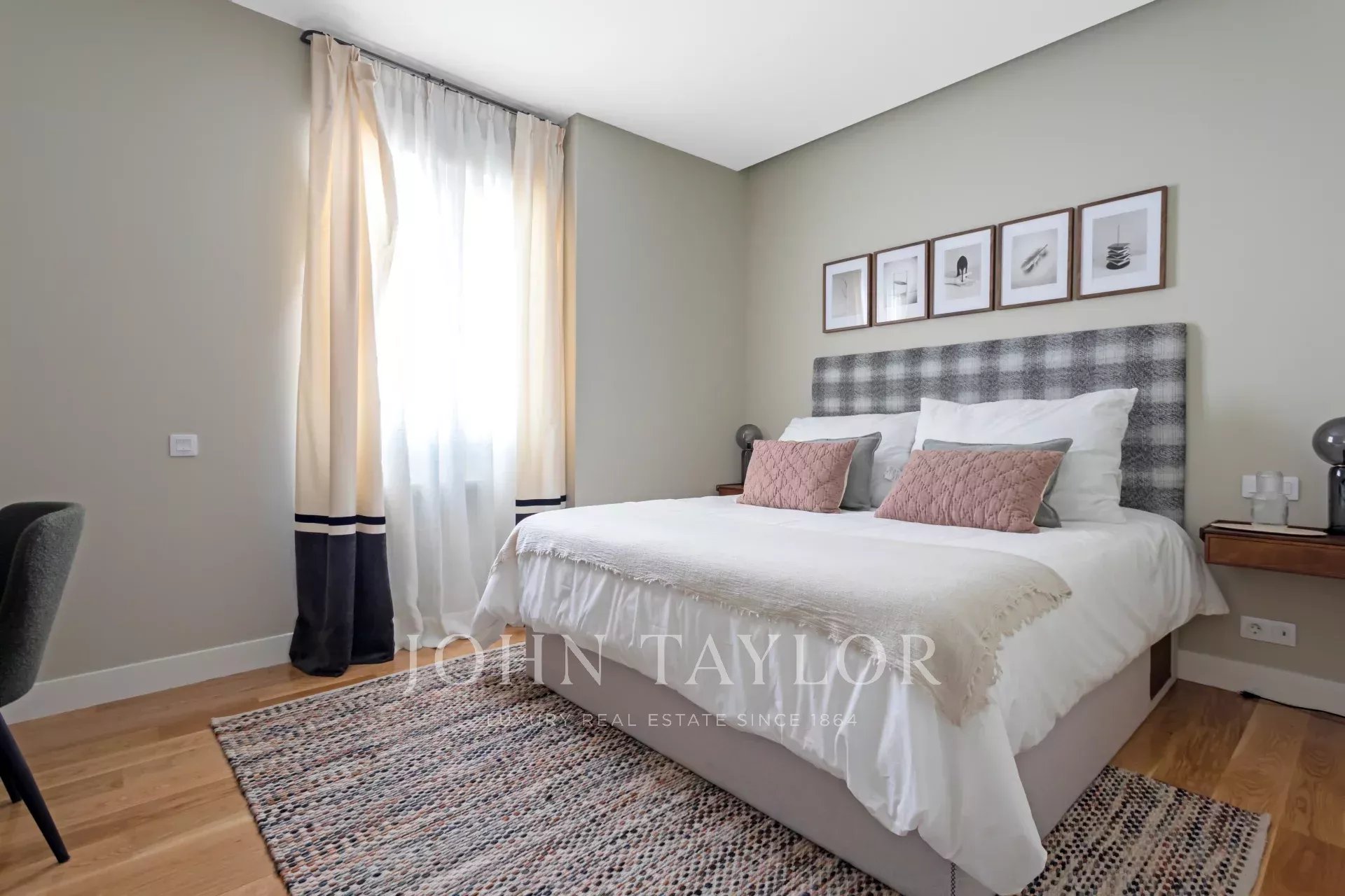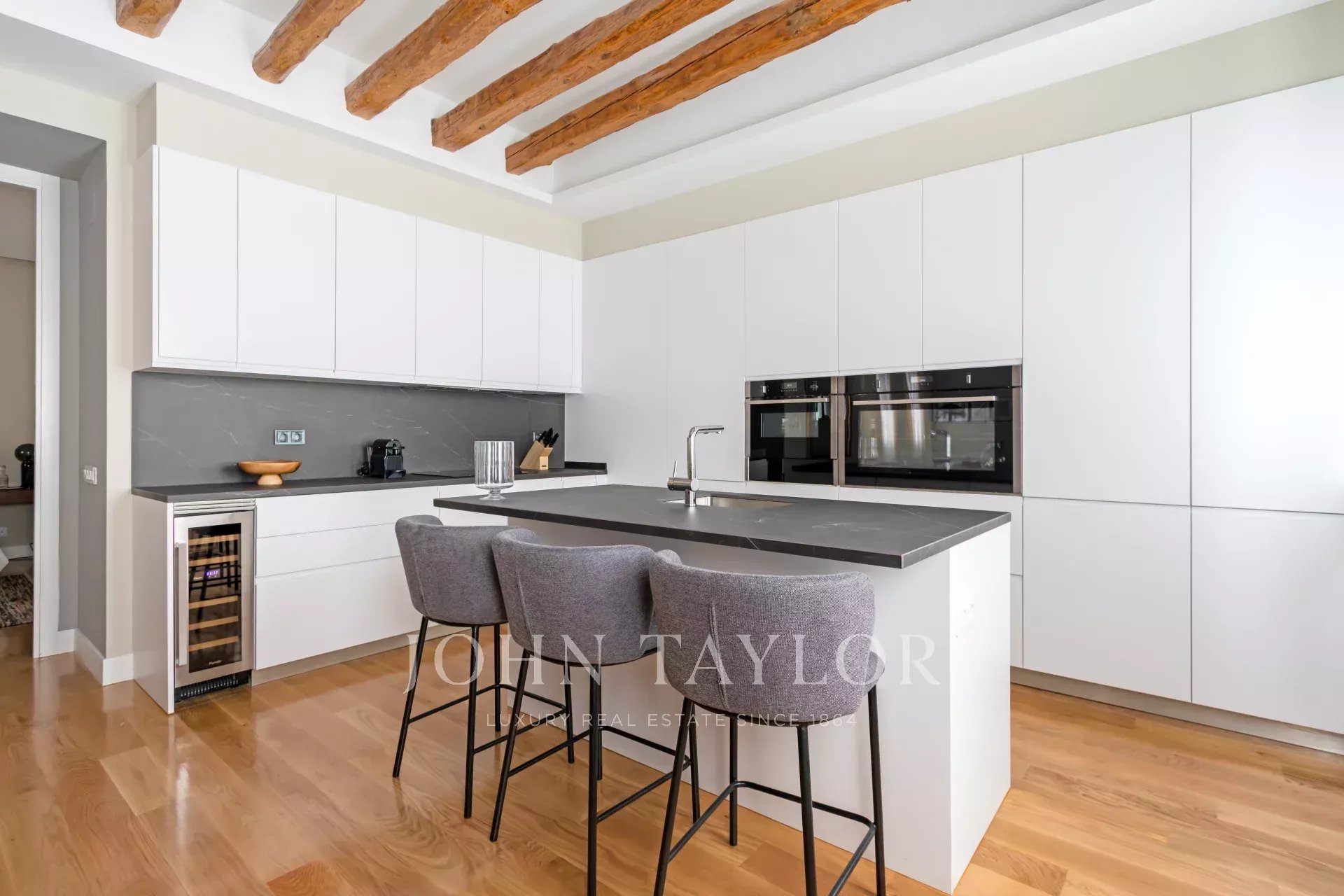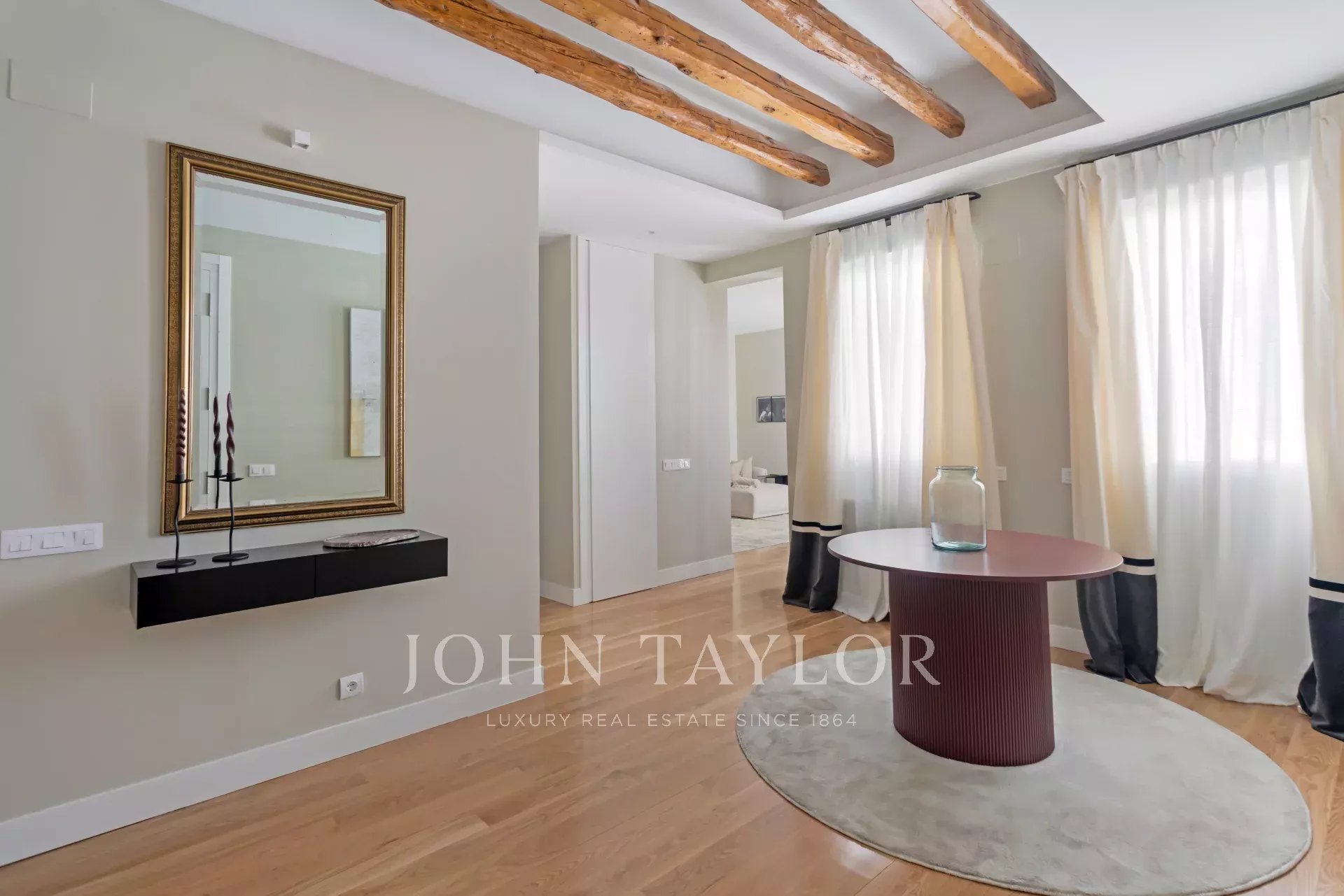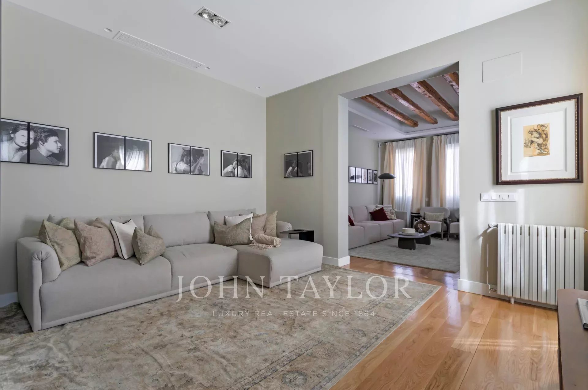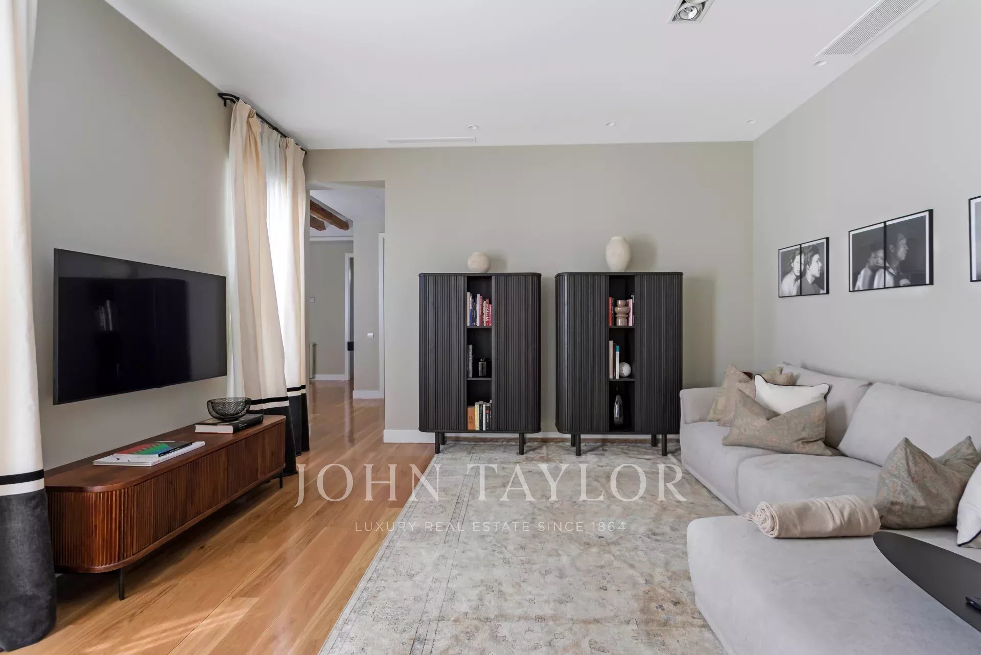 Spectacular designer apartment with a fantastic distribution completely renovated, three large bedrooms en suite, three bathrooms, guest toilet, laundry area and three separate living rooms, one of them with fully furnished kitchenette with high-end appliances. Centralized air conditioning hot and cold.