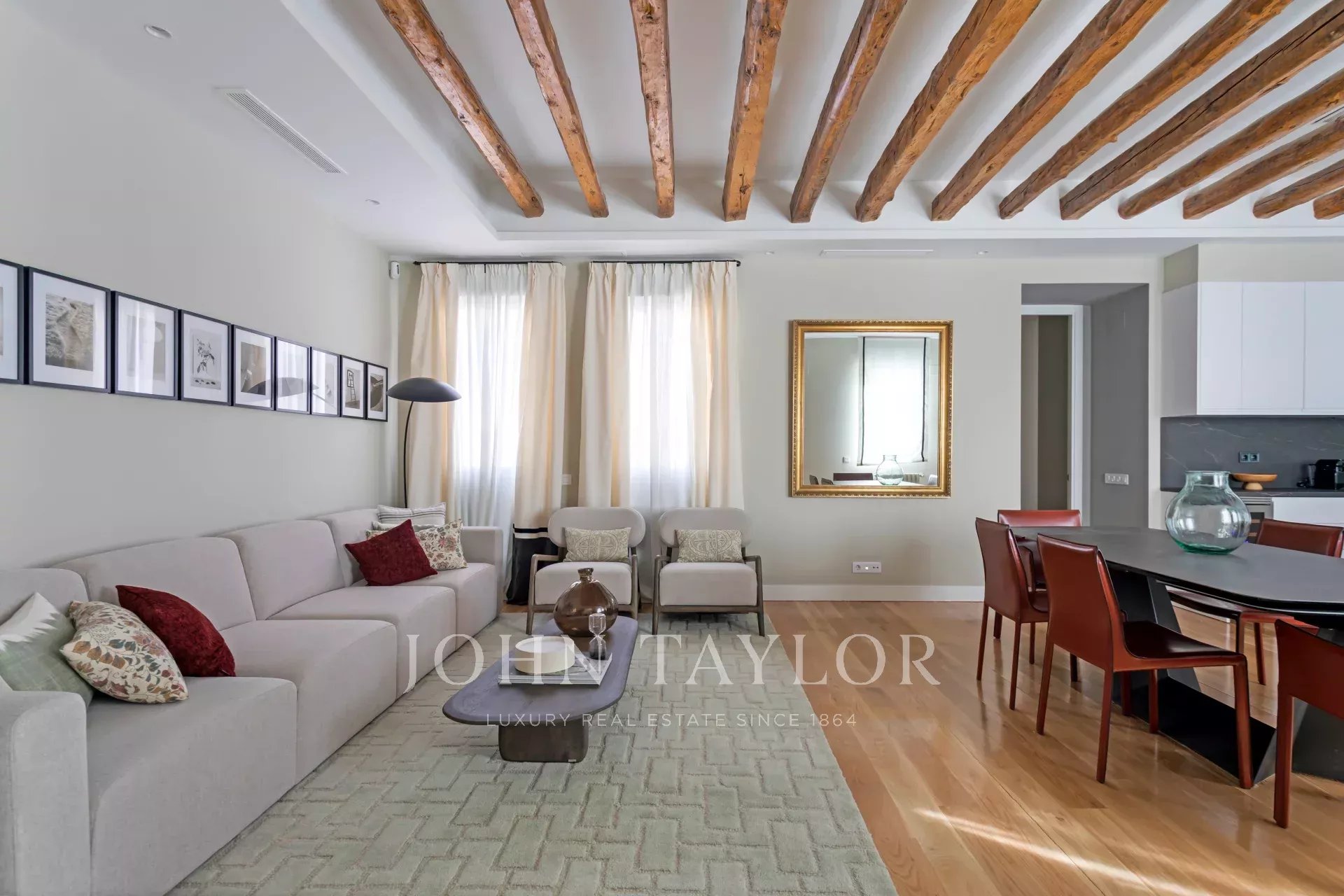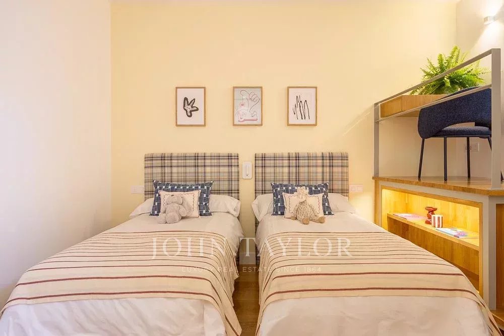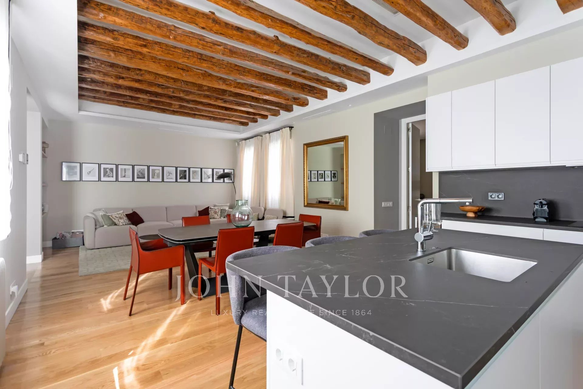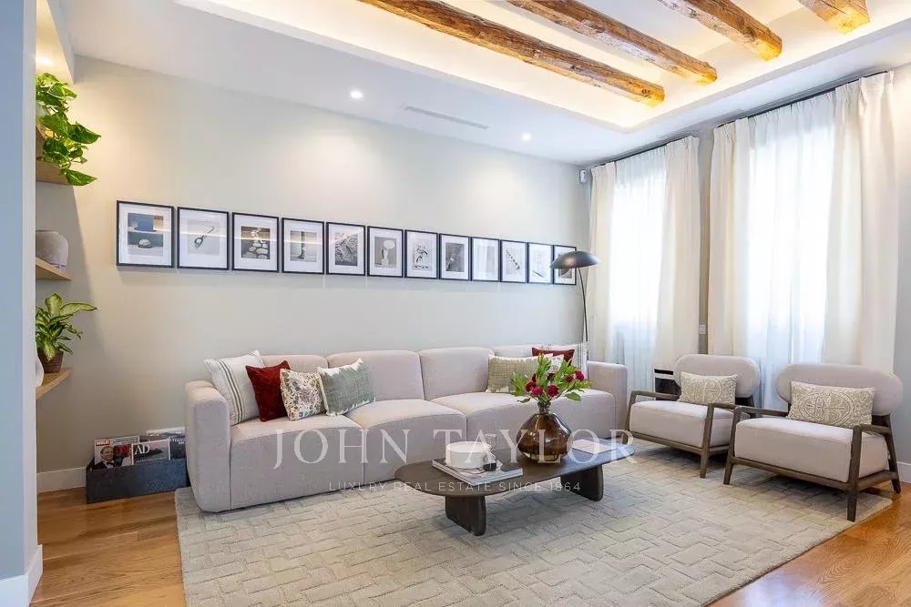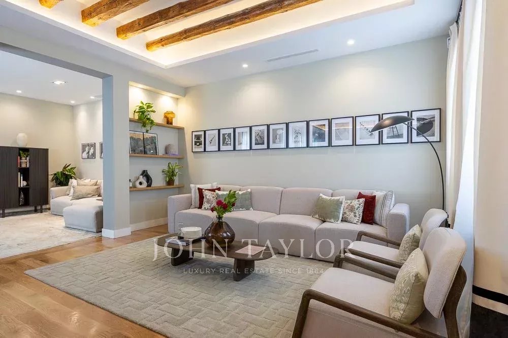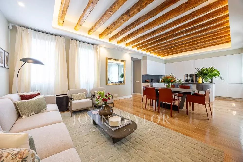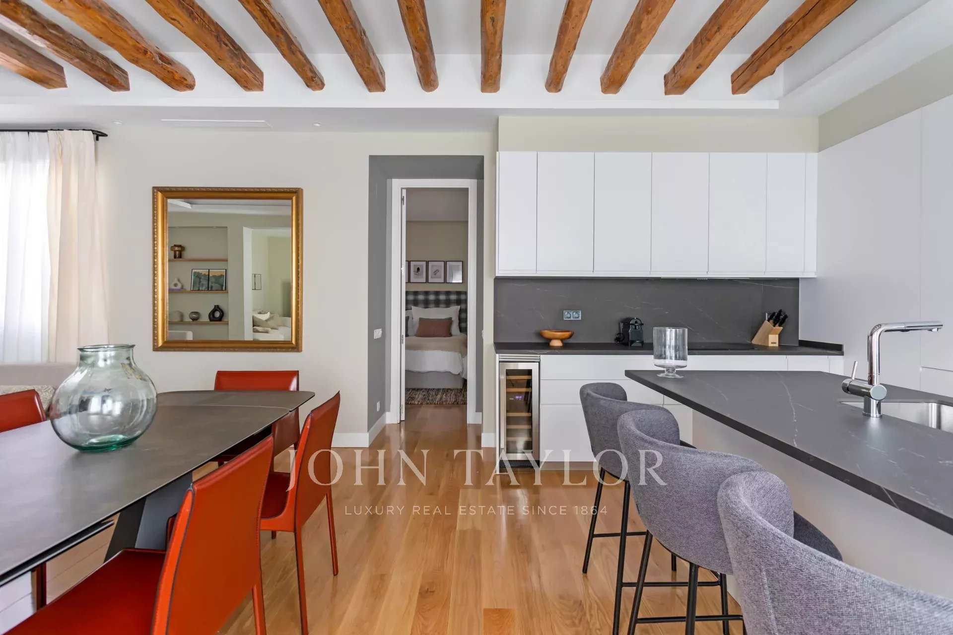 Spectacular designer apartment with a fantastic distribution completely renovated, three large bedrooms en suite, three bathrooms, guest toilet, laundry area and three separate living rooms, one of them with fully furnished kitchenette with high-end appliances. Centralized air conditioning hot and cold.