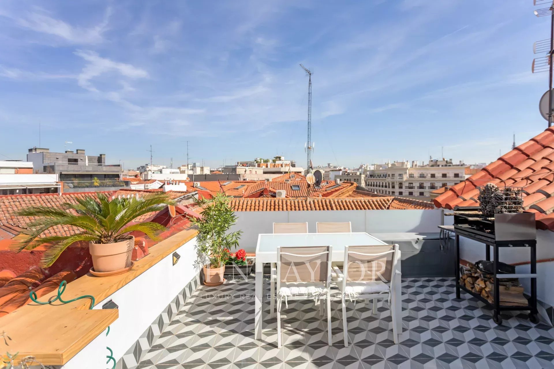 This duplex stands out for its spectacular terrace, which rises imposingly over the neighboring buildings, offering views of the Madrid sky with total privacy and no noise, thanks to its strategic location.