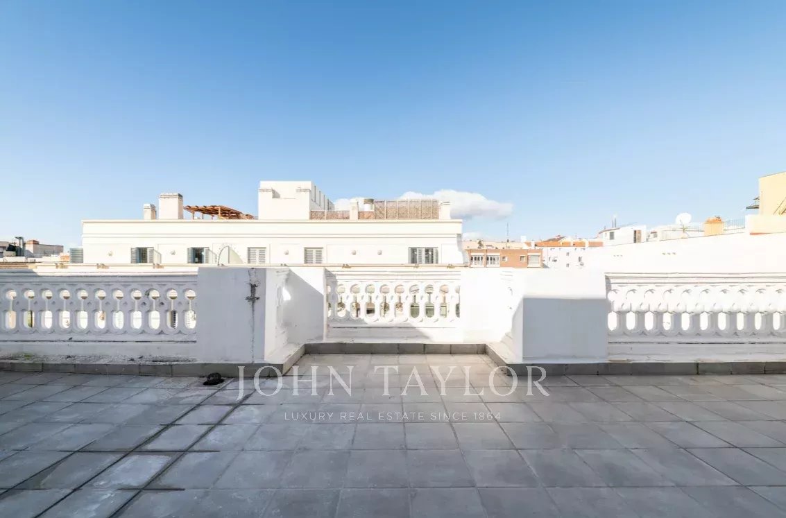 The property, located on the top floor of a representative stately building in Recoletos, stands out for its classic character, elegant entrance and excellent community. Its west orientation provides brightness throughout the day and absolute privacy, while the large terrace of 48 m² allows you to enjoy unique outdoor spaces with unobstructed views.