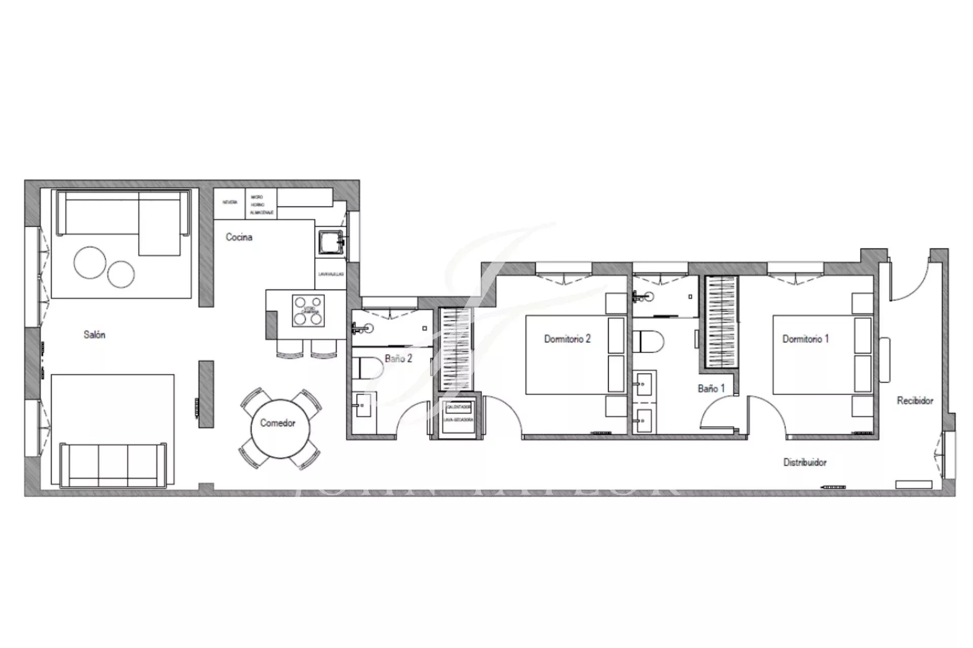 The property has two bedrooms, including the master bedroom with en-suite bathroom, plus an additional second bathroom. This configuration ensures comfort and privacy for its residents.