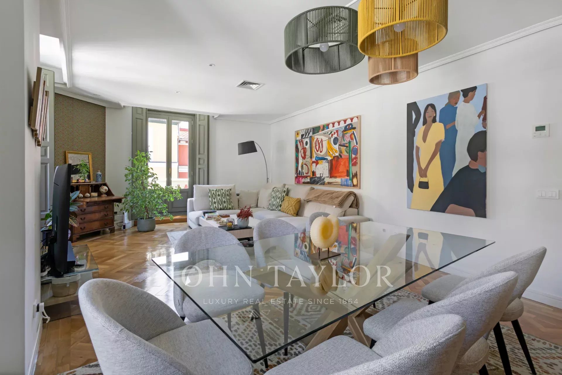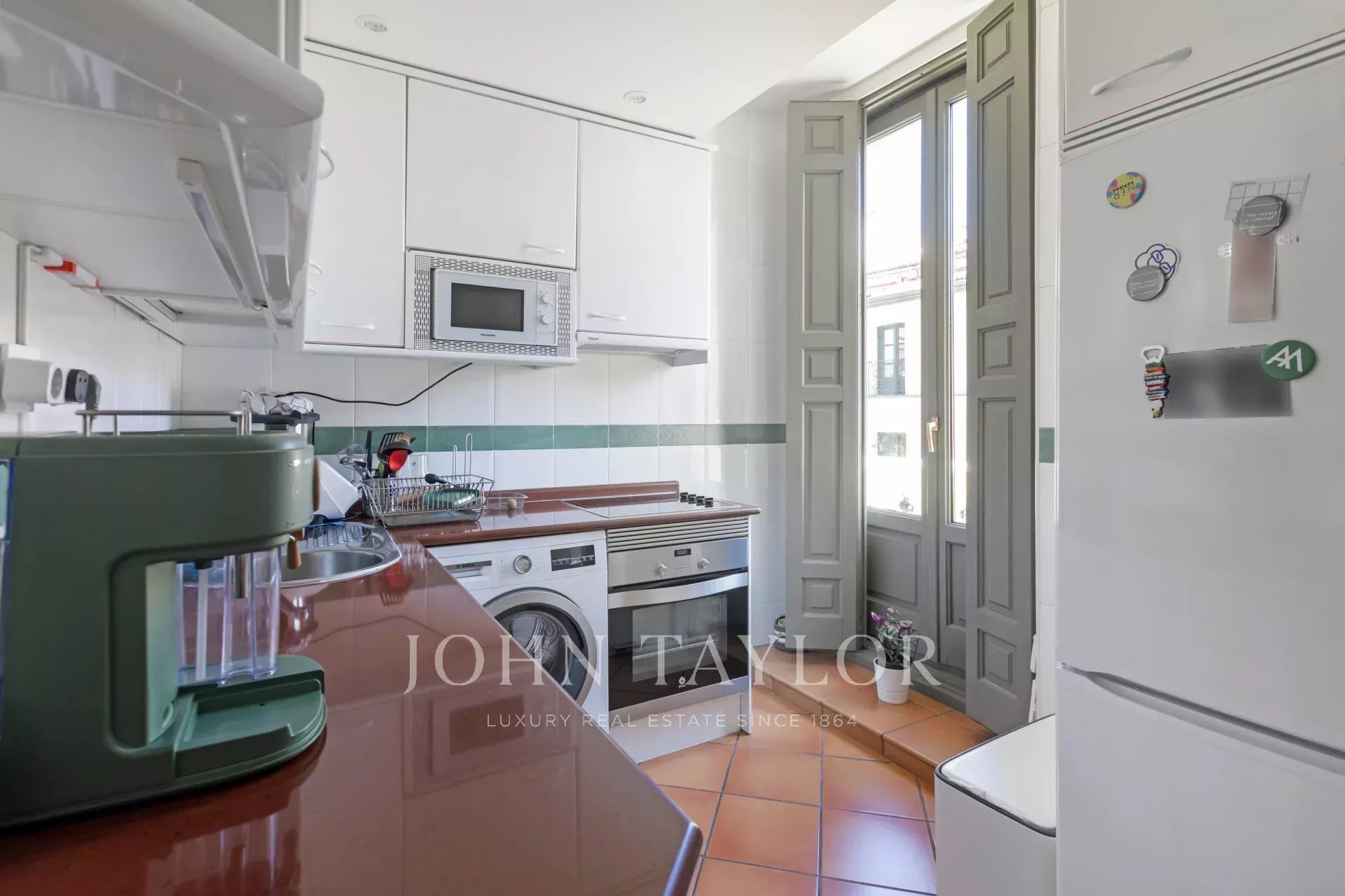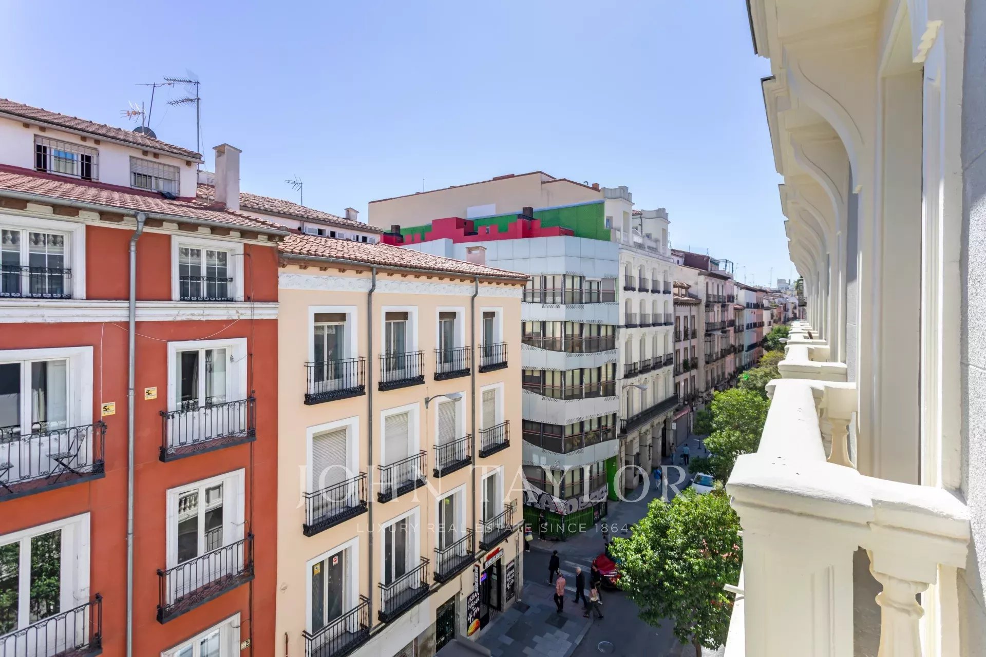 The building, with its stately facade and period portal, is in perfect condition and forms part of the immemorial landscape of Justicia, one of the most vibrant and sophisticated areas of Madrid, surrounded by art galleries, designer boutiques, starred restaurants and all services at street level.