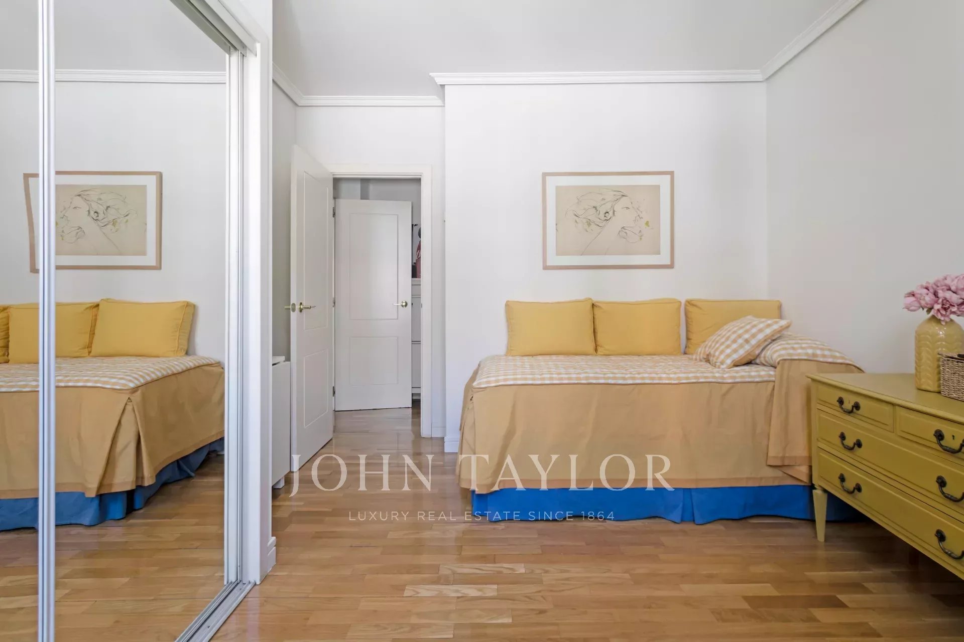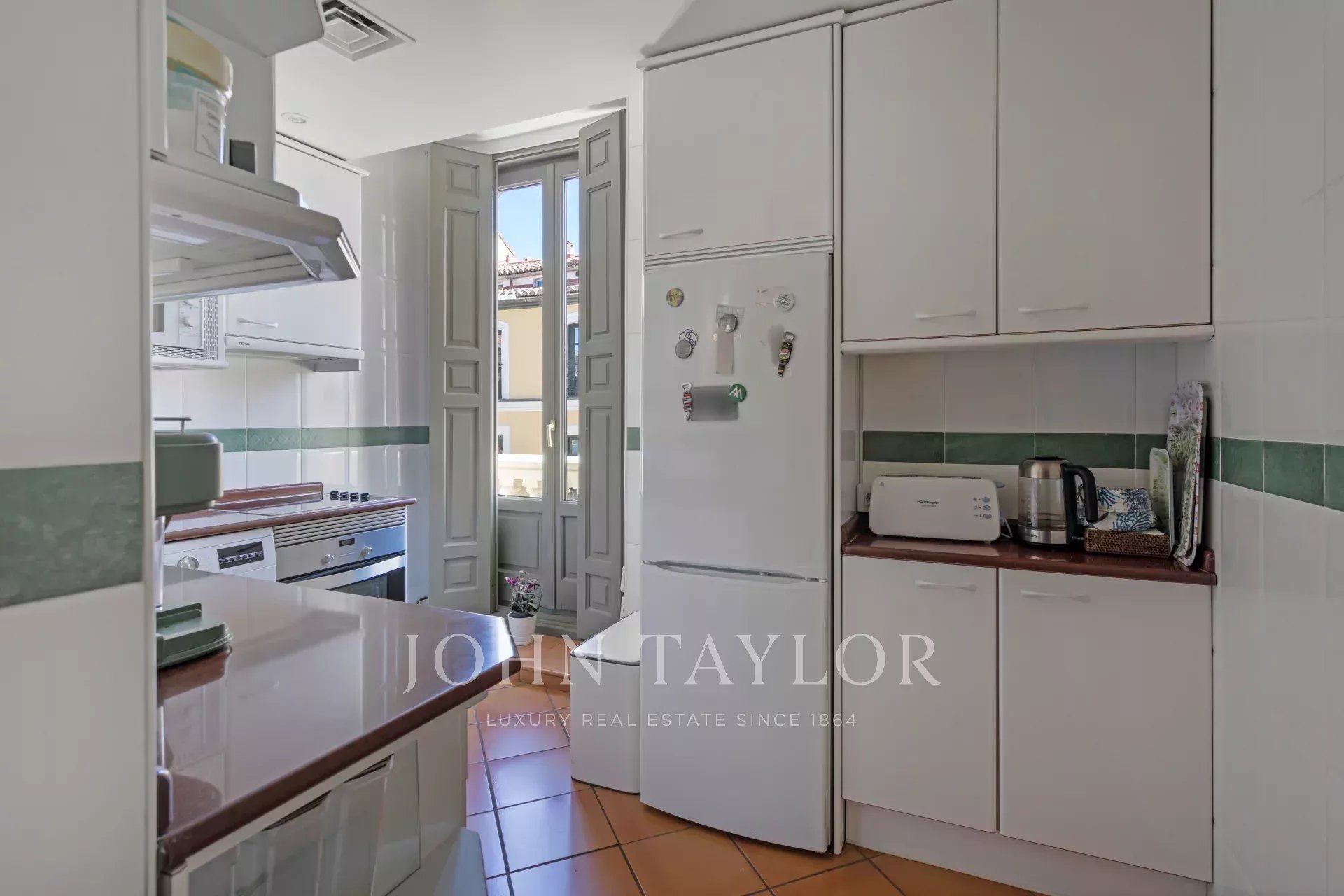 Located on the third floor of this representative building, this apartment enjoys plenty of natural light on the corner, with balconies overlooking the street.