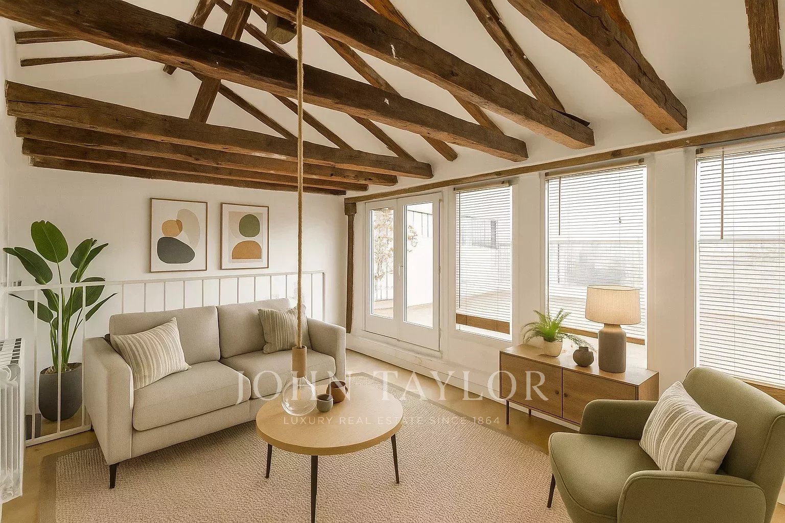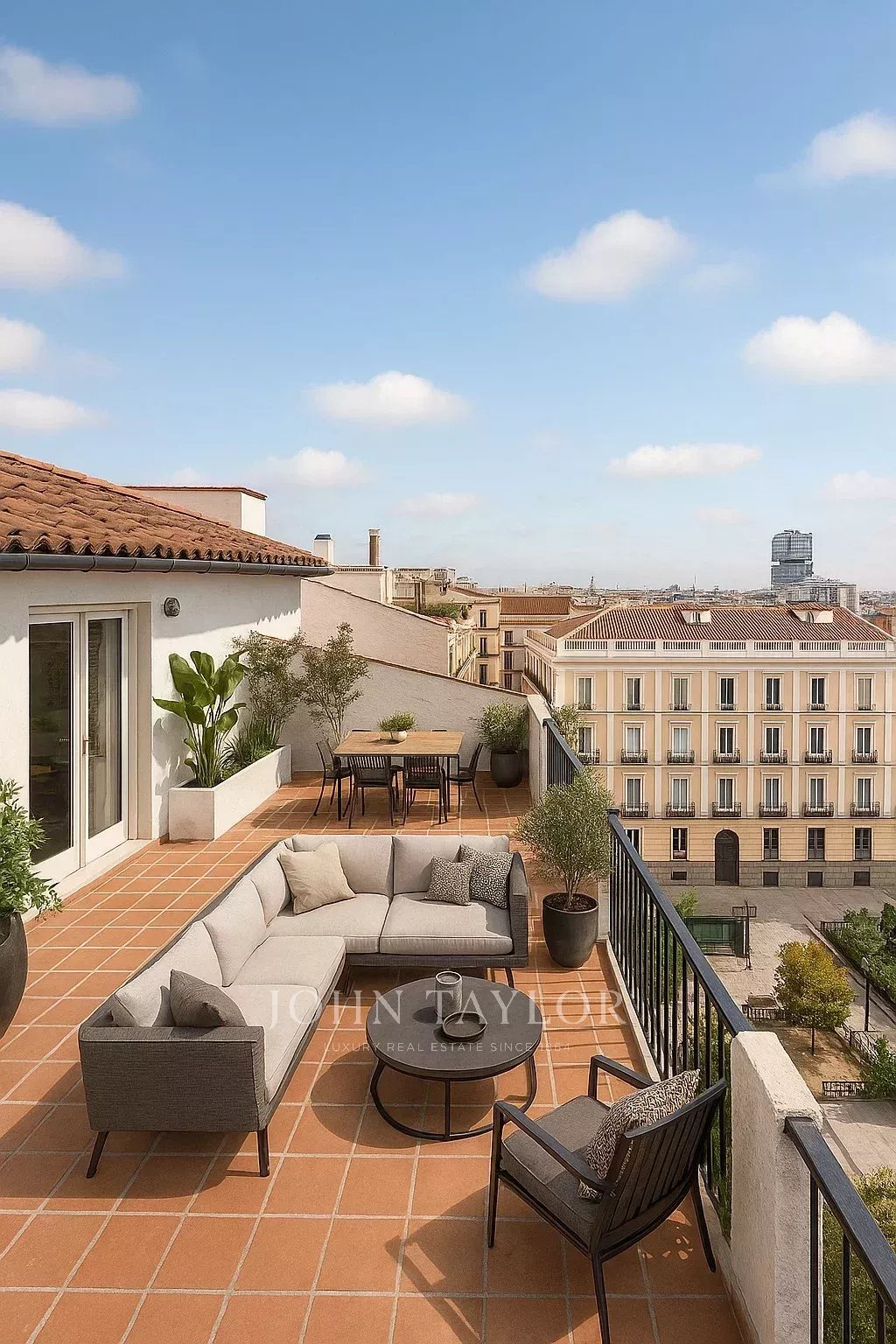Located in the coveted Justicia neighborhood, surrounded by boutiques, galleries and restaurants, this penthouse represents a unique opportunity to live with style, privacy and charm in the heart of Madrid.
