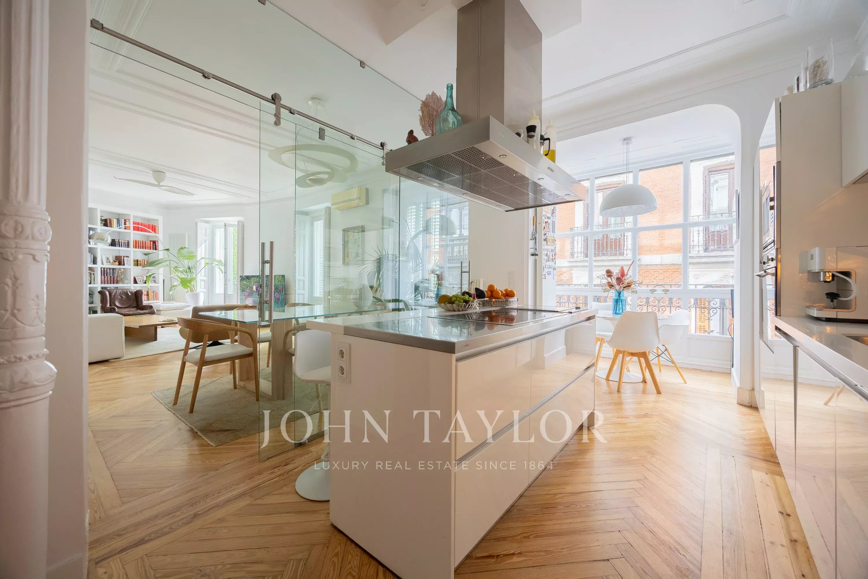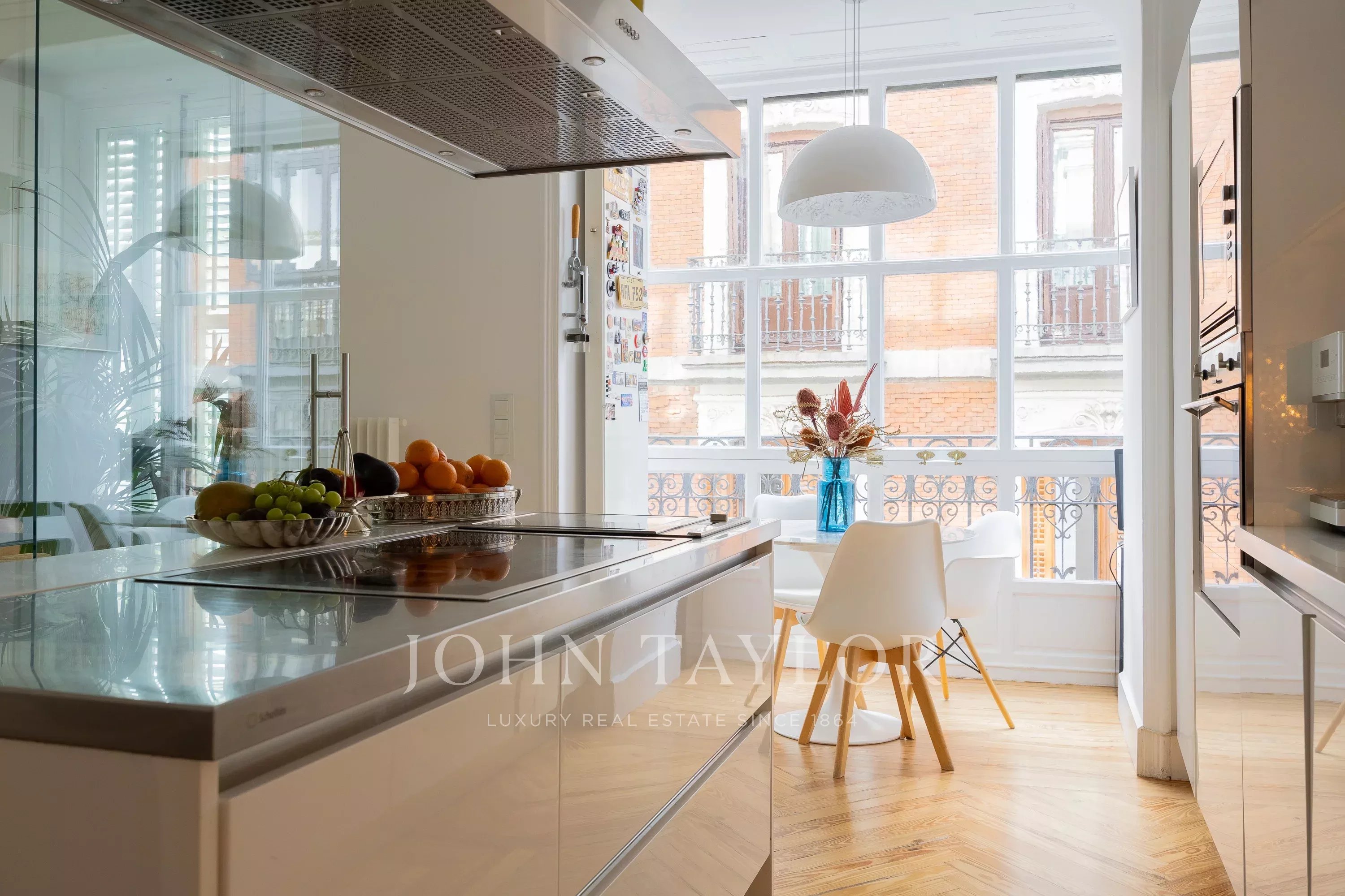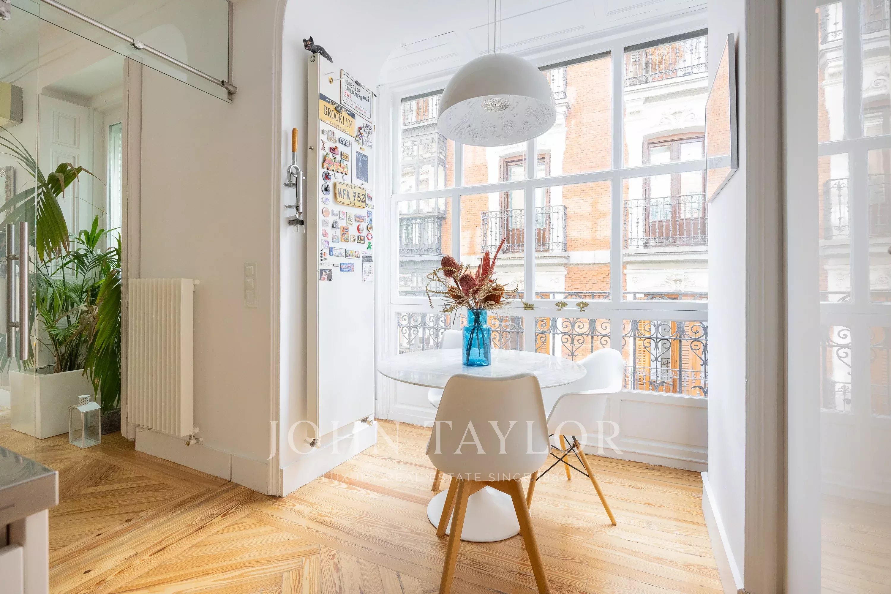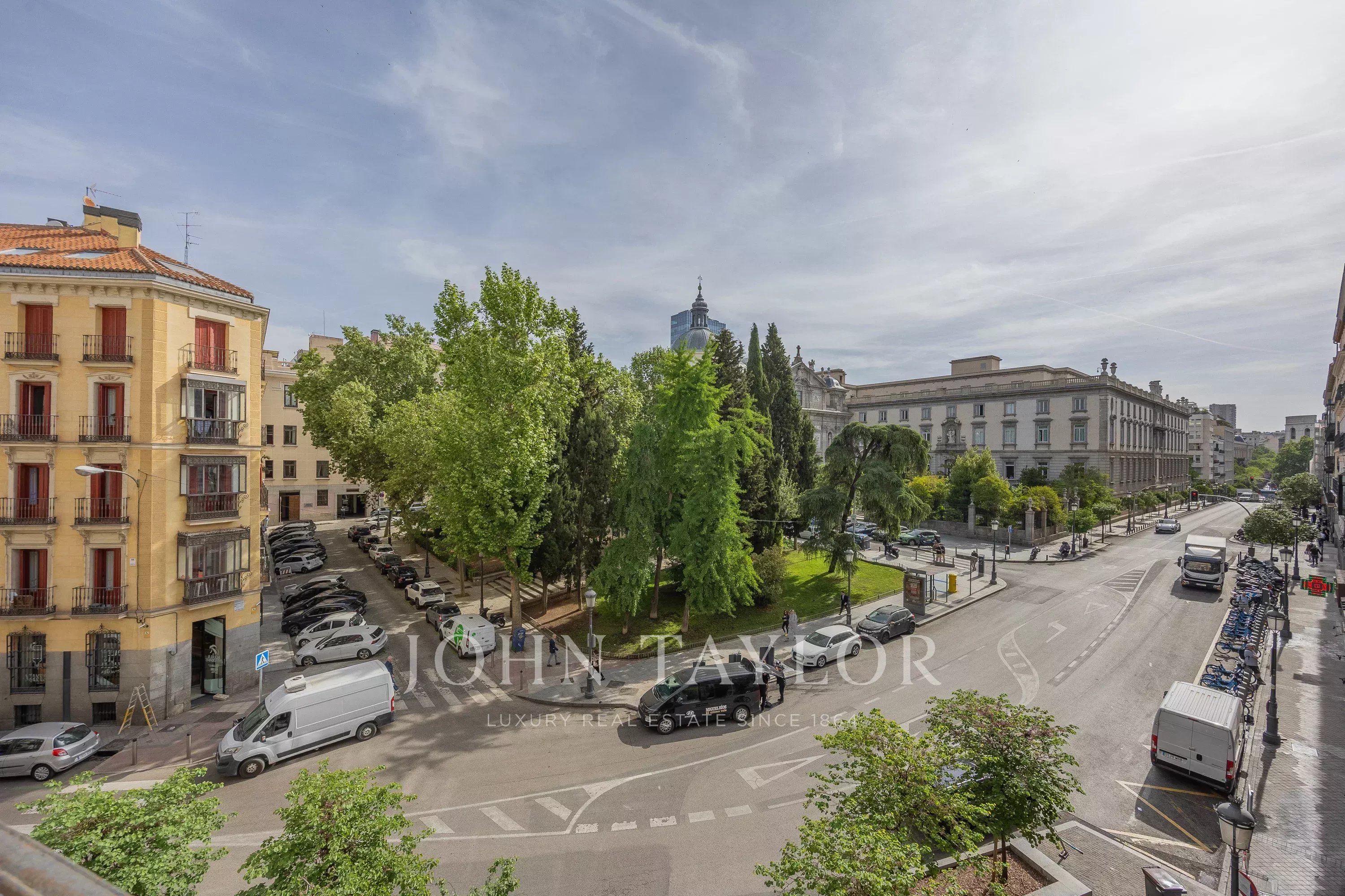 Located in one of the most sought-after addresses in the Justicia neighborhood, this distinguished property of 188 m² offers an exceptional combination of spaciousness, light, and sophistication. Its four balconies, facing Plaza de las Salesas and Santa Bárbara Church, flood the rooms with natural light and offer privileged views right in the city center.
