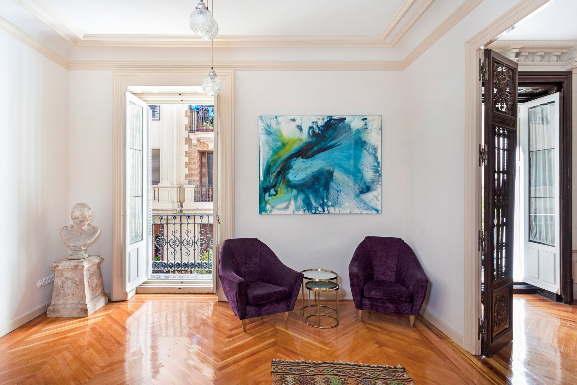 Amazing flat in Justice of 296 m2 in a classic early twentieth century building. Its ceilings, more than 3 metres high with original mouldings, give the whole a classic flavour without prejudice to its recent reform, making this a great family flat in the vibrant Barrio de Justicia, in the very centre of Madrid.