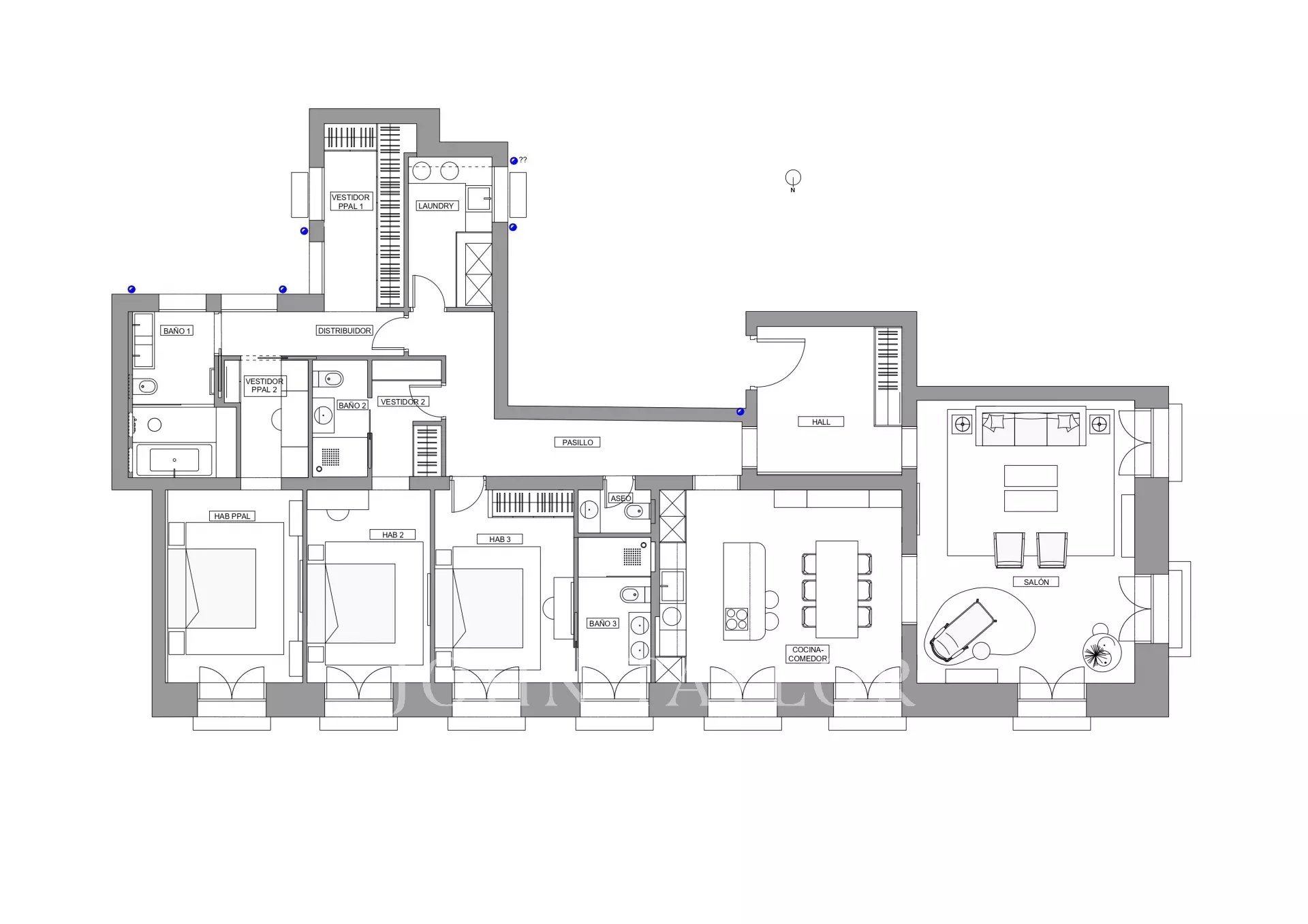 John Taylor presents this spectacular corner property, located in an imposing building with a classic facade in the vibrant neighborhood of Justica. A spectacular property that undoubtedly stands out for its nine balconies and its impressive 3.50 meter high ceilings.