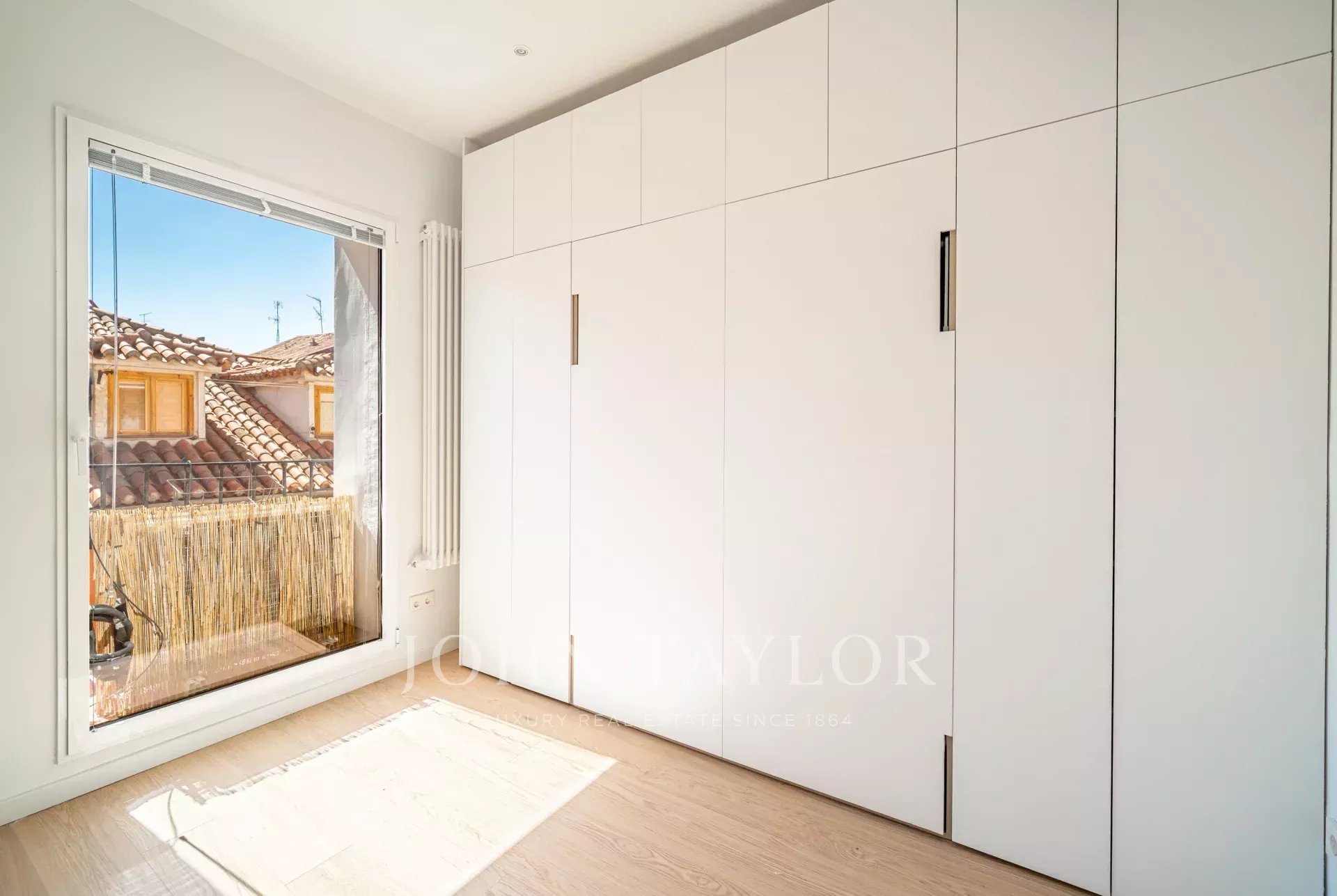 In one of Madrid’s most vibrant areas, the La Latina neighborhood, we find this beautiful apartment, fully renovated with top-quality finishes. It is located on the third floor of a building dating back to 1880. With its south-facing orientation and two street-facing balconies, it enjoys abundant natural light. Every detail has been carefully designed, creating a unique, signature home.