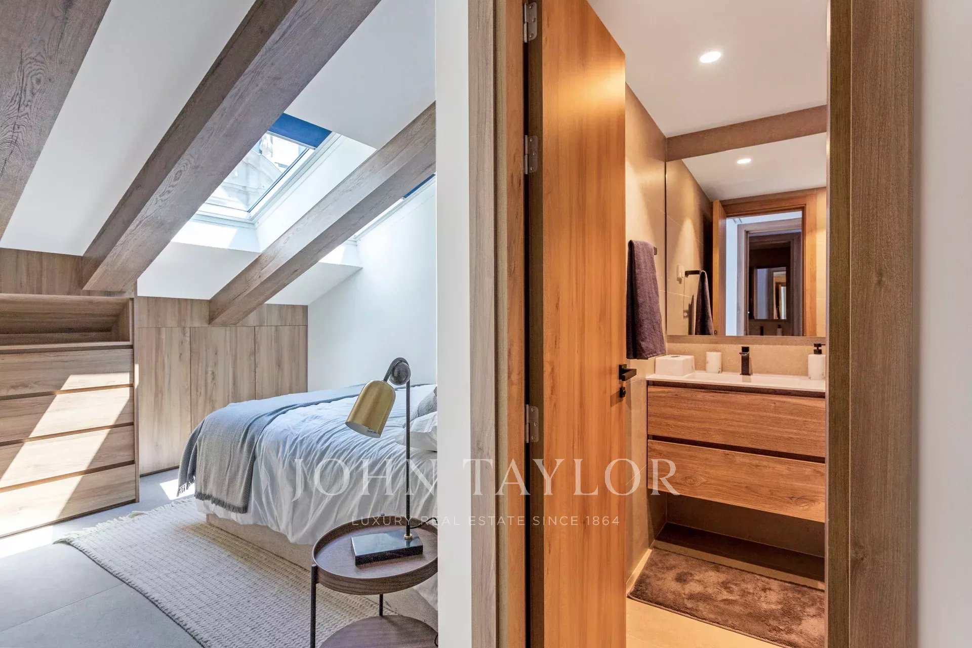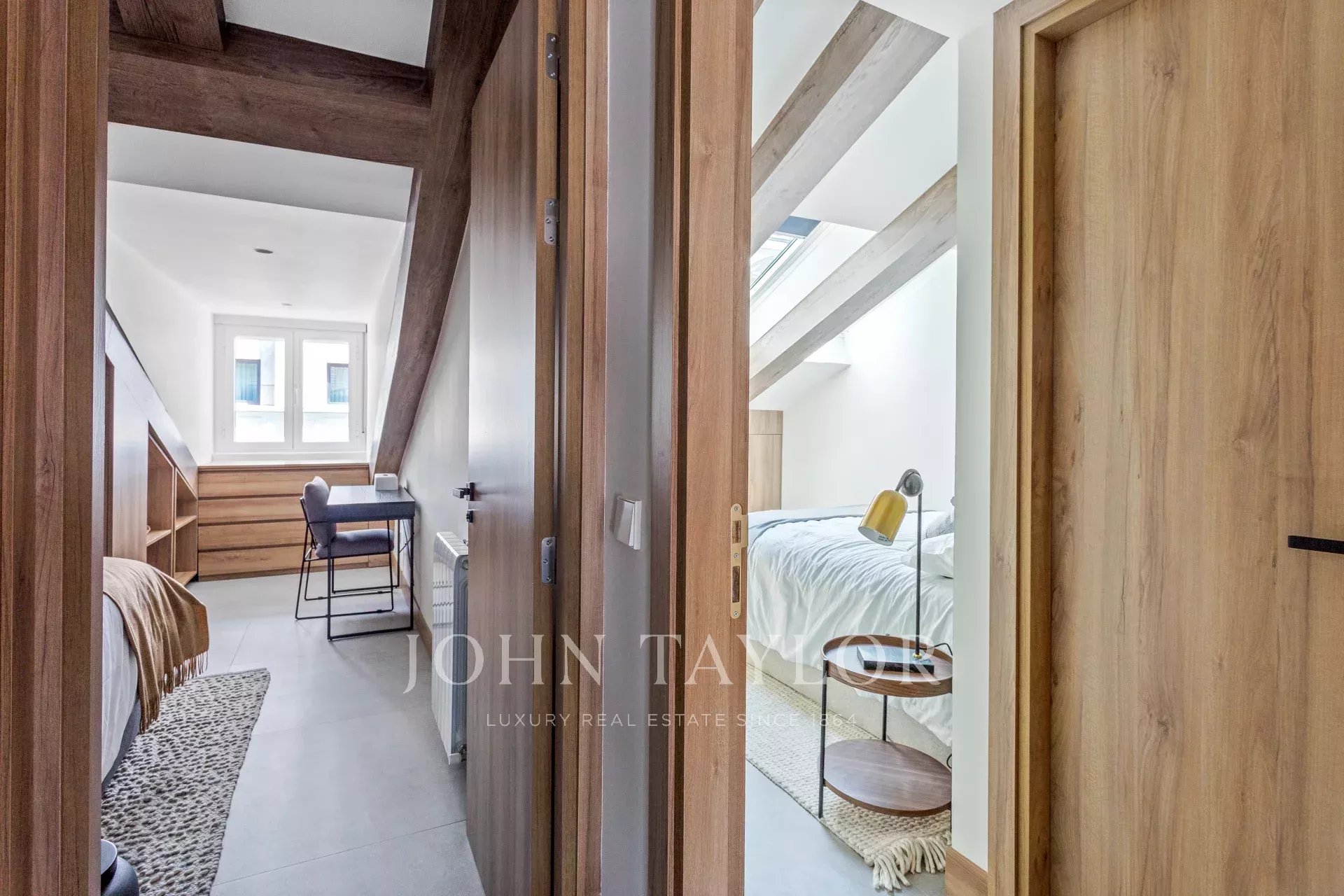 Each flat has two bedrooms with en suite bathrooms, fitted wardrobes, individual heating and ducted air conditioning with AirZone. They each have their own terrace (21 m² + 14 m²) connected by a beautiful metal door. The terraces have total privacy.