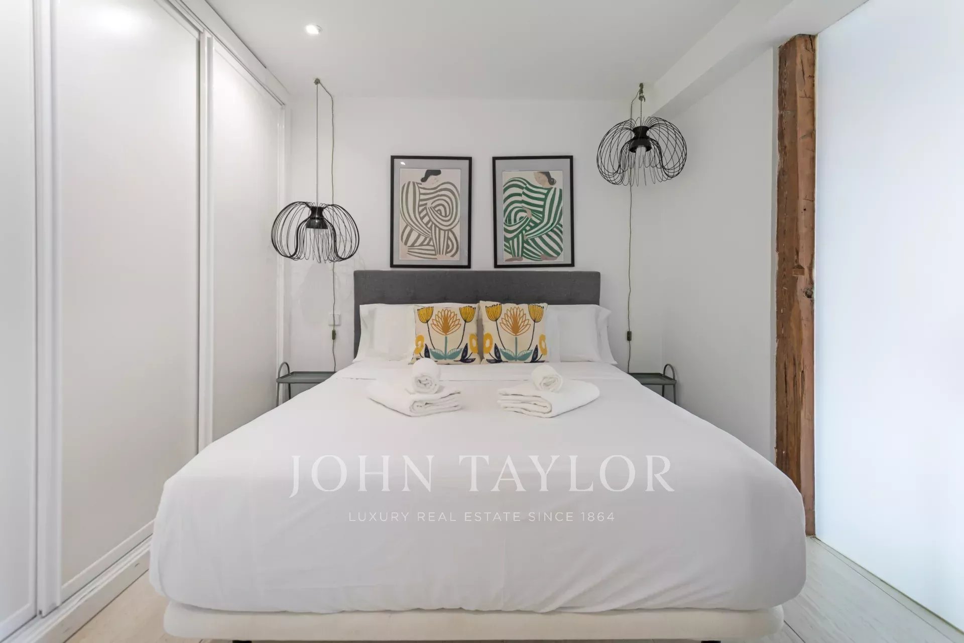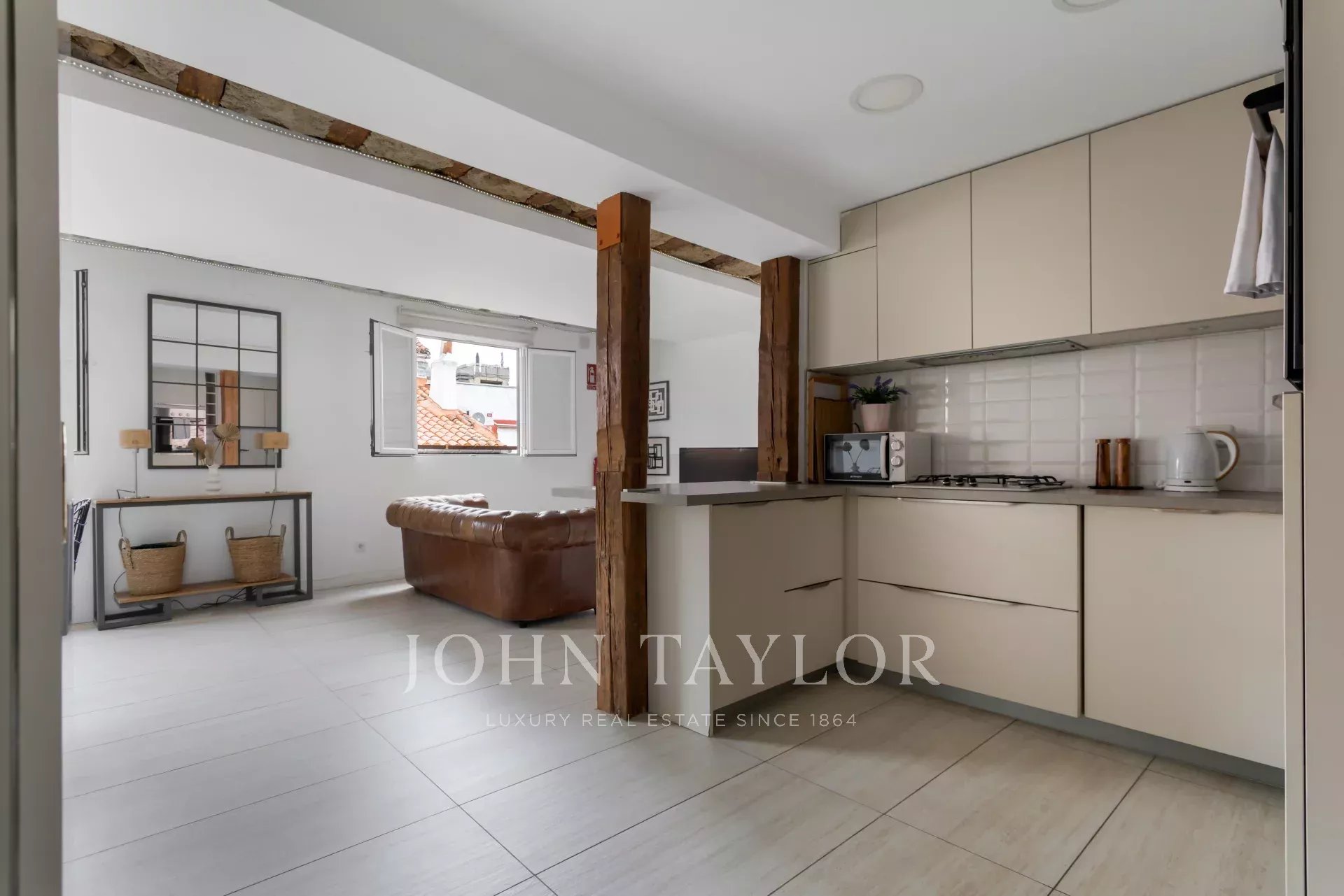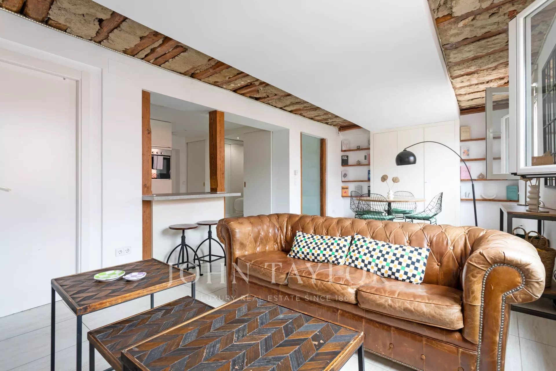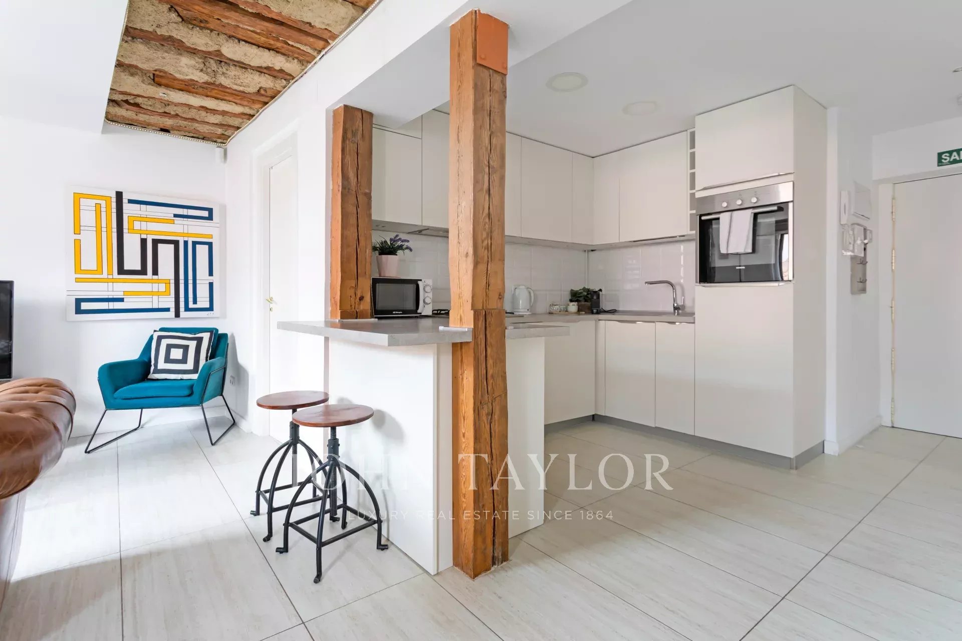 In one of the most vibrant neighborhoods of the city, and in a beautiful classic building from 1900, we find this beautiful apartment, completely renovated, furnished and ready to live. It is located on the top floor of the building, with two windows facing southeast, so it enjoys great natural light. Its intelligent reform makes the most of the spaces, and preserves the original character of the building with exposed wooden beams on ceilings and walls.