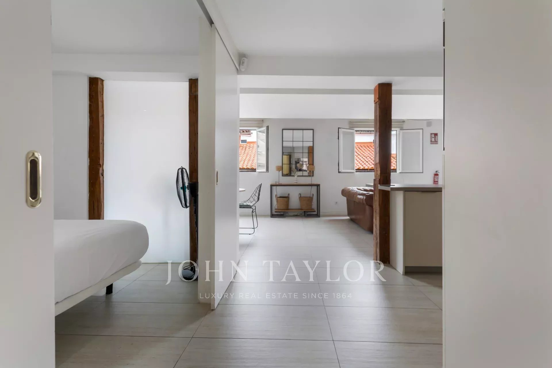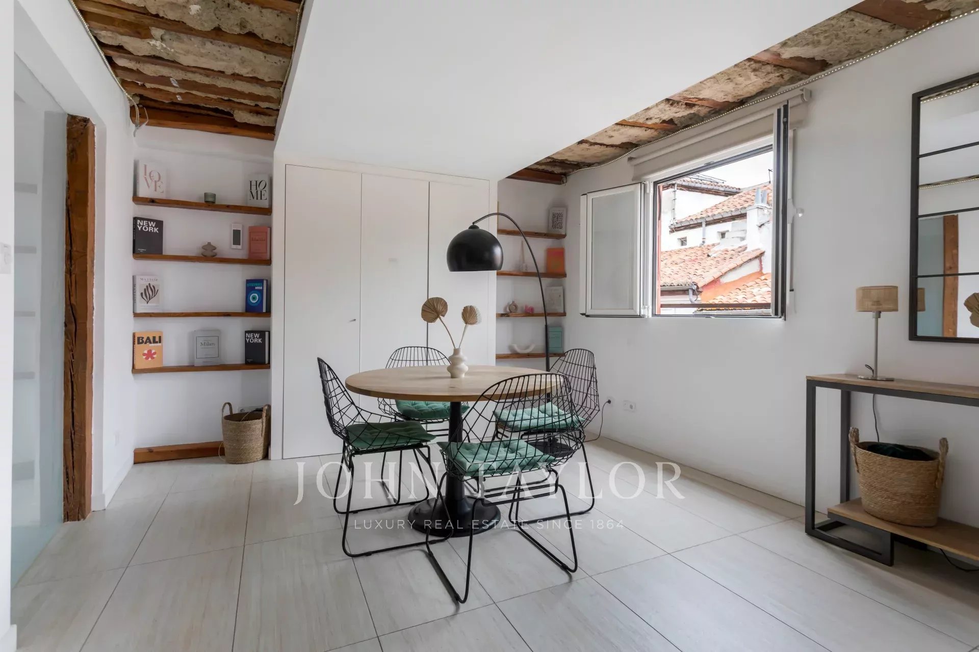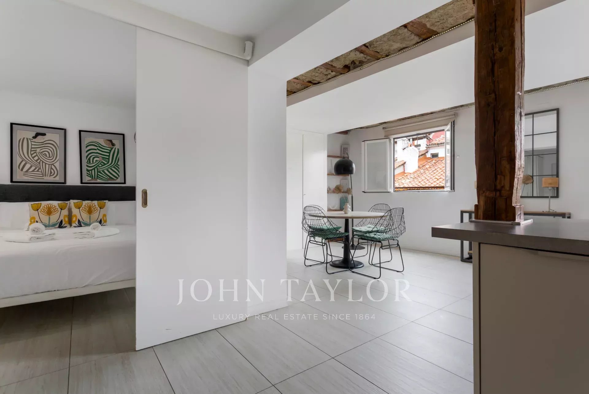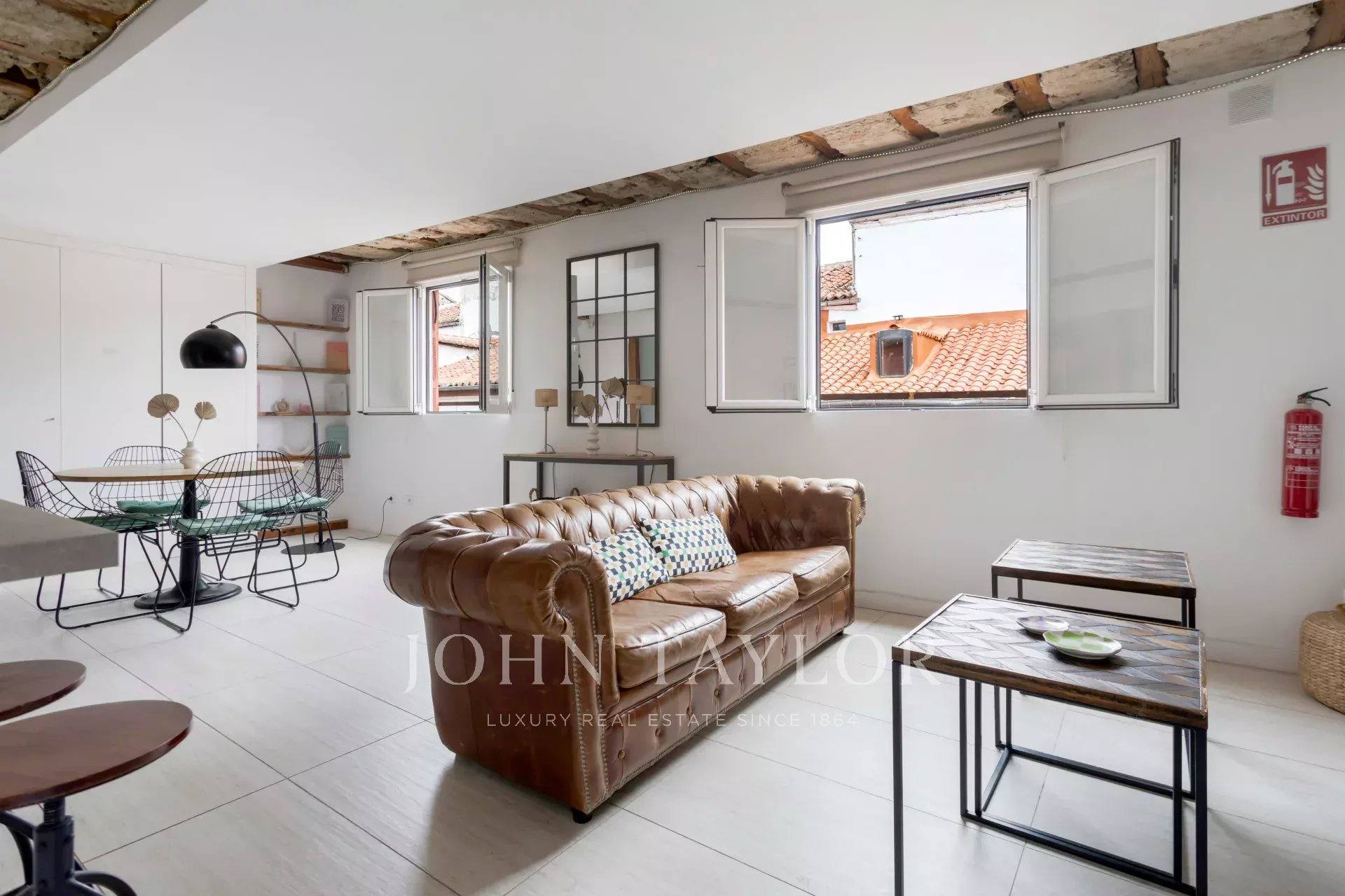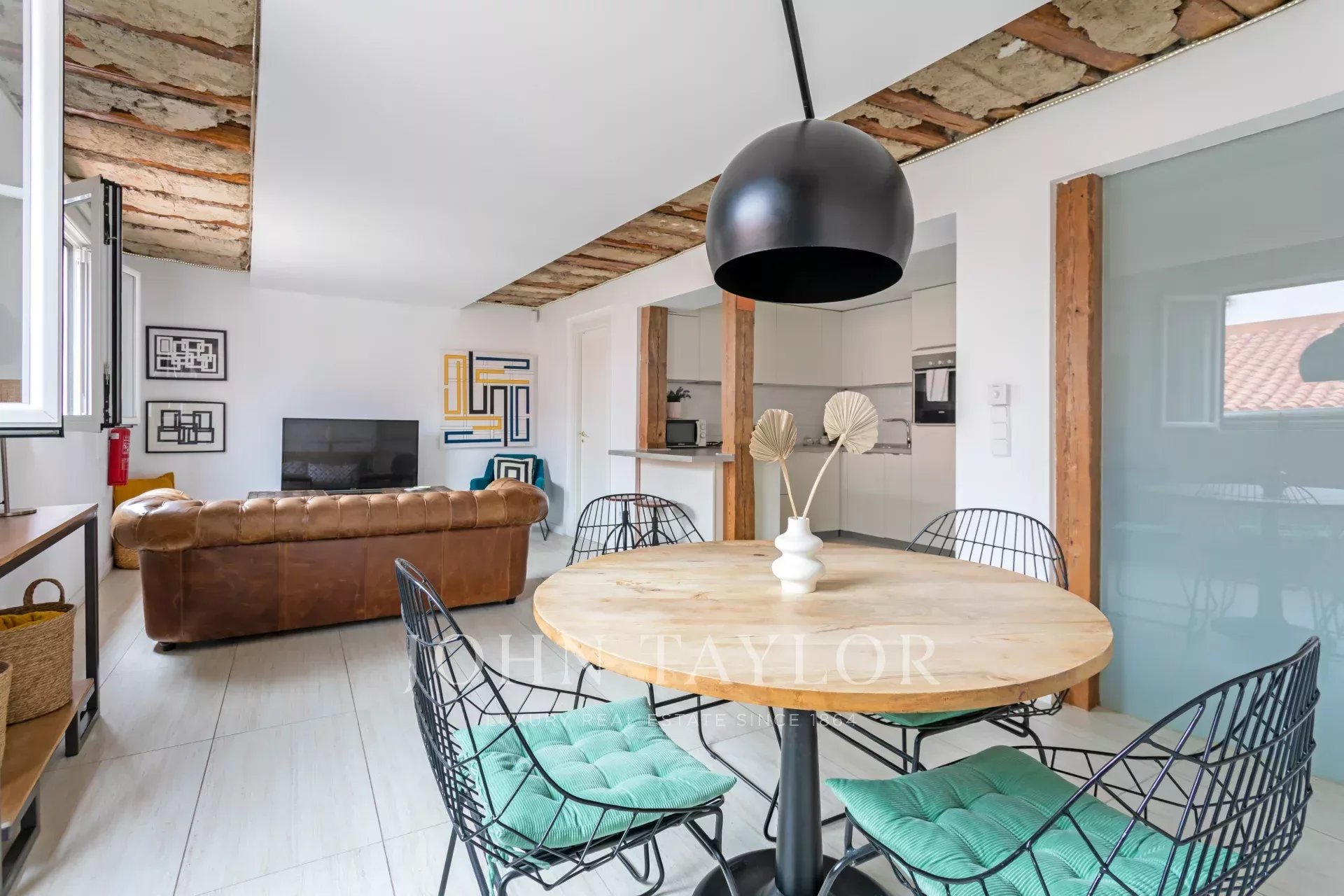 In one of the most vibrant neighborhoods of the city, and in a beautiful classic building from 1900, we find this beautiful apartment, completely renovated, furnished and ready to live. It is located on the top floor of the building, with two windows facing southeast, so it enjoys great natural light. Its intelligent reform makes the most of the spaces, and preserves the original character of the building with exposed wooden beams on ceilings and walls.