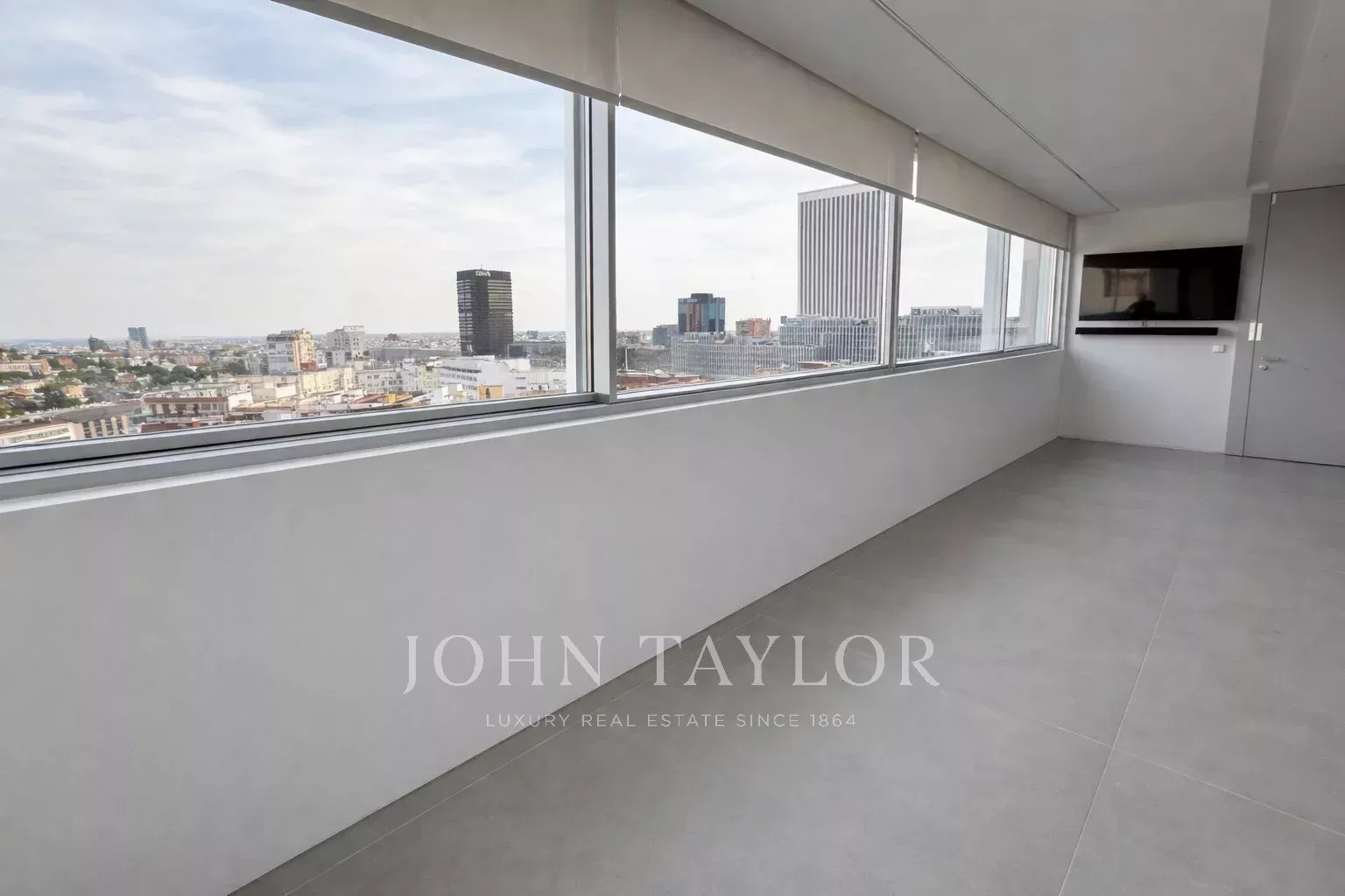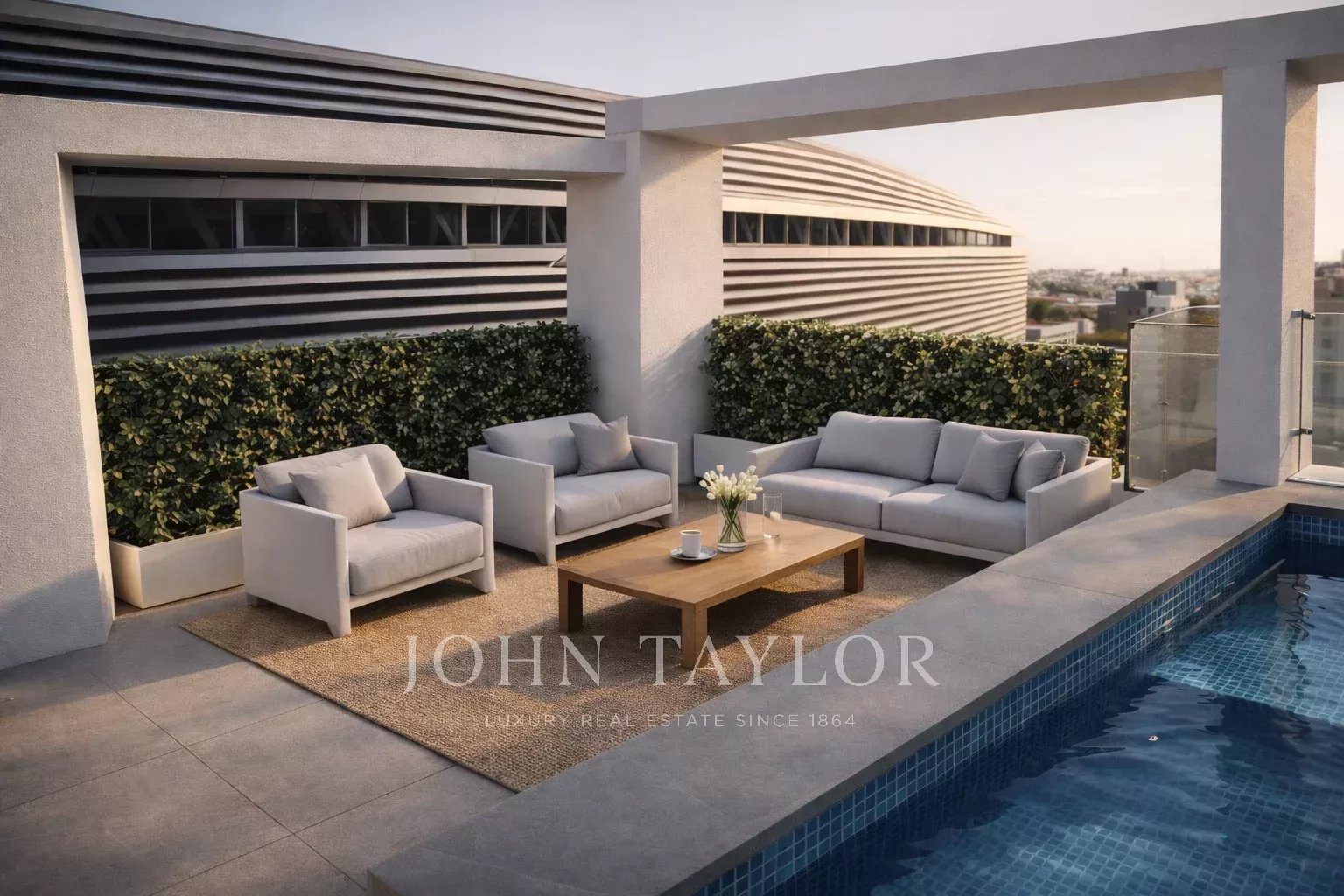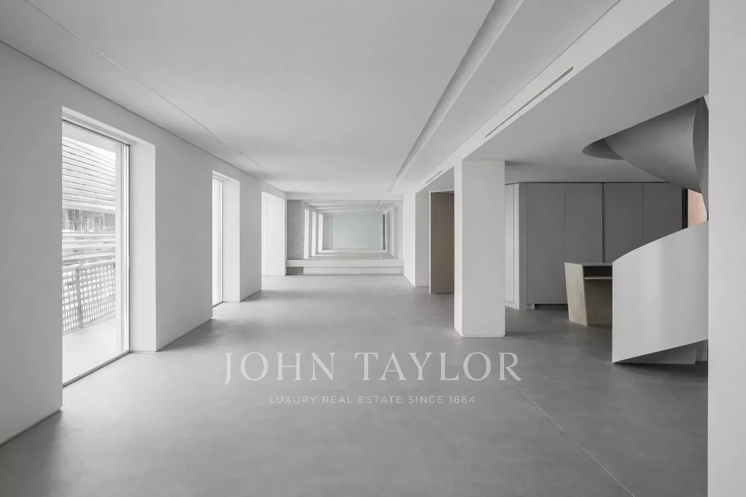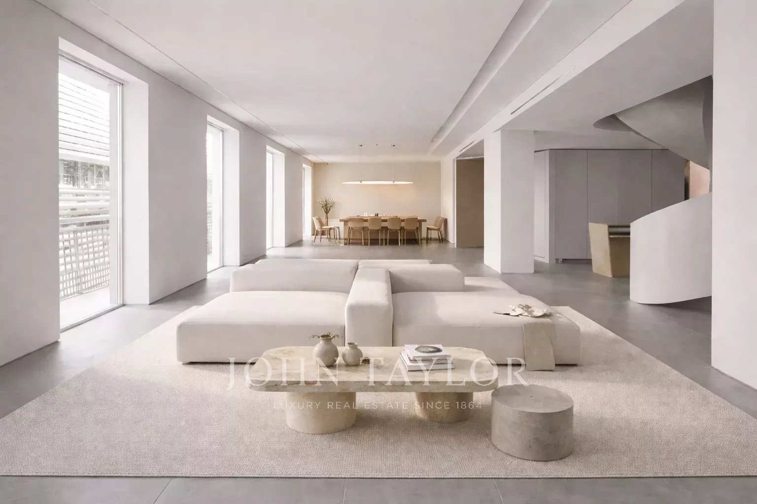 John Taylor presents this extraordinary duplex penthouse of contemporary design, with private pool, located in one of the most valued residential areas of Madrid.