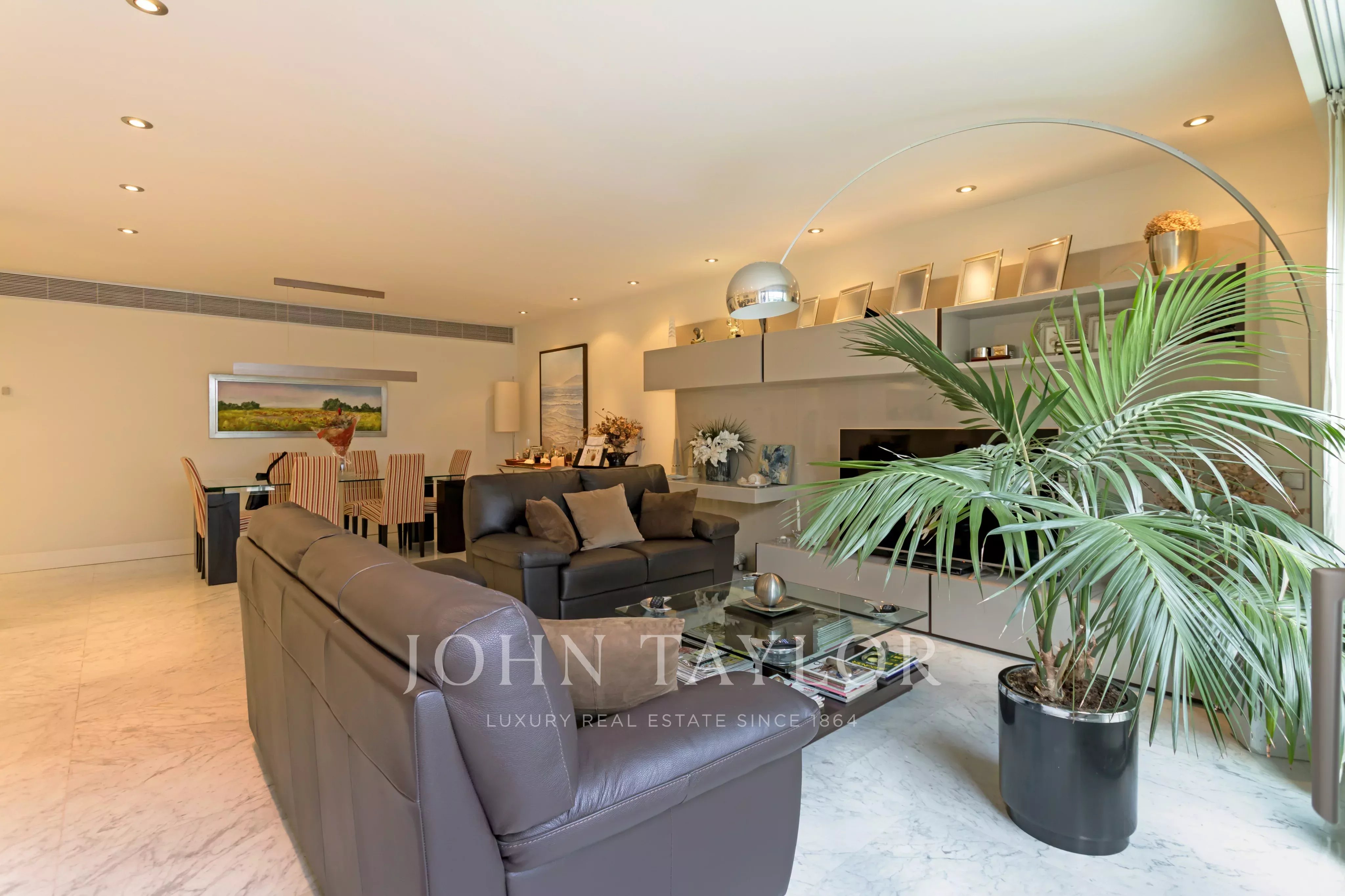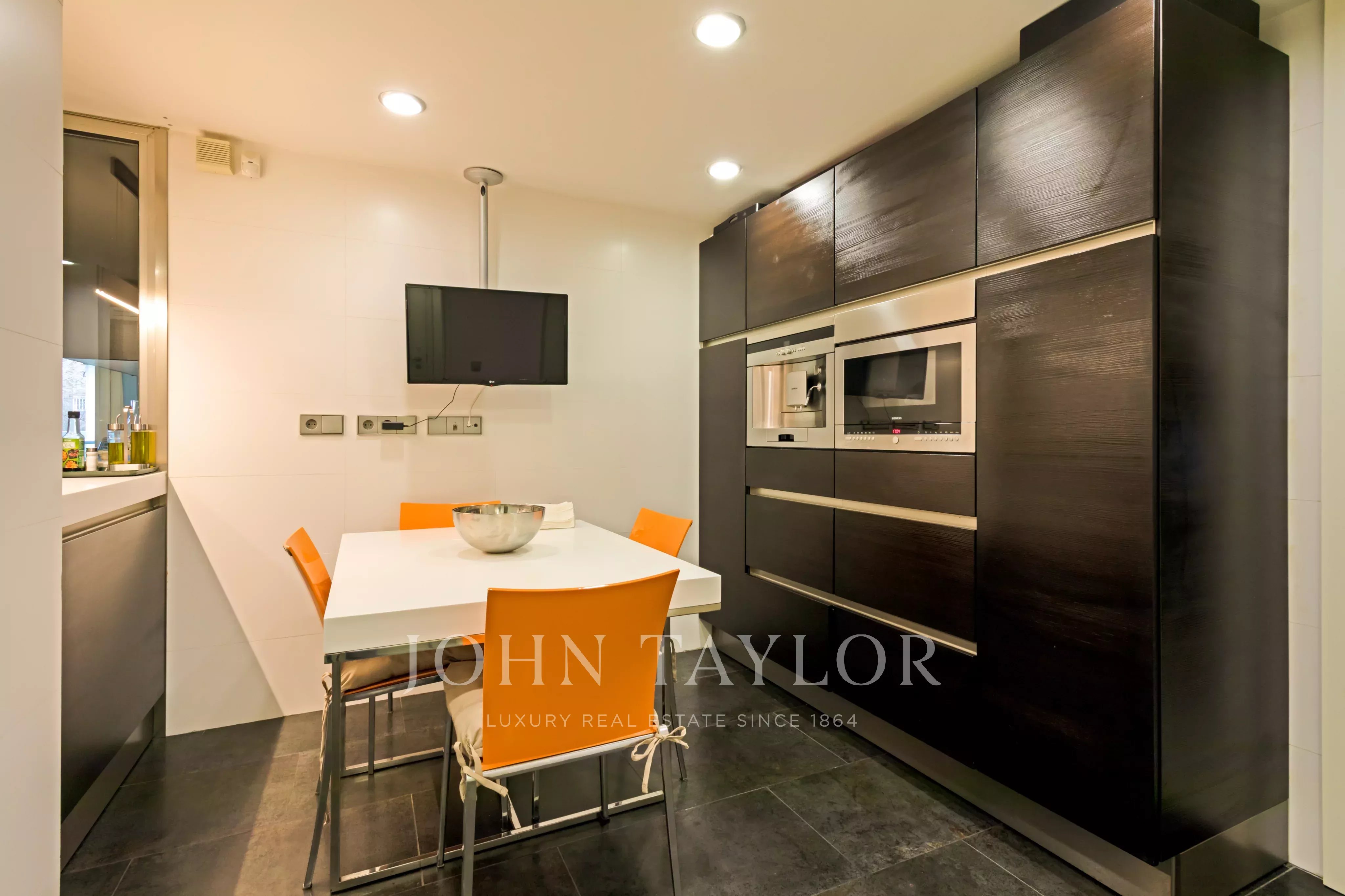 Large fully equipped kitchen area, with living terrace facing east. To highlight the spaciousness of the rooms as well as a high storage capacity provided by its numerous built-in closets from floor to ceiling. The property has individual underfloor heating and ducted air conditioning.