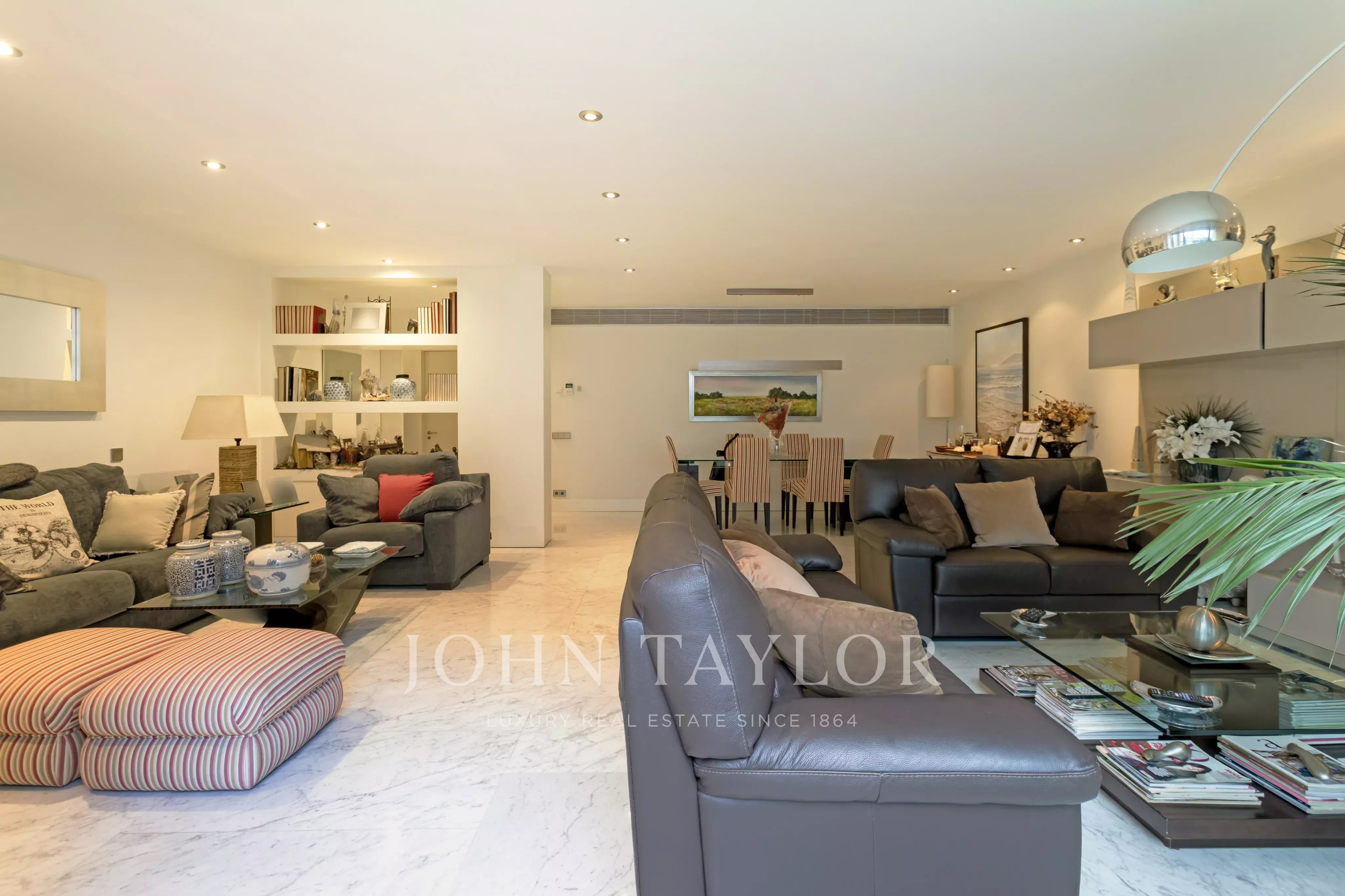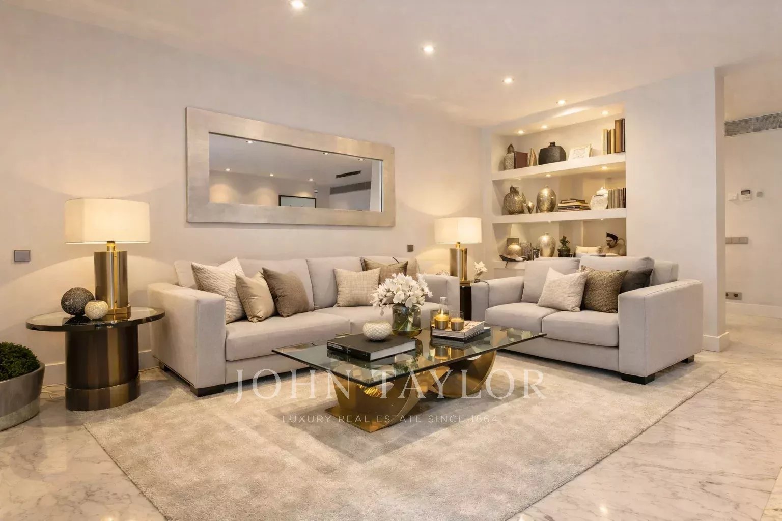 The sleeping area consists of three large bedrooms all with en suite bathroom. One of the bedrooms has direct access to the terrace. The master bedroom offers two distinct environments, reading area and / or office and sleeping area with dressing room, has floor to ceiling windows, unobstructed views and south facing.