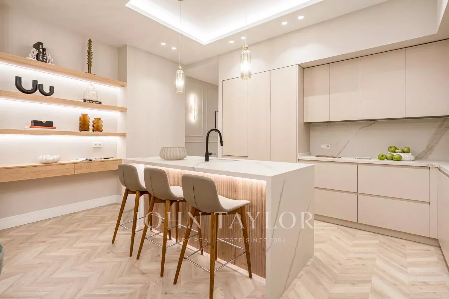 Located in one of the most sought-after streets of Chamberí, this elegant home offers the comfort and charm of a garden-level residence, combining privacy, luminosity and a particularly tranquil atmosphere.