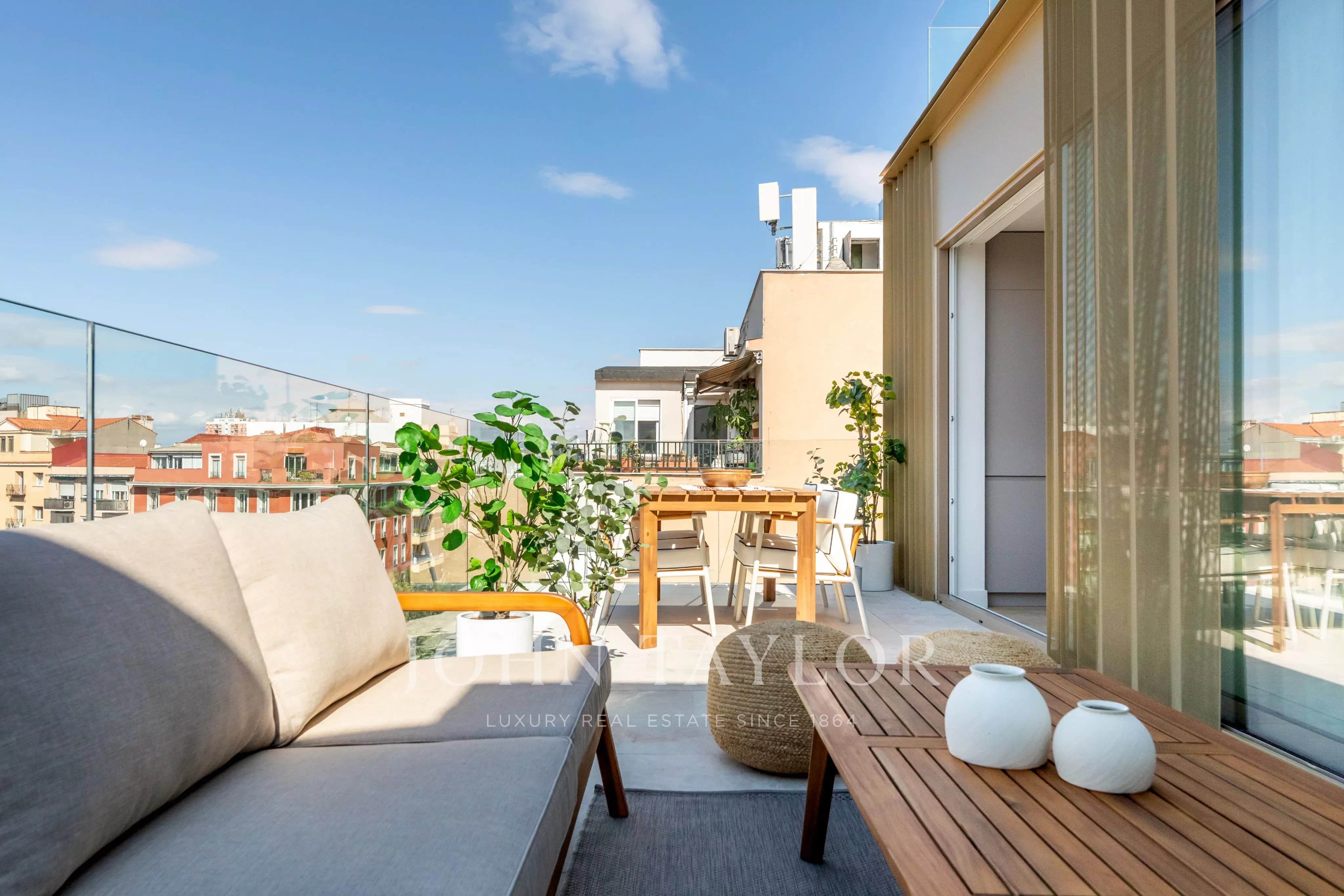 It has a private pool and a large terrace.