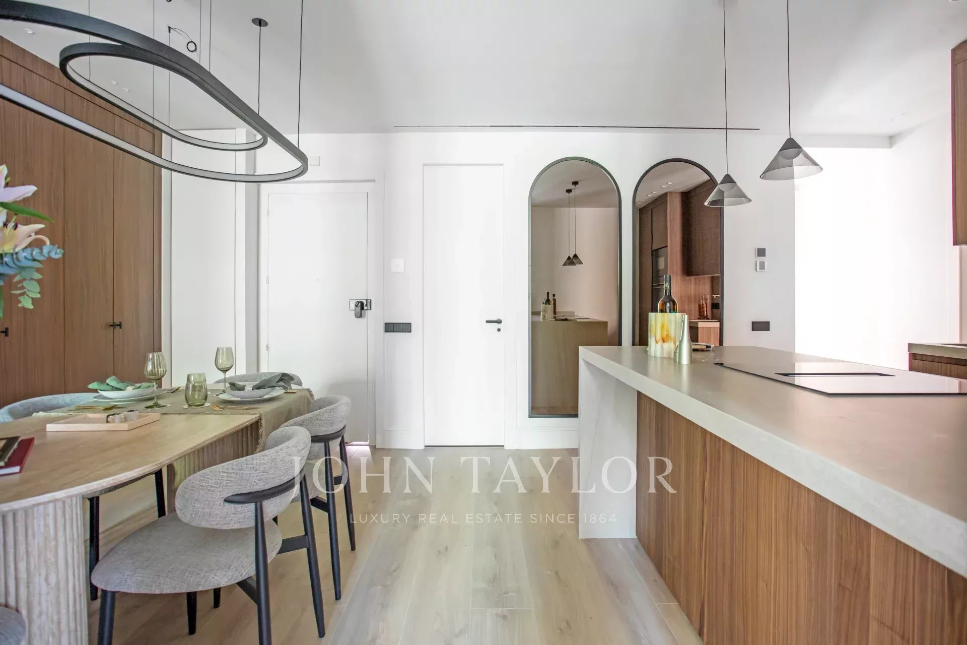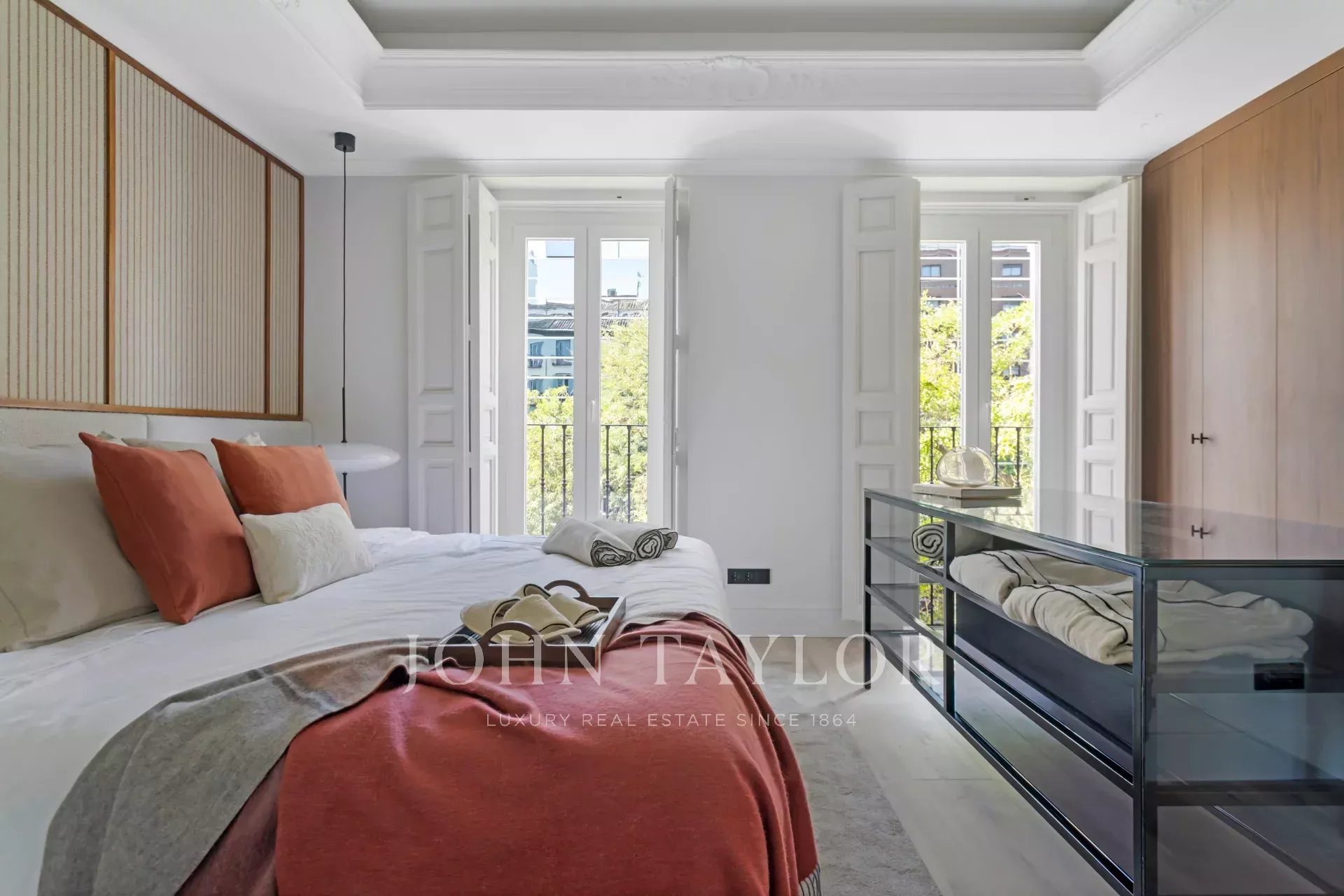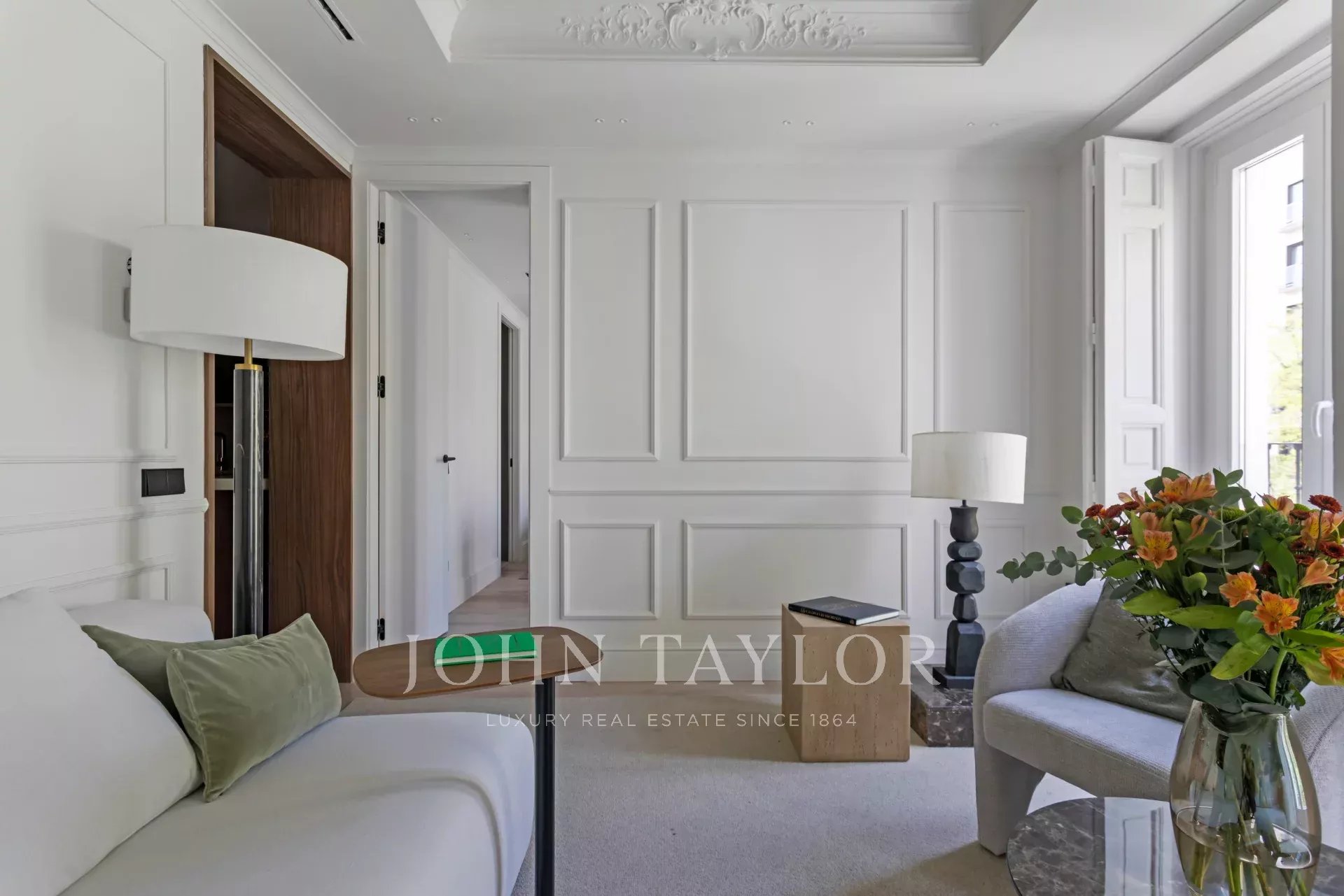 John Taylor presents this elegant property completely refurbished and furnished brand new, located on the second floor of a classic estate in Santa Engracia Street, one of the most emblematic streets of the coveted neighborhood of Almagro.