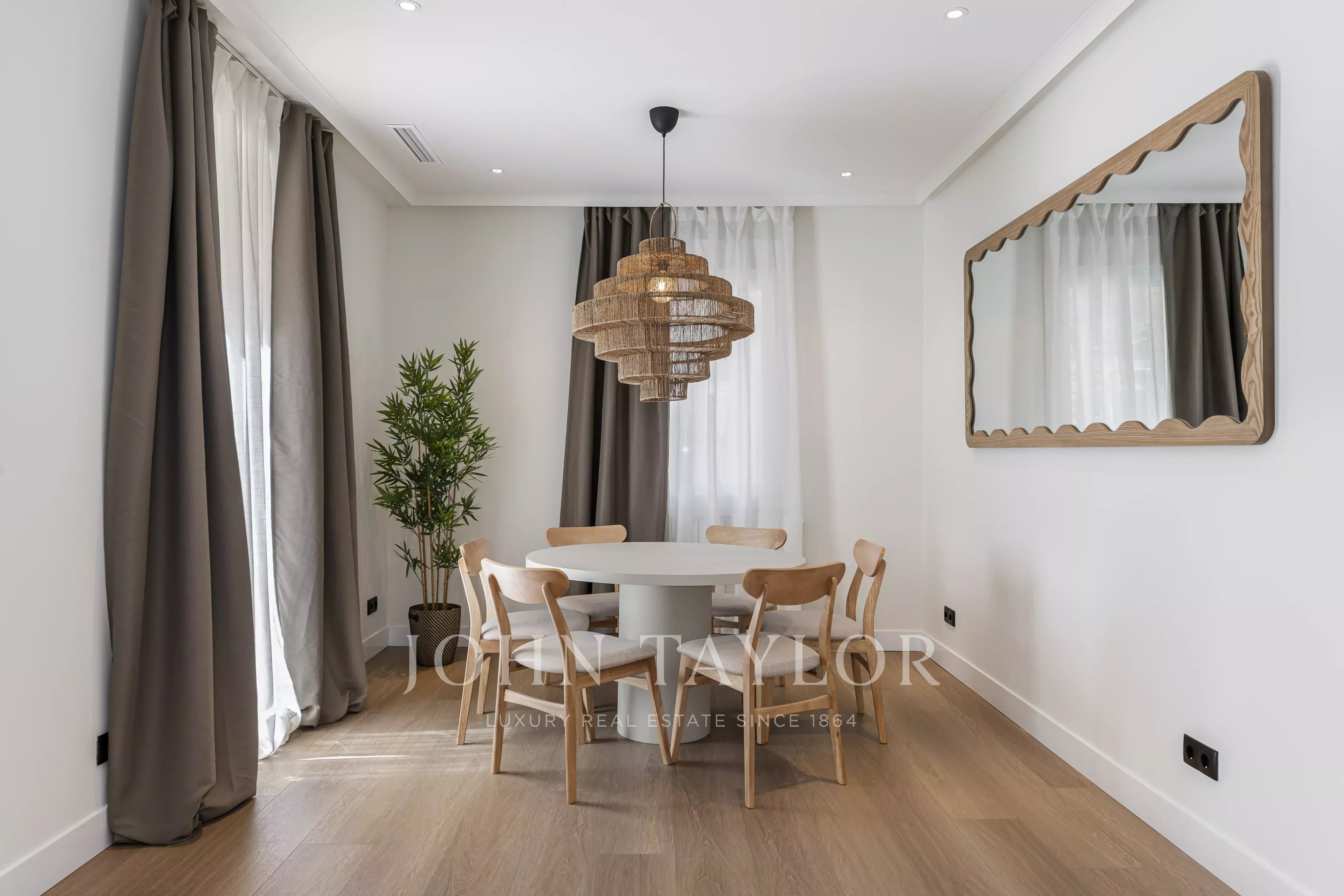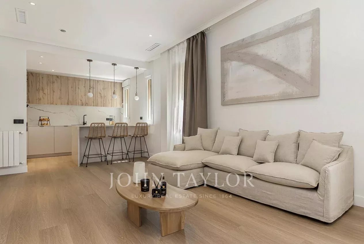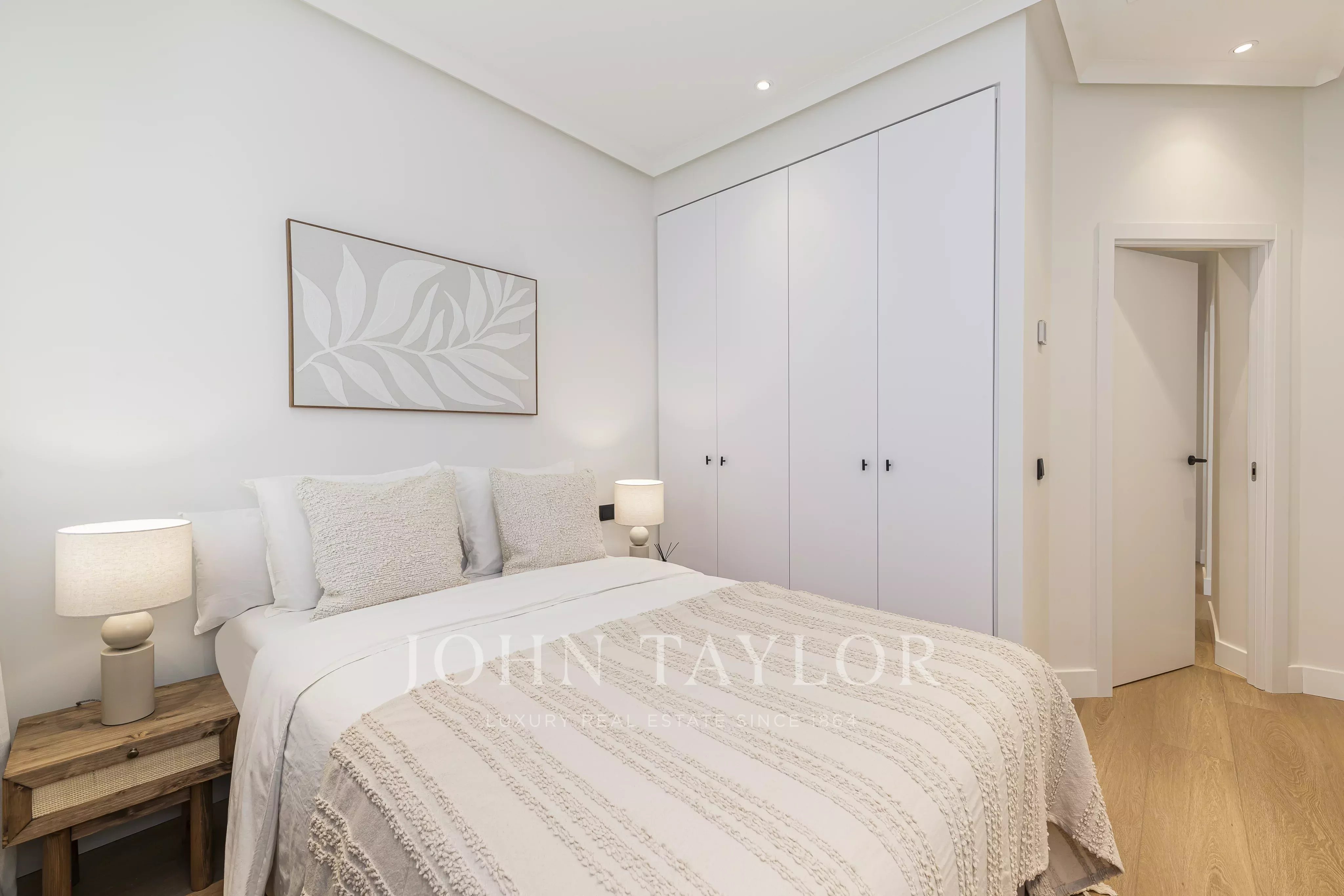 Discover this exquisite 147.05 m² apartment for sale in the prestigious Chamberí Almagro area of Madrid. Designed for ultimate comfort, this modern home offers two spacious bedrooms, a stylish open-plan living and dining area, and is fully furnished with chic, contemporary décor. The double glazing and sliding windows ensure a peaceful ambiance while letting in ample natural light.