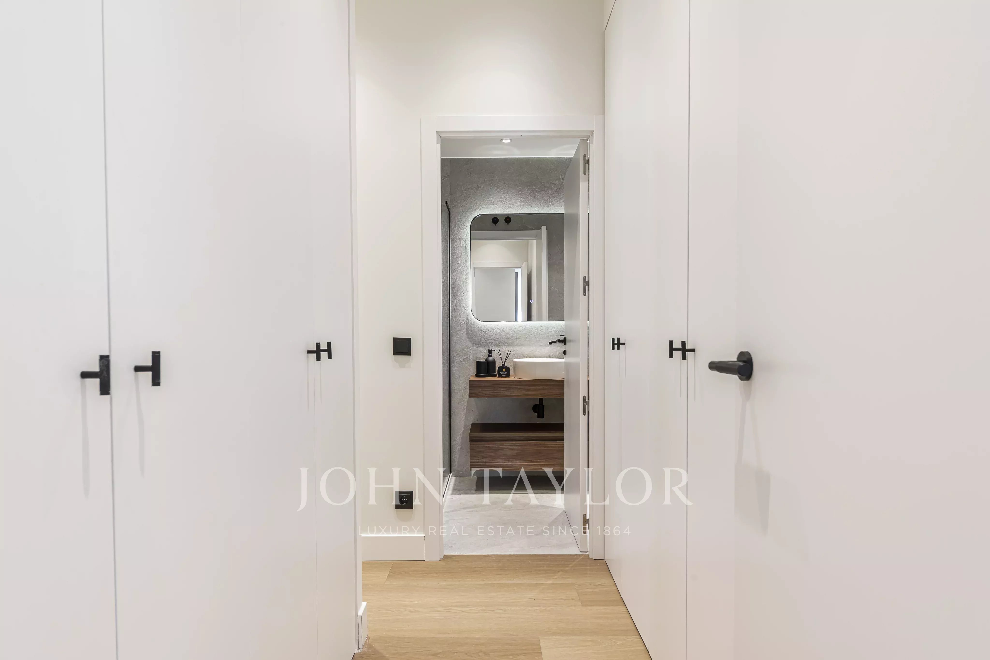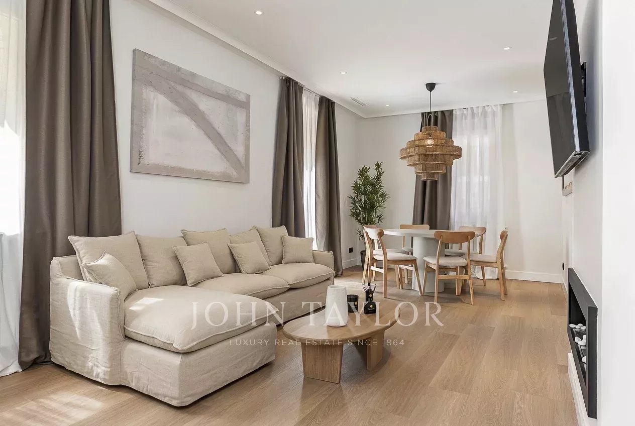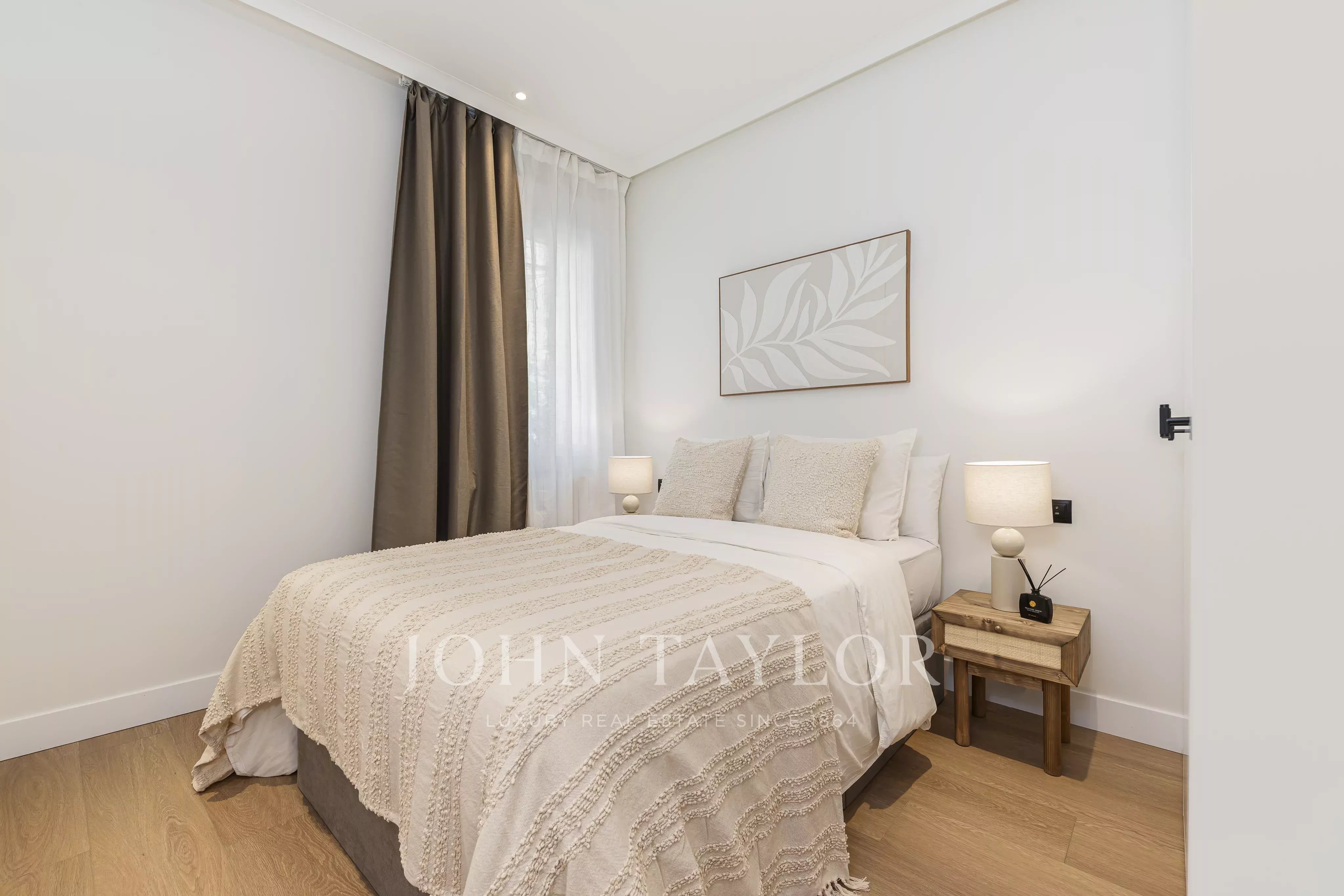 Discover this exquisite 147.05 m² apartment for sale in the prestigious Chamberí Almagro area of Madrid. Designed for ultimate comfort, this modern home offers two spacious bedrooms, a stylish open-plan living and dining area, and is fully furnished with chic, contemporary décor. The double glazing and sliding windows ensure a peaceful ambiance while letting in ample natural light.