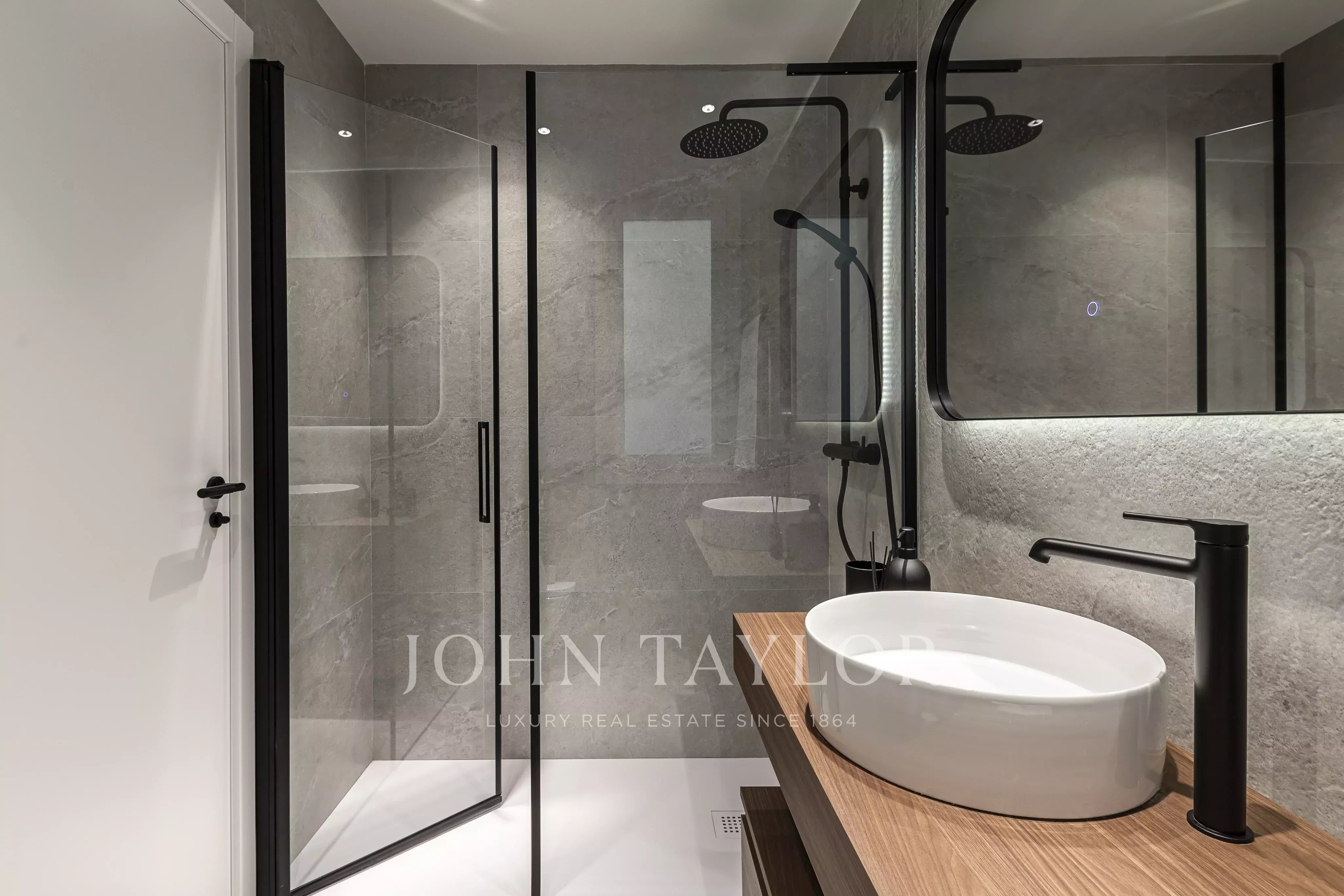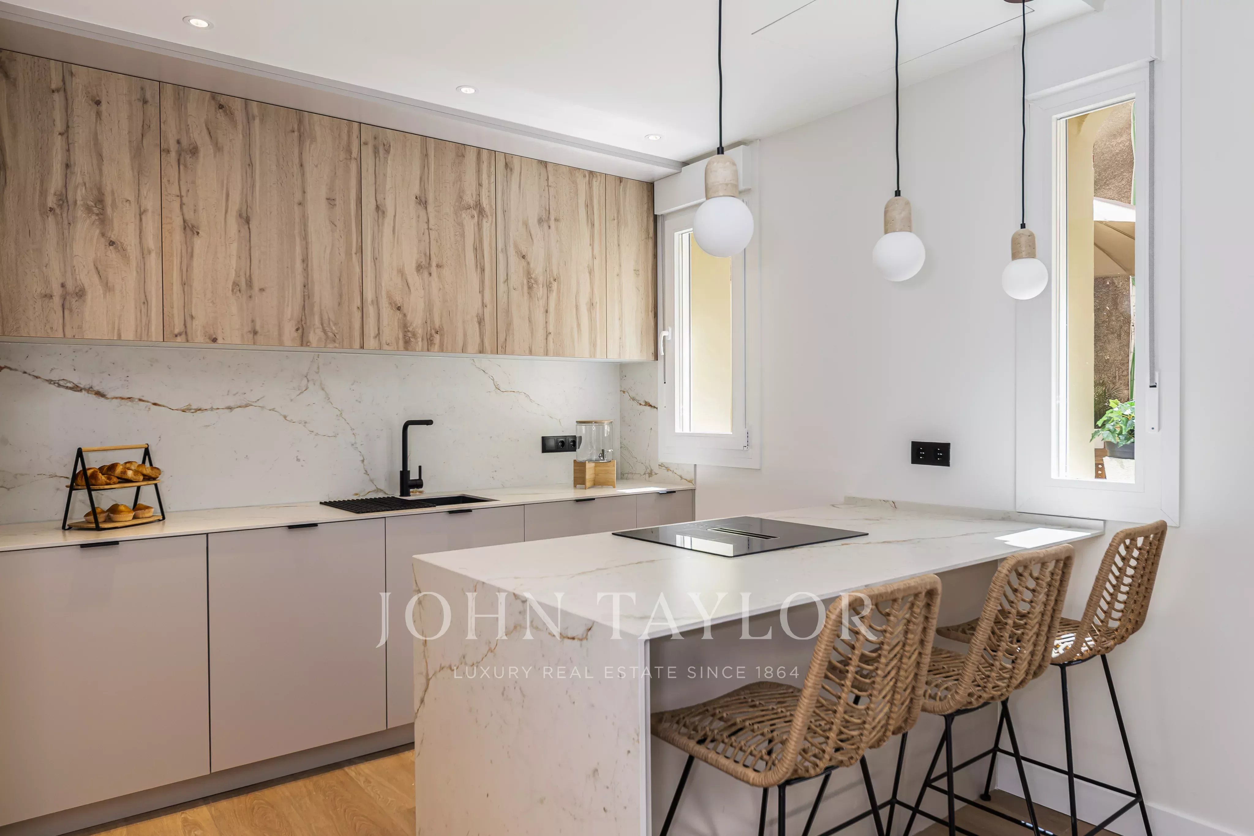 Step outside to enjoy a magnificent terrace, perfect for outdoor lounging and entertaining guests in a serene urban setting. The property also features advanced comforts such as air-conditioning, high-speed internet, and a videophone for security and convenience. The elegant layout is thoughtfully planned, making it ideal for families or couples seeking a luxurious lifestyle in the city.