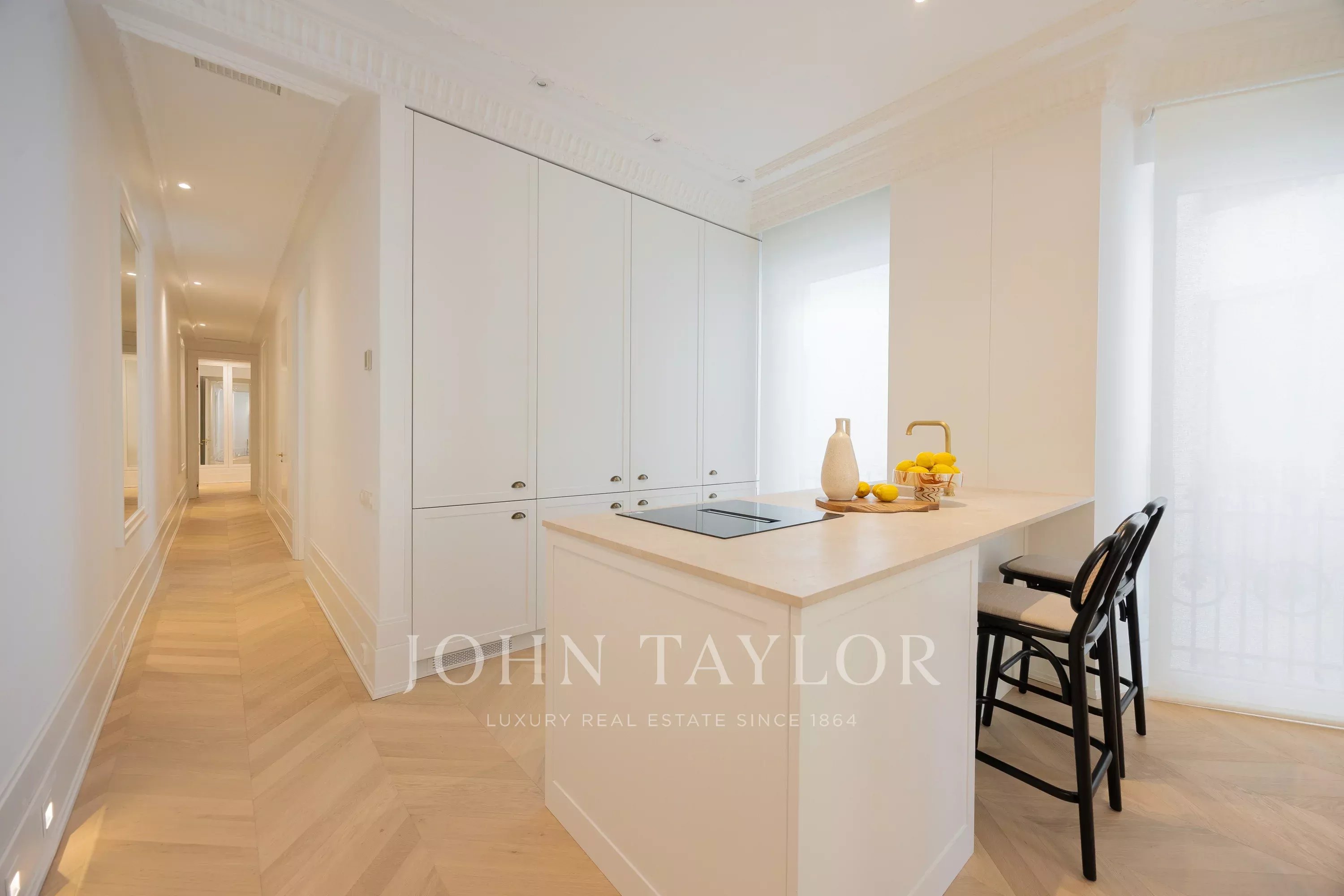 Exclusive 145 m² home located on a fifth-floor exterior in the prestigious Trafalgar neighborhood, Chamberí, in a building with a carefully maintained classical facade.