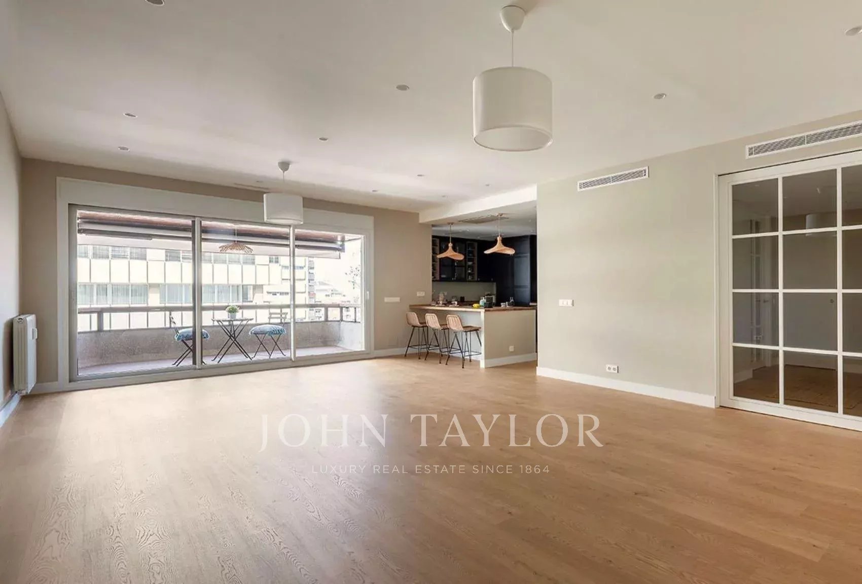 Situated on the eighth floor of a modern and well-maintained building, this exclusive property has an area of 253 m² and stands out for its careful renovation, high quality finishes, and extraordinary brightness.