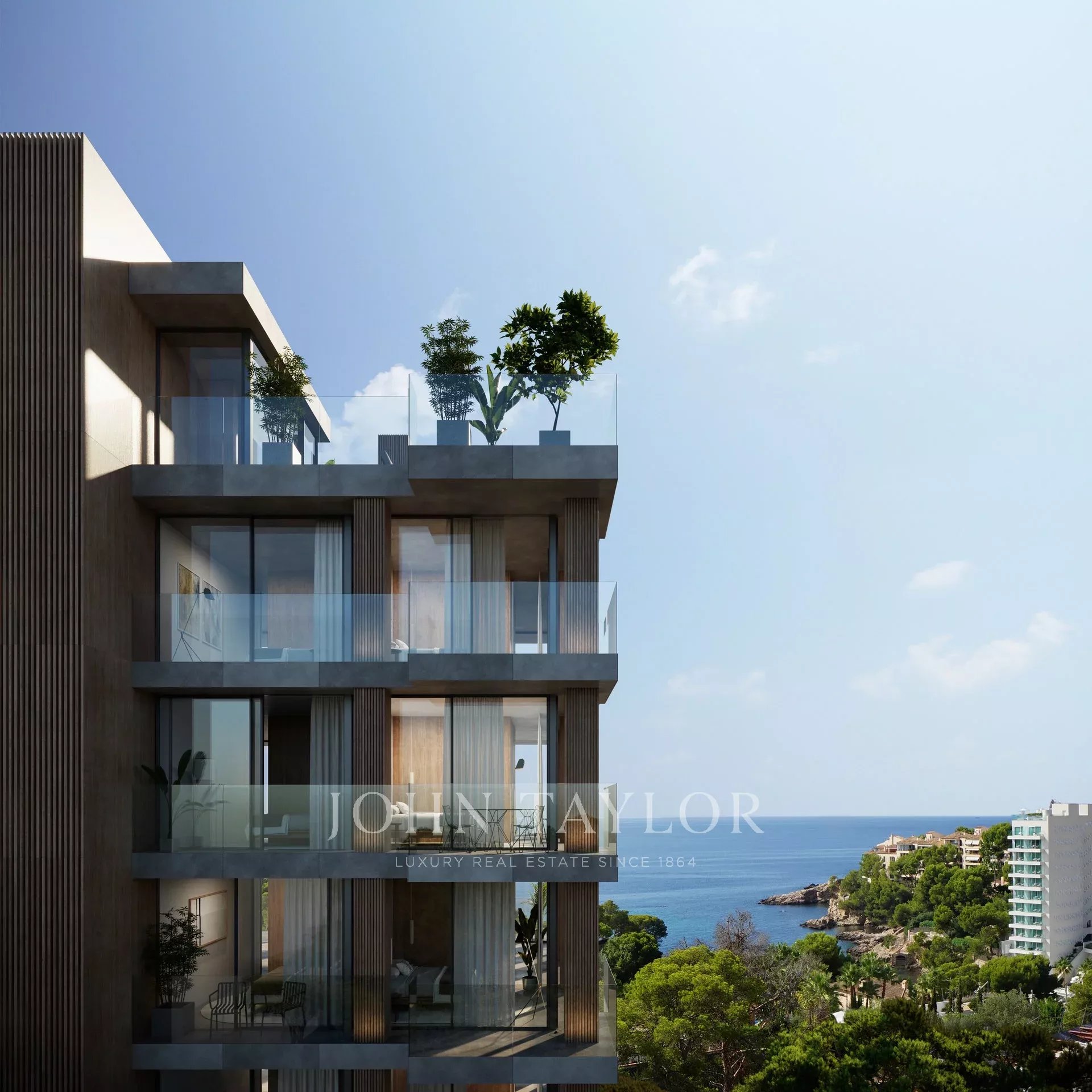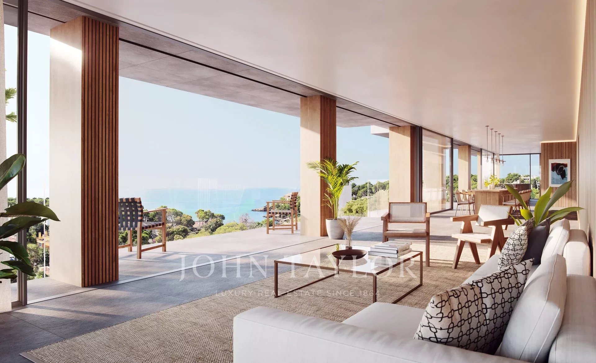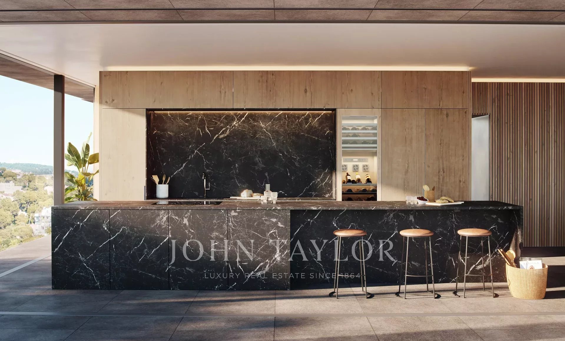 Only a few steps from one of the best kept secrets on Mallorca: a narrow stretch of sandy beach, adventurous cliffs and turquoise waters. Everything about Bendinat Panorama is about perfectly weighted decisions. The lit up elevated location, the community, the wide open sea view, the materials, the floor plans, the service and the reassuring comfort of safety. The professional training pools, the lush surrounding trees and garden and the short drive to international top restaurants and cultural events, and the 5-star perfection of every detail, staircase, lounge corner and readily accessible concierge service. You come, you live, you leave. Everything else is taken care of. Neatly packaged into a concept that’ll set you free for other things than worrying. Because arriving in this second home, is leaving the world