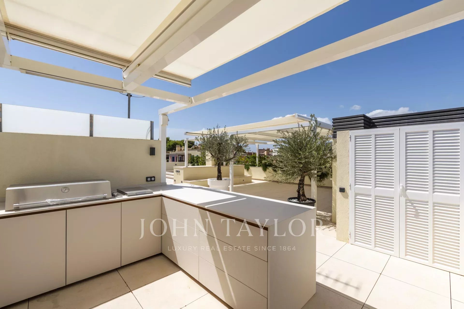We offer a spectacular renovated penthouse with the highest quality finishes, located in an exclusive and well maintained residential complex in the prestigious area of Bendinat. The property is distributed in a spacious living-dining room and an elegant separate kitchen with natural stone countertop. It has 3 bedrooms, including a master bedroom with bathroom en suite. Of the other two bedrooms, one also has an en suite bathroom, while the third has access to a separate bathroom. On this level, a terrace offers pleasant lateral sea views. Undoubtedly, one of the main attractions is its impressive 200 m² solarium, which includes an outdoor kitchen, jacuzzi and a chill-out area, ideal for relaxing and enjoying the surroundings. The community has a lovely swimming pool surrounded by gardens. In addition, the property includes two subway parking spaces and a storage room, completing this exceptional offer.
