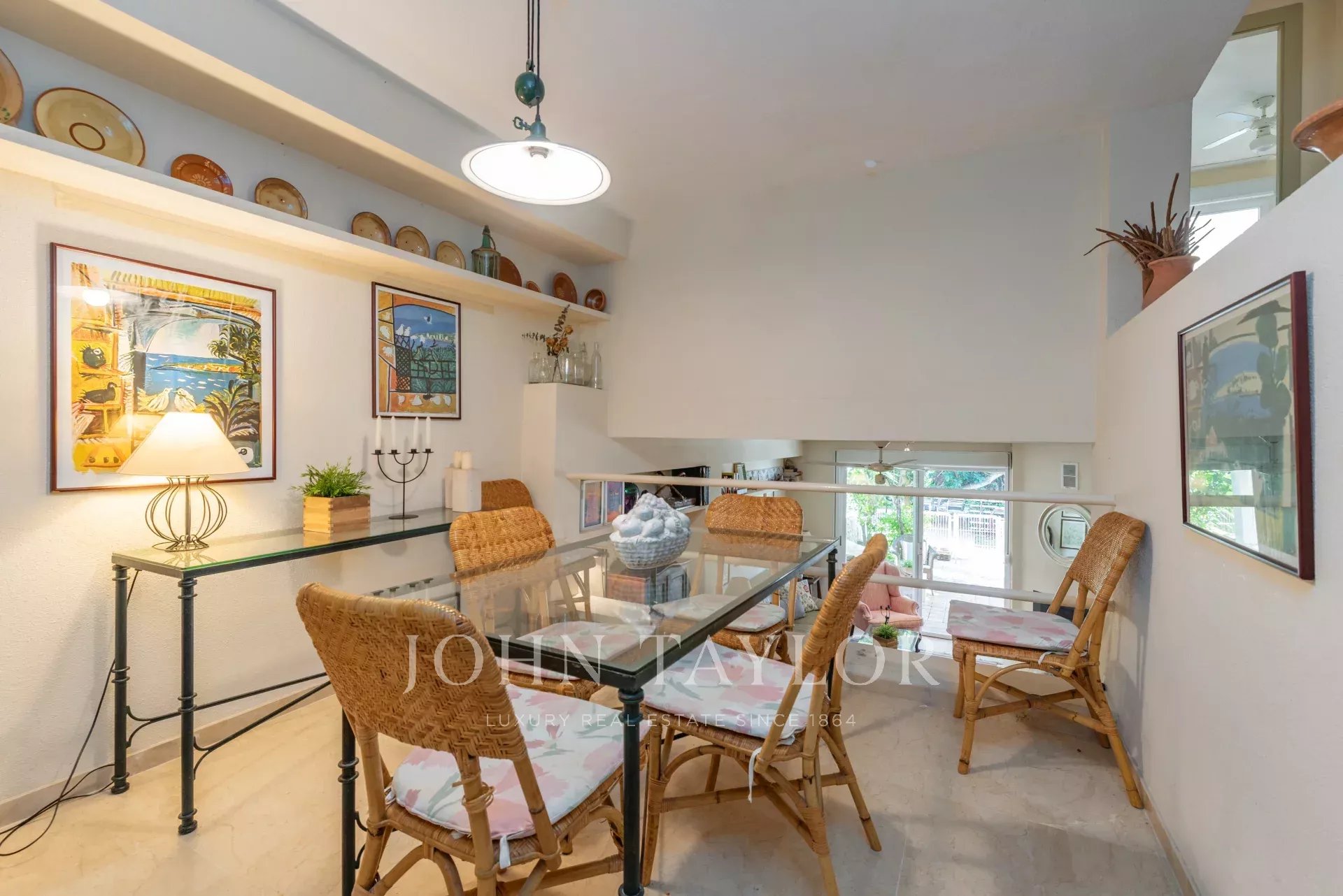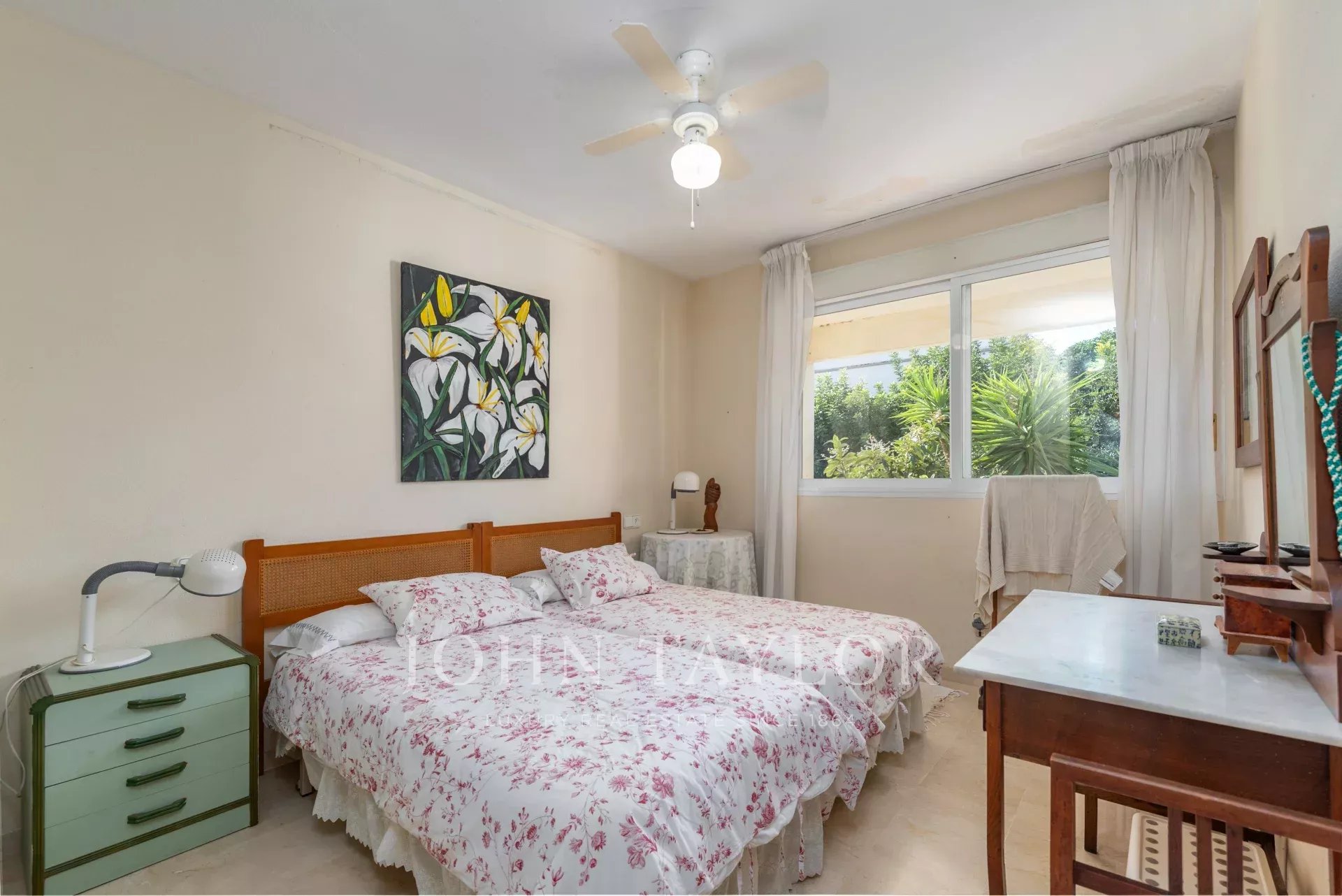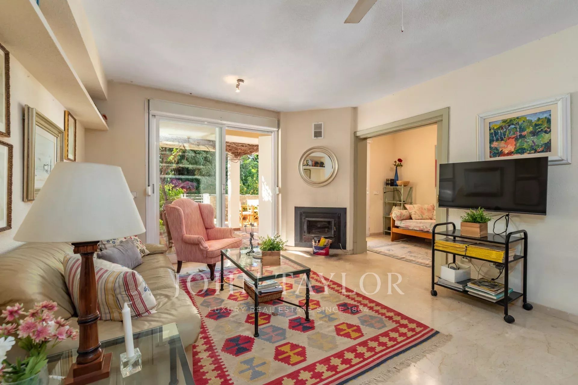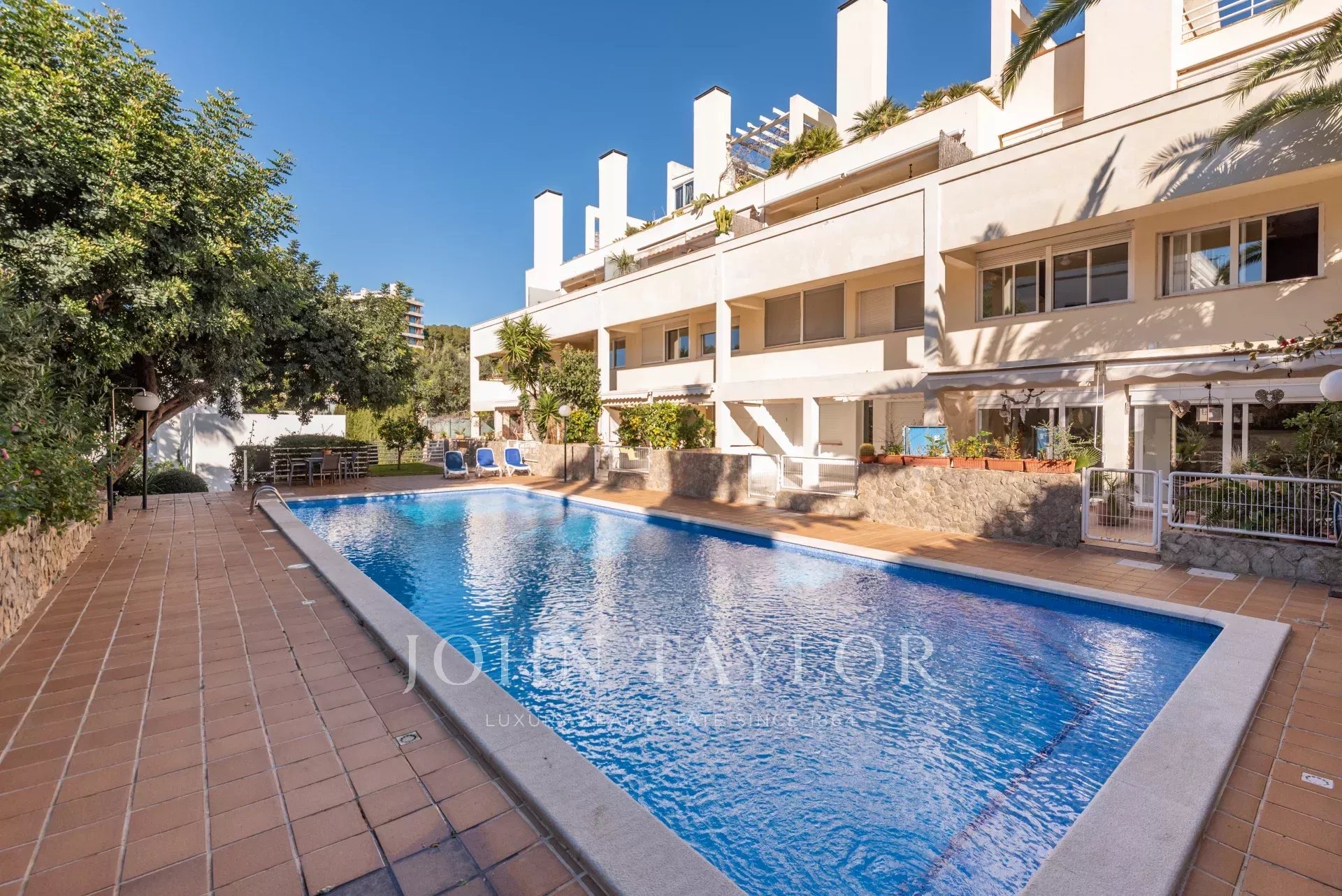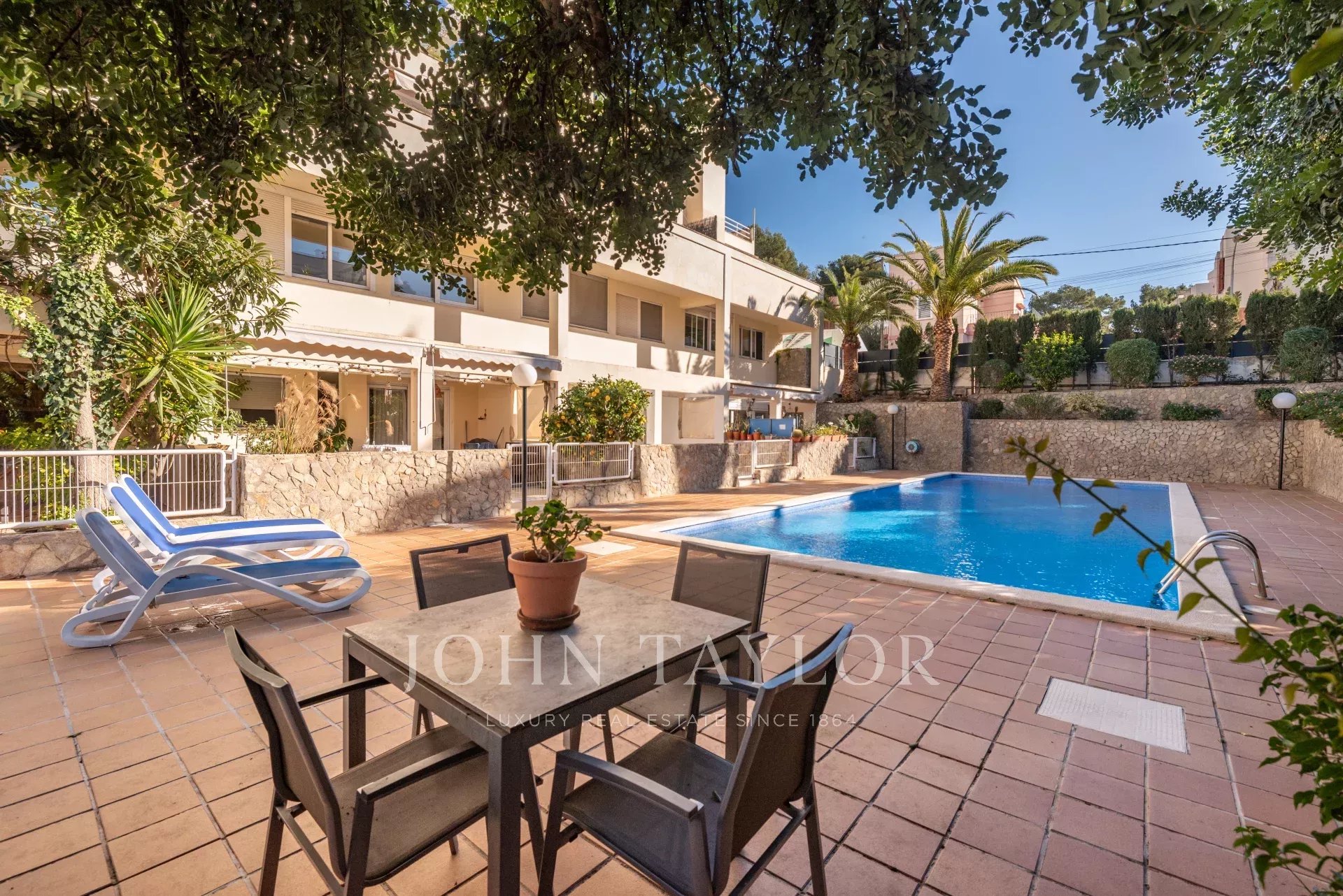 Located in the sought-after area of Old Bendinat, this exclusive duplex apartment represents an exceptional opportunity for those who wish to create their own home. Preserving its original state, this property awaits a renovation that will reveal its full potential. With a living area of 113 m², it is currently distributed in 2 double bedrooms on the upper floor, one with its integrated bathroom and a separate bathroom with shower. On the mezzanine is the entrance to the property, the kitchen with patio/laundry room, the dining room and a bathroom with shower. The first floor offers a cozy living room with fireplace, a room that could be a third small bedroom and the terrace of 35 m², partly covered, with barbecue and access to the communal area with pool and garden. Its privileged location, close to the beach and the sea, makes this property the ideal place for a holiday retreat or as a permanent family residence. It also has a garage space. Do not miss the opportunity to turn this property into the treasure you have always dreamed of.