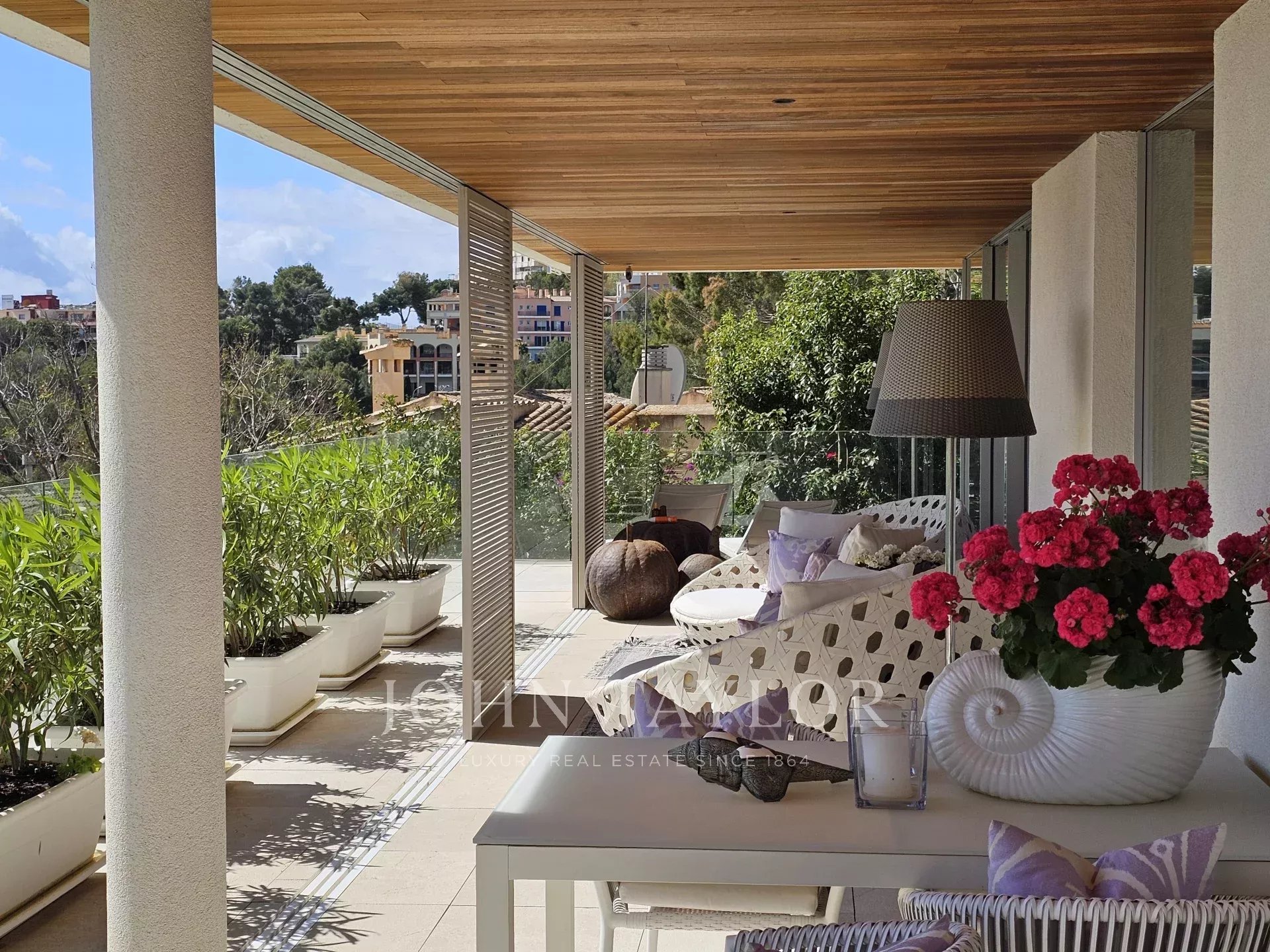This large luxury apartment is part of a small and exclusive community of a few neighbors in the prestigious area of Cas Catalá, highly sought after for its combination of tranquility and proximity to Palma and all kinds of services. You can even walk to a small sandy cove in only 5 minutes. The property occupies an entire floor of the building and is surrounded by terraces. It also has its own private pool. The living area consists of a living and dining room of large dimensions and a fully equipped open kitchen. The communication with the outside spaces is excellent. The living room connects to a covered terrace with beautiful sea views. At the rear there is access to a spacious open terrace next to the pool, which invites you to sunbathe and swim at any time of the day.