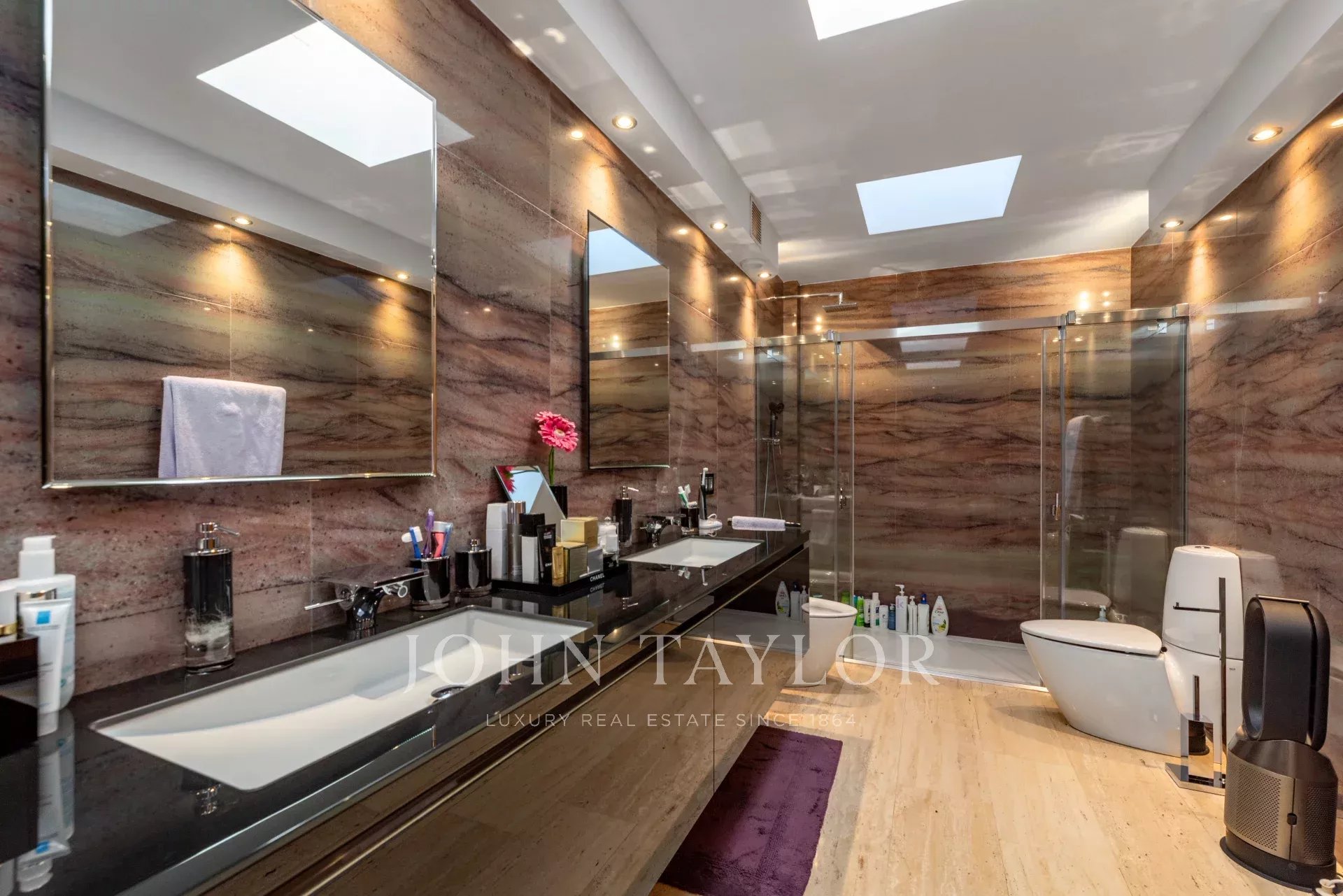 The south-facing terrace allows you to enjoy plenty of natural light and breathtaking views all year round. Luxury and exclusivity will be part of your daily life, with only two units per floor. The property has marble floors, fireplace, heating by radiators and central air conditioning, as well as fitted closets and large windows.