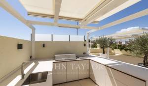 We offer a spectacular renovated penthouse with the highest quality finishes, located in an exclusive and well maintained residential complex in the prestigious area of Bendinat. The property is distributed in a spacious living-dining room and an elegant separate kitchen with natural stone countertop. It has 3 bedrooms, including a master bedroom with bathroom en suite. Of the other two bedrooms, one also has an en suite bathroom, while the third has access to a separate bathroom. On this level, a terrace offers pleasant lateral sea views. Undoubtedly, one of the main attractions is its impressive 200 m² solarium, which includes an outdoor kitchen, jacuzzi and a chill-out area, ideal for relaxing and enjoying the surroundings. The community has a lovely swimming pool surrounded by gardens. In addition, the property includes two subway parking spaces and a storage room, completing this exceptional offer.
