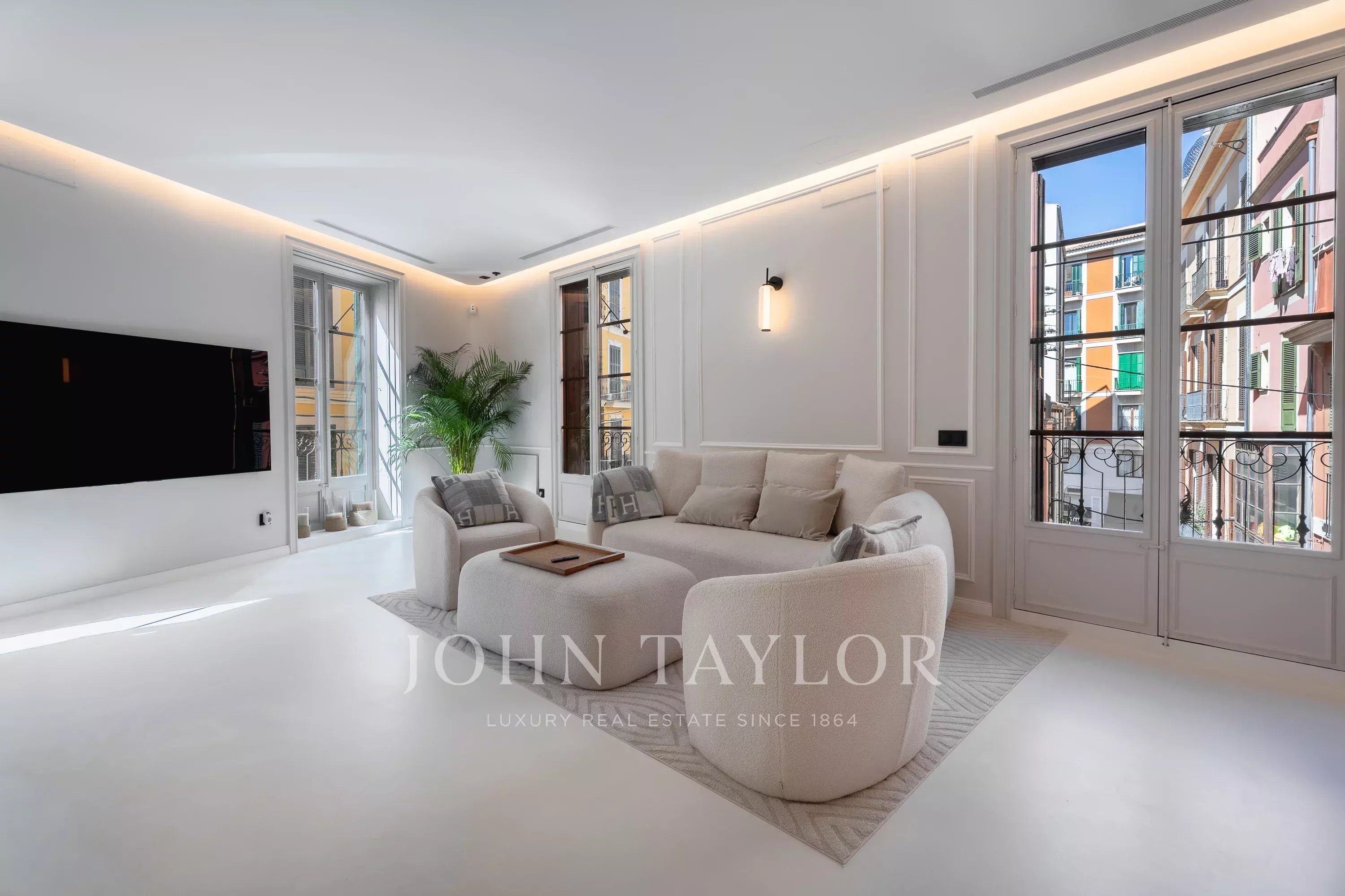 This elegant apartment is located in a charming apartment building in Palma’s historic Old Town, originally constructed in 1930. Situated on the second floor, the bright designer residence combines timeless architecture with modern comfort and style.