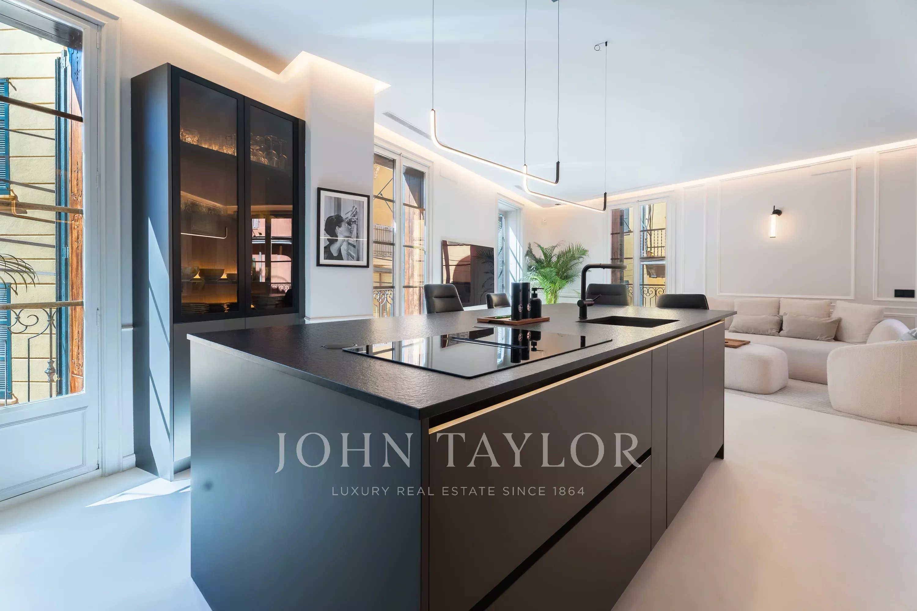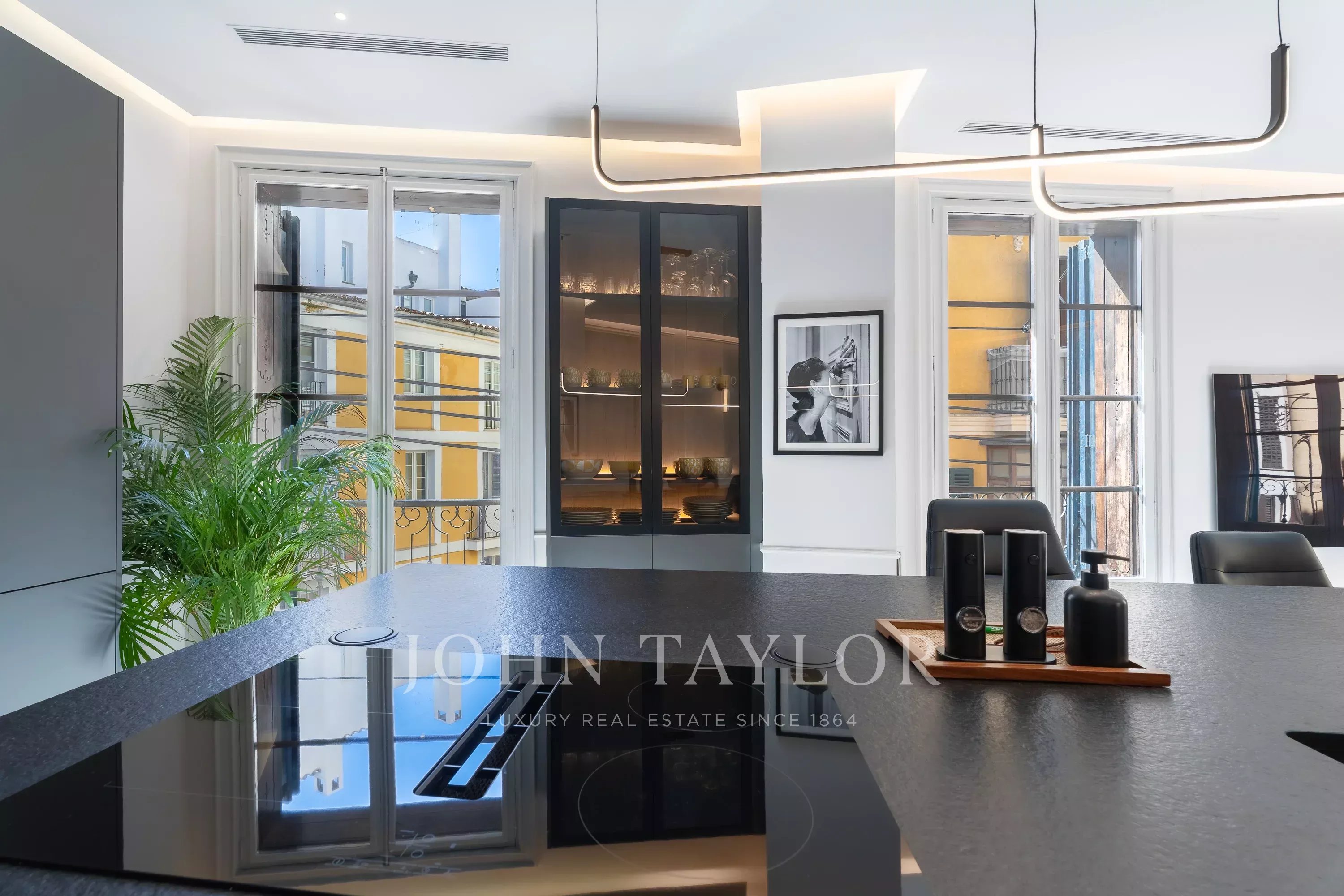 With an impressive living area of approximately 190 sqm, the apartment has been completely and tastefully renovated to a high standard, preserving its classic character while introducing contemporary finishes. The property features eight French balconies, allowing natural light to flood the interior and offering beautiful views over the small, authentic streets of the Old Town.