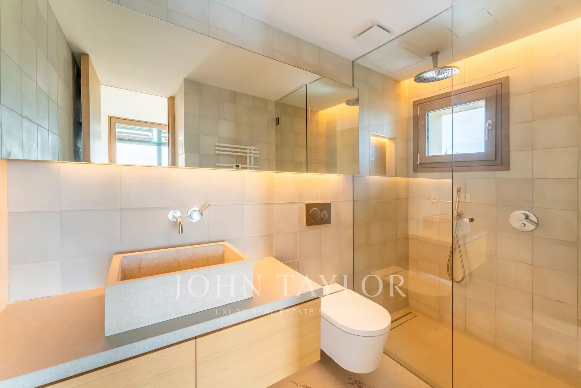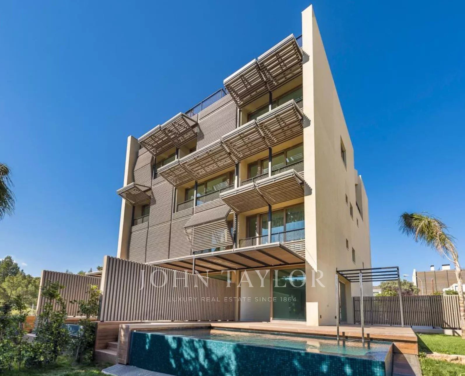 This new built duplex penthouse in a building of only 6 units, offers contemporary mediterranean design and the highest qualities to ensure a comfortable living envirnoment. With two bedrooms, two bathrooms, guest bathroom, laundry room, a large open plan fully fitted kitchen, dining and living area which lead out to the gallery. The rooftop swimming pool (9m2) and chill out area is a particular highlight and perfect for entertaining or sheer relaxation. The property also includes a garaje parking space, a storage room and is classified as an "A" energy rated building.