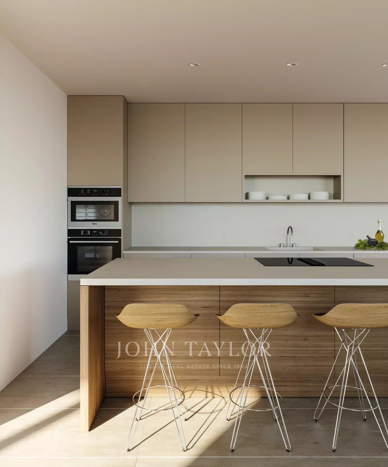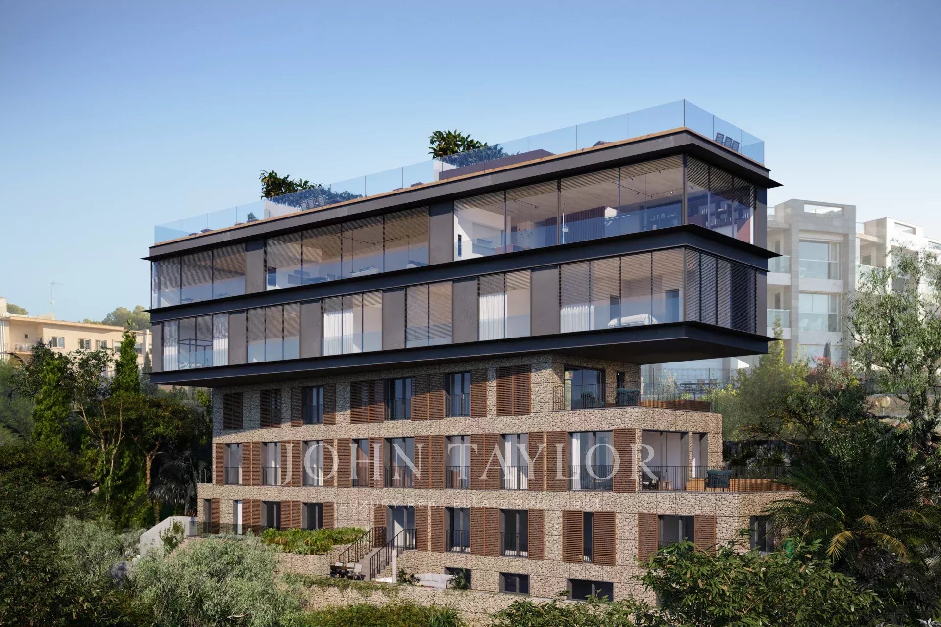 The Mediterranean view you’ve been looking for features the design innovations you need. Mirador’s apartments pair top-of-the-line fittings and finishes with a cool industrial influence, in the large open-plan living areas. This apartment surprises upon entry with its 80m2 open plan layout, and fully fitted Moltani & Dada kitchen with Siemens iQ500 electrical appliances which flows over to the dining and lounge area with floor-to-ceiling windows offering access to the private terrace, garden, and pool. It includes 3 bedrooms, 2 bathrooms, a guest bathroom, and a laundry room. The finest materials such as natural oak flooring, marble, and Binissalem stone together with the impeccable installations which include underfloor heating, central A/C, a home automation system, automatic blinds, and a parking space assure maximum of comfort and luxury combined.
