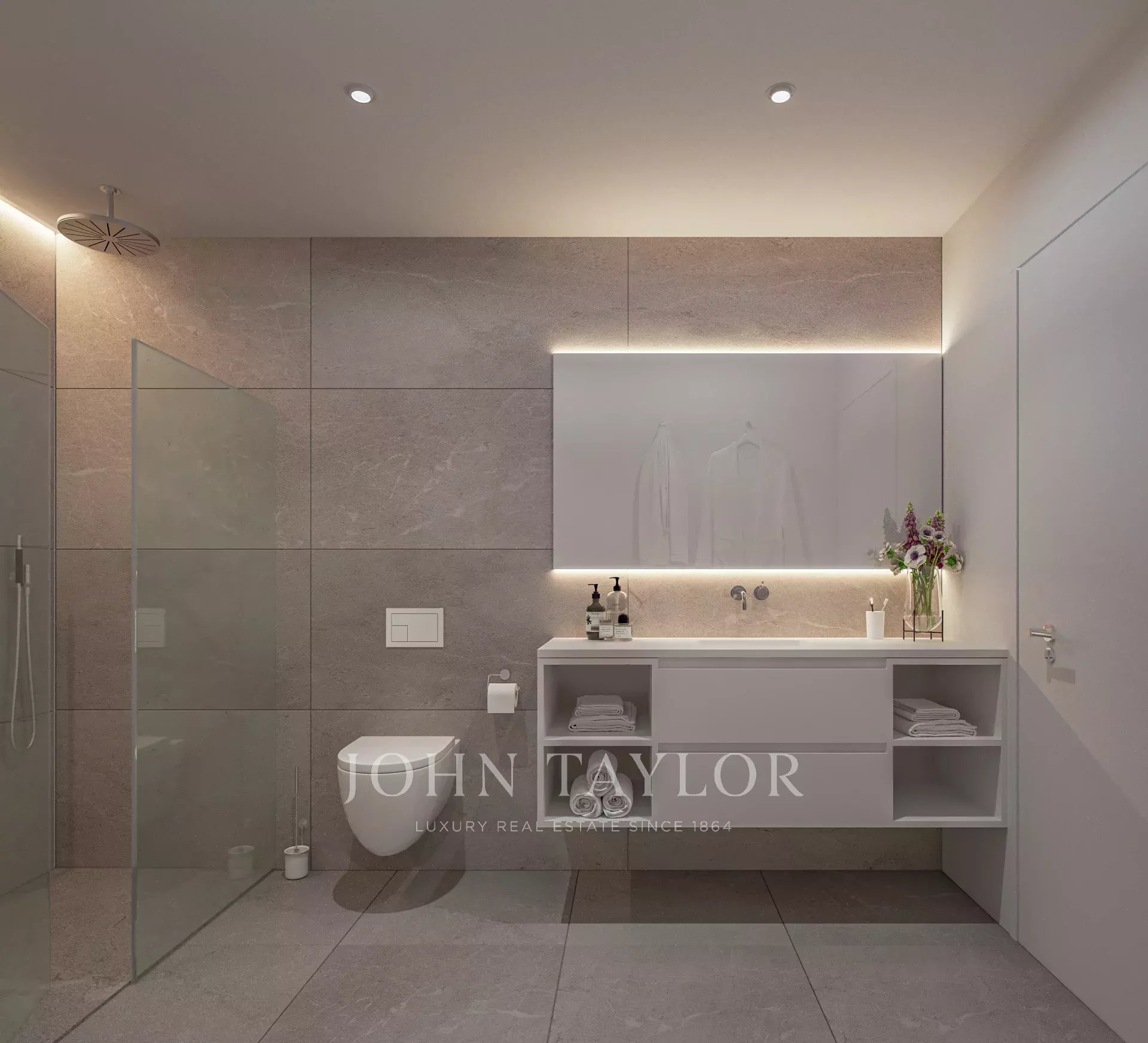 The interior of the flat building was inspired by the Mallorcan way of life. Floor-to-ceiling window fronts, ceiling-high doors and cupboard elements, and full-surface stone floors allow rooms to flow into one another and lend each apartment a special elegance. Coupled with the modern, straightforward, and functional design and the light, Mediterranean colour palette, the interiors develop their very own, timelessly modern character.