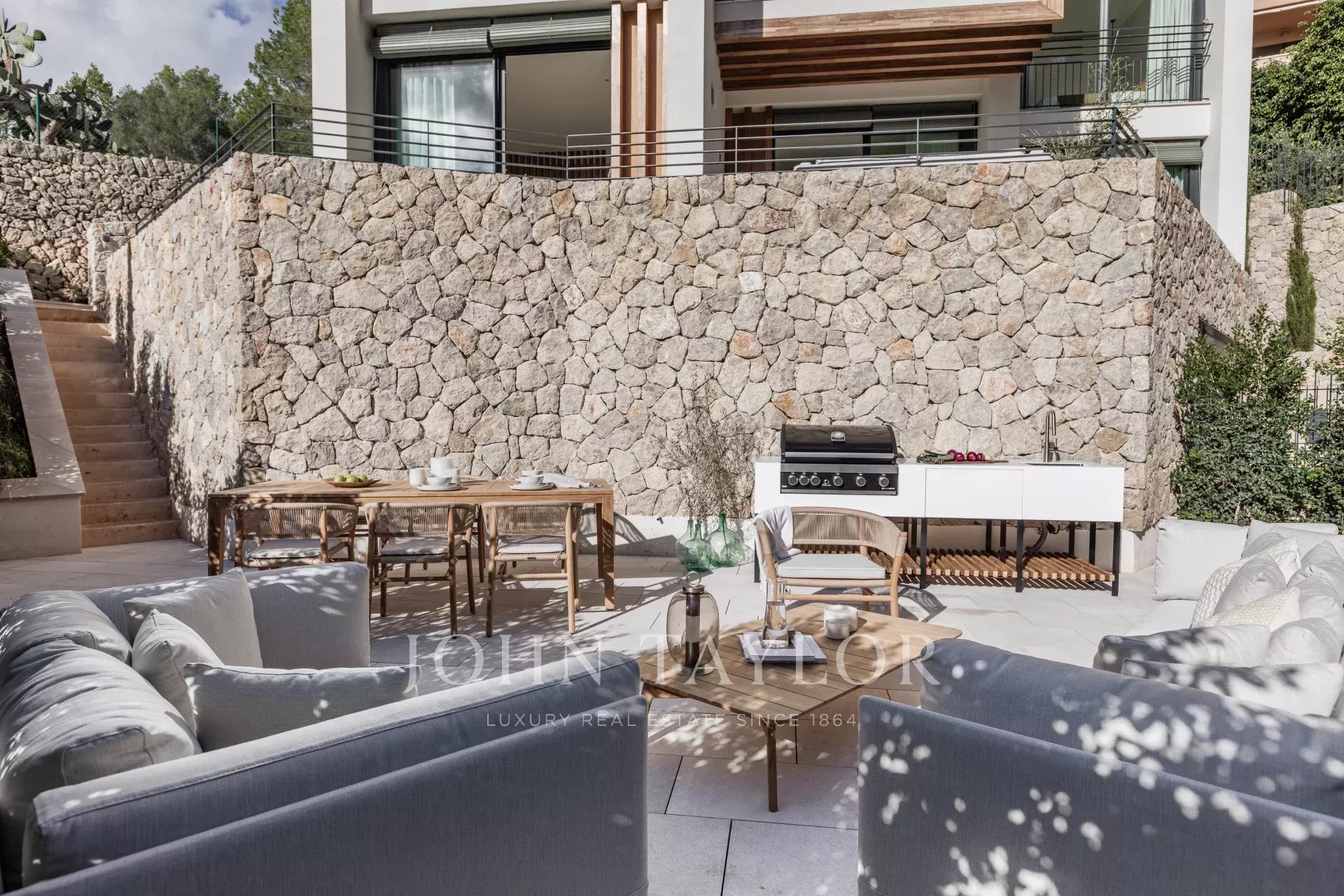 Fully furnished with bespoke Italian pieces from Barzaghi Salotti and Ethimo, each space reflects exceptional craftsmanship. All carpentry - including kitchens, wardrobes a and bathrooms - has been handcrafted by Mallorcan artisans, ensuring precision and quality.